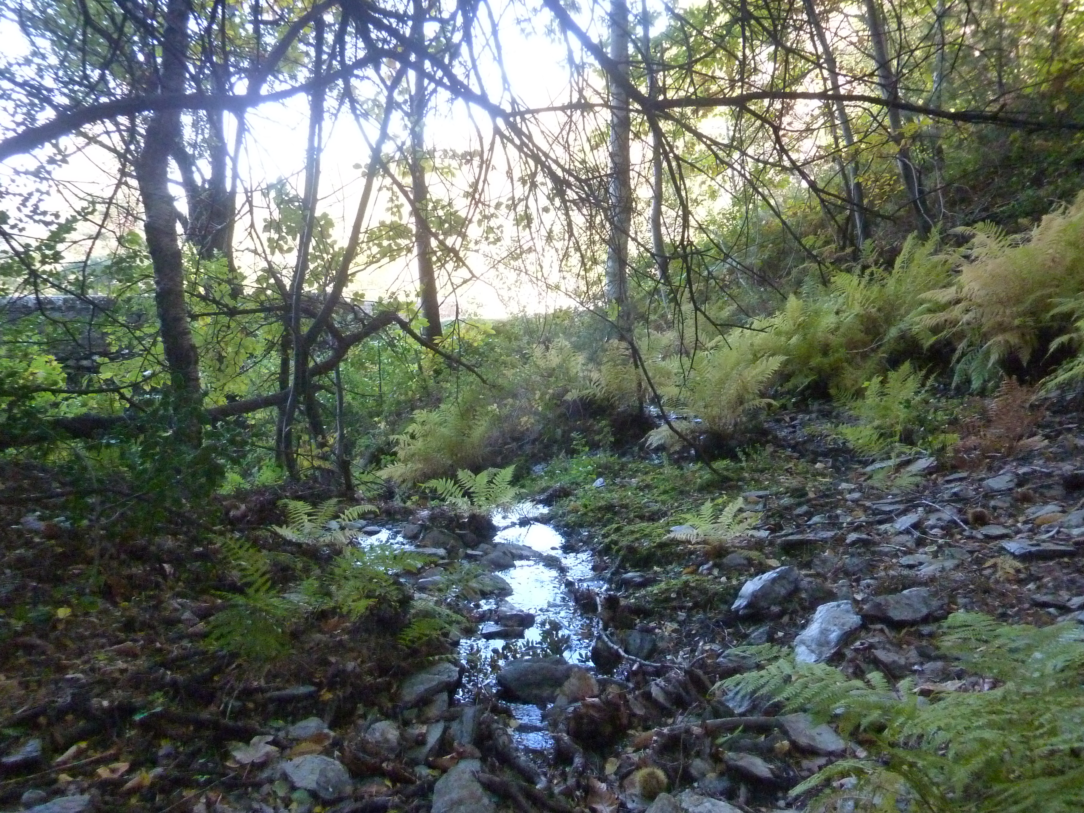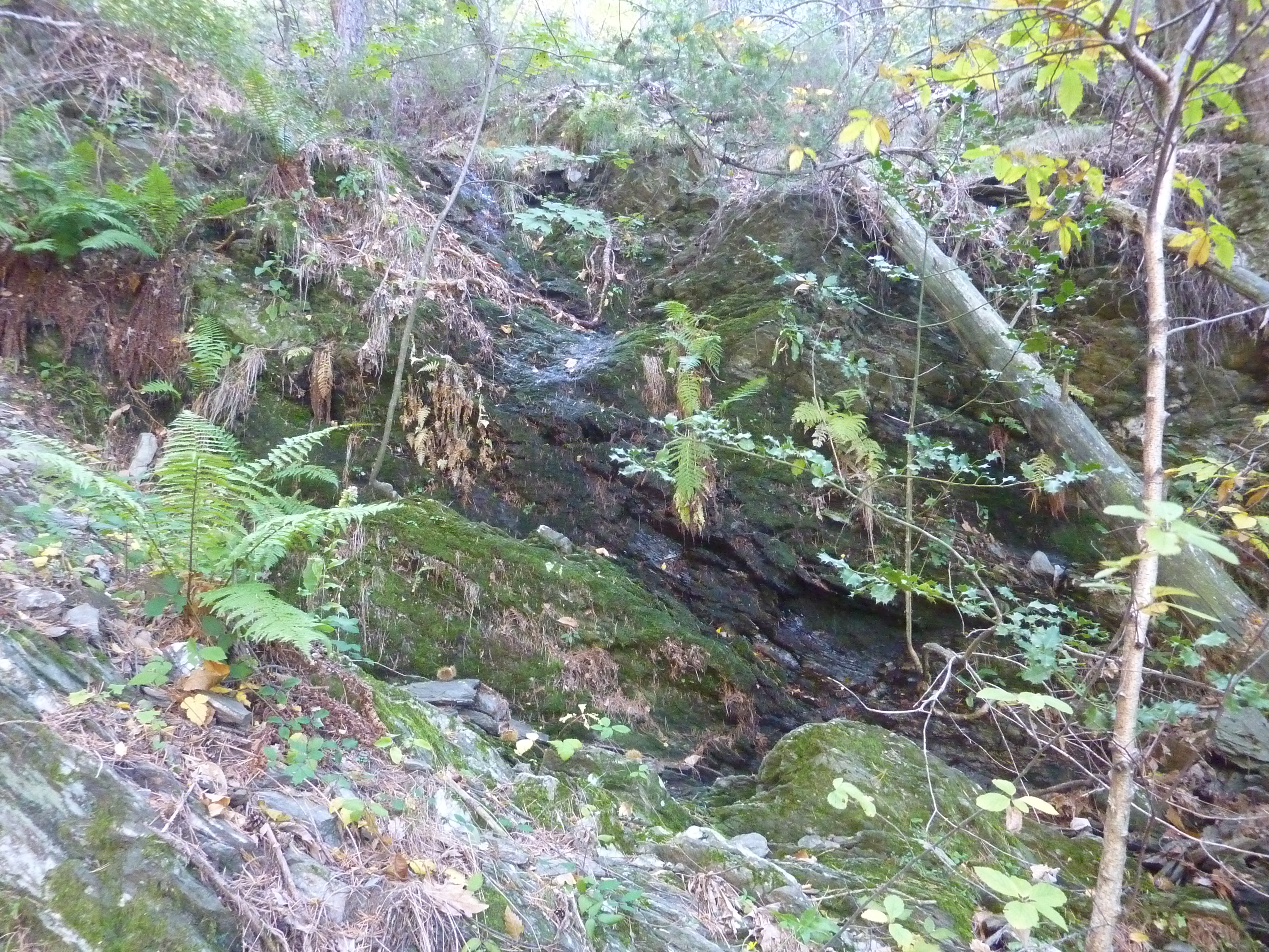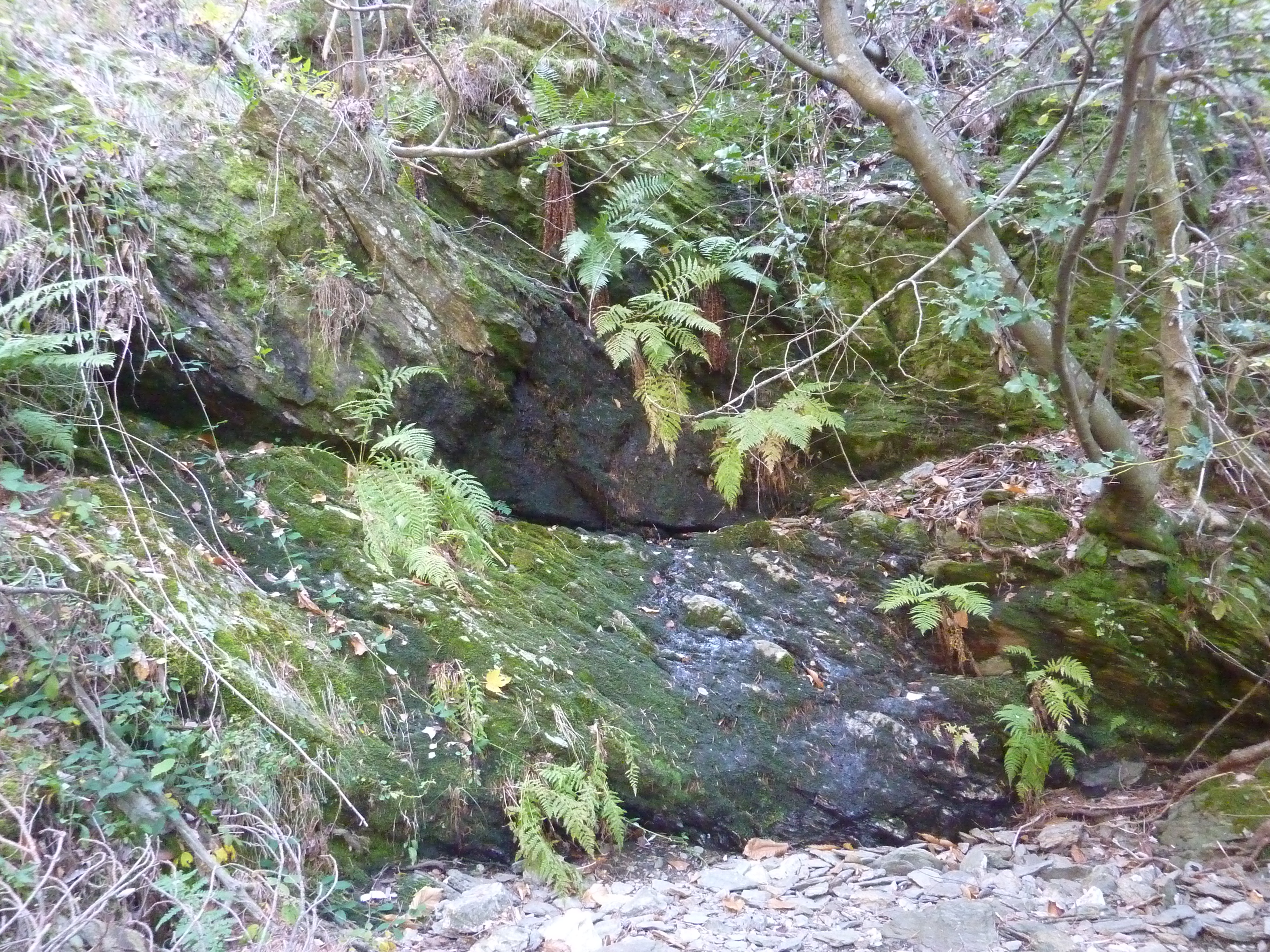 Au niveau de ce virage marqué par la présence de ce parapet en pierre (700 mètres après le précédent croisement), quitter la D901 pour entrer d'une dizaine de mètres dans le bois sur la droite afin d'accéder aux sources direction Sources de la Cèze