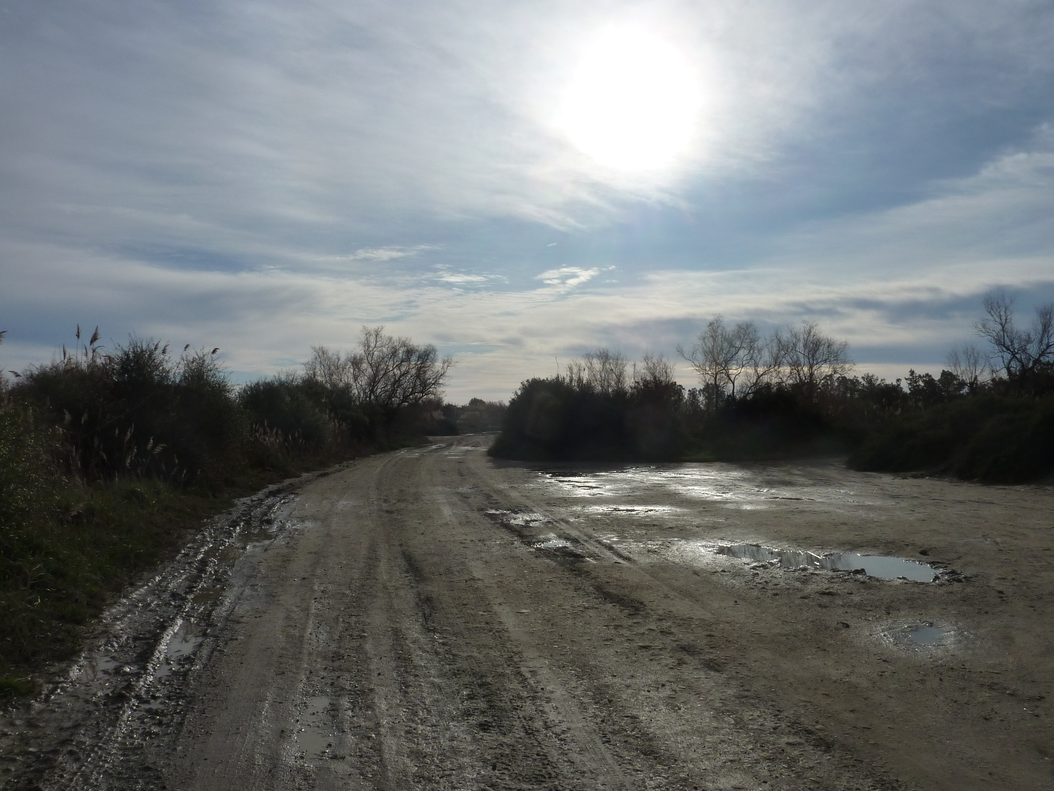 A ce croisement avec la large piste de l'aller, suivre cette dernière sur la gauche direction Aigues-Mortes, balisé en jaune dorénavant