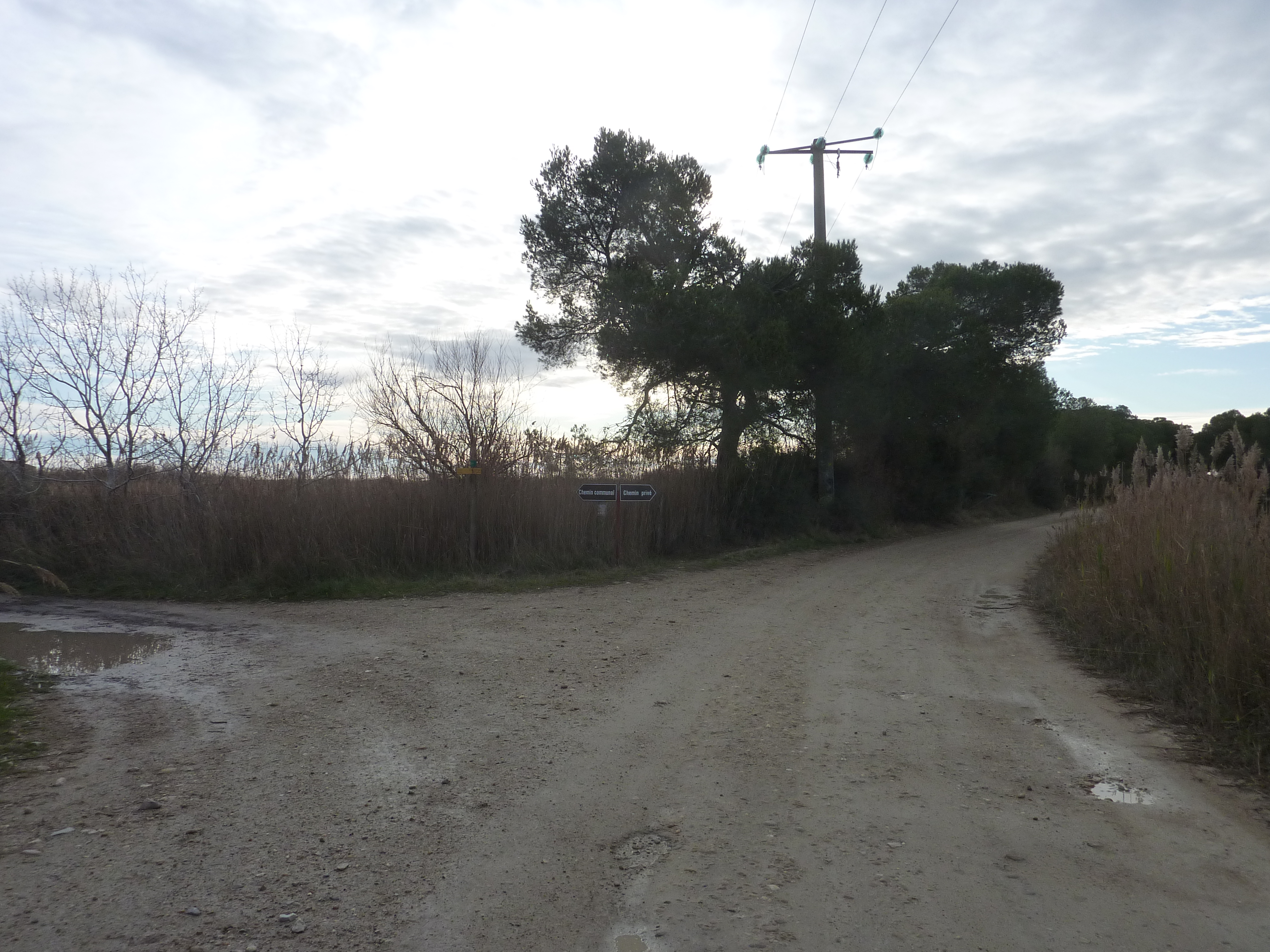 A ce croisement (1800 mètres après le lieu-dit "Le Bosquet"), suivre le chemin partant sur la droite direction le Fort de Peccais, balisé en jaune