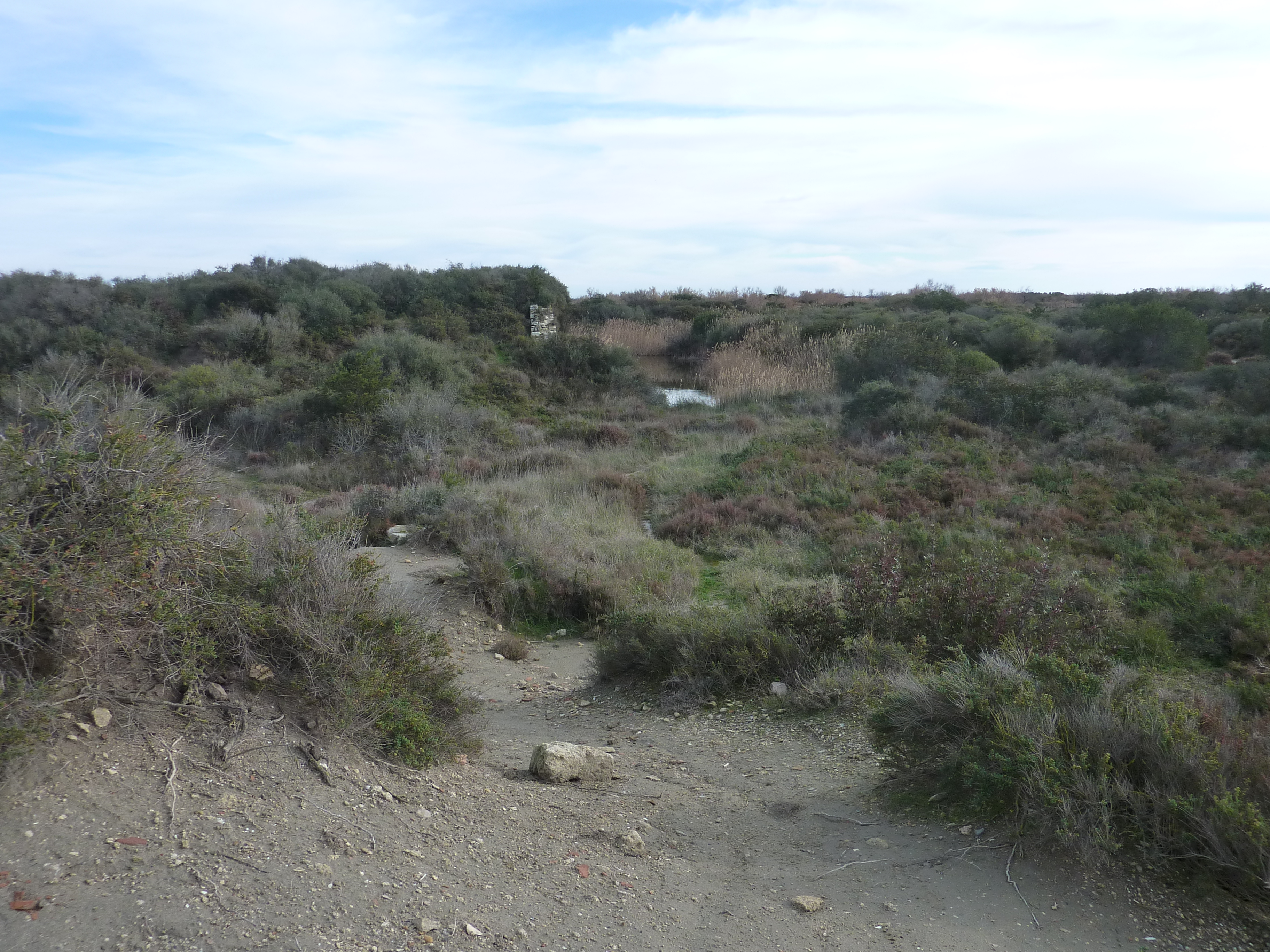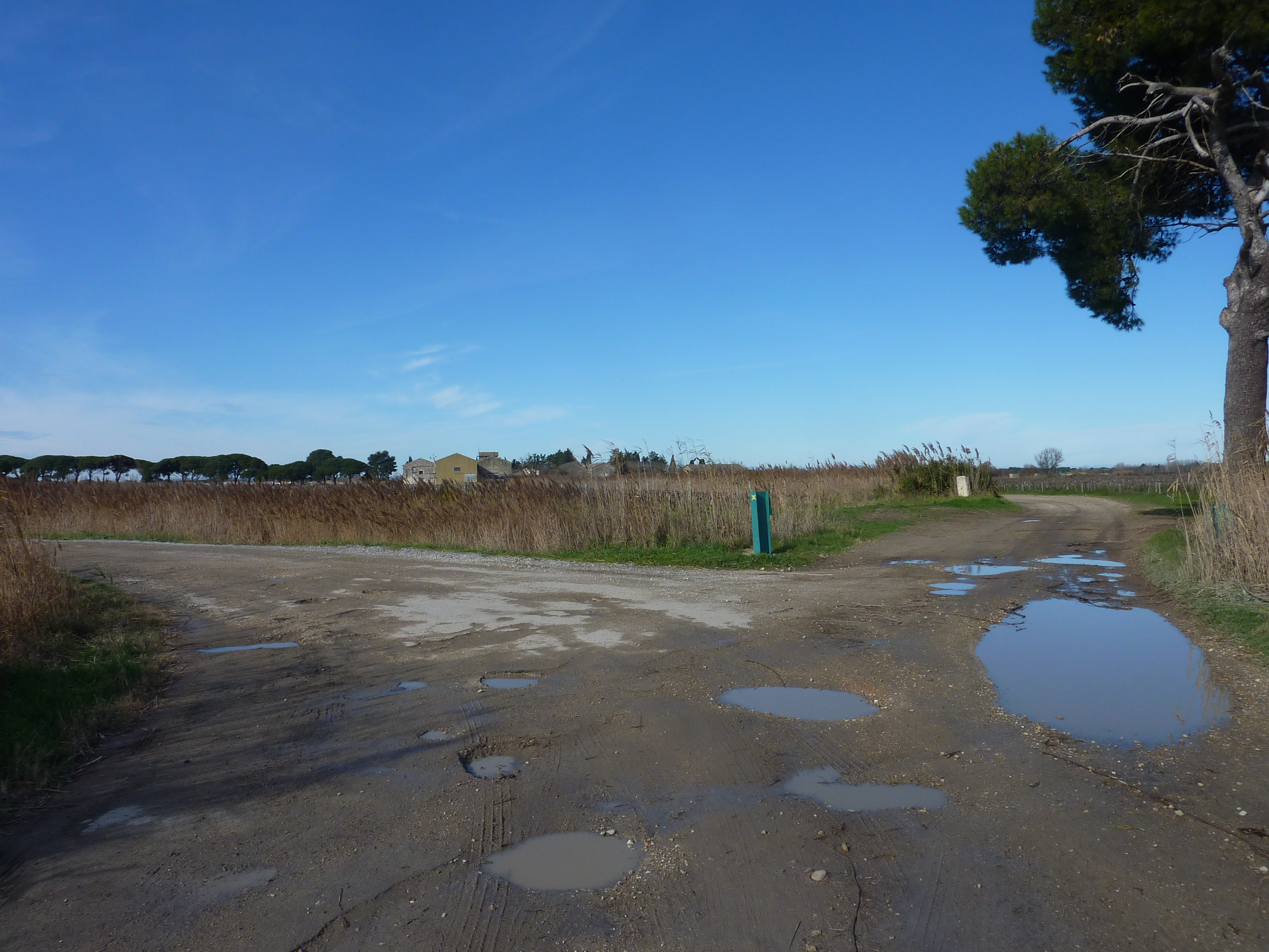 Calvière (2 m) : suivre le chemin partant légèrement sur la droite direction Aigues-Mortes, balisé en jaune