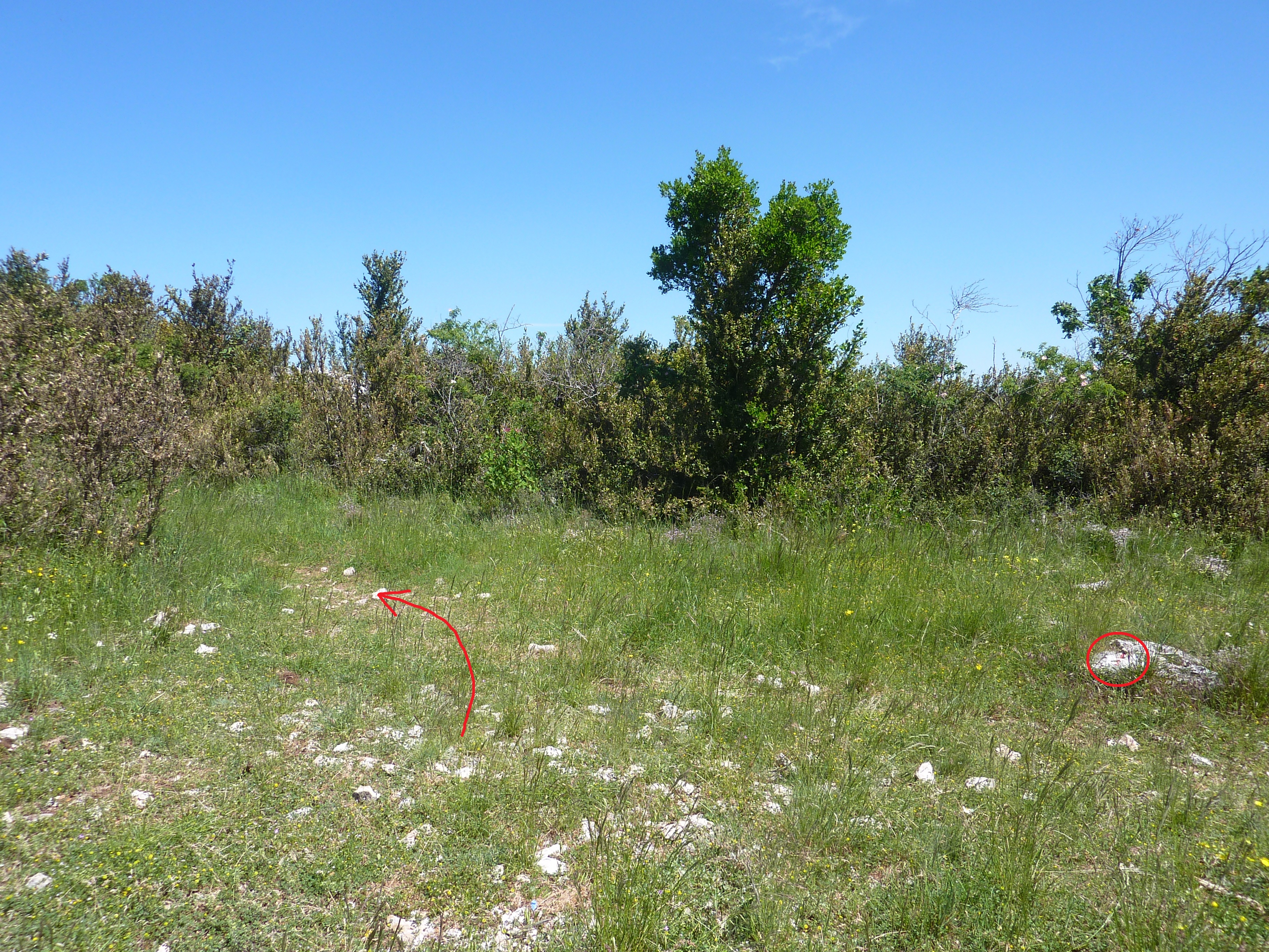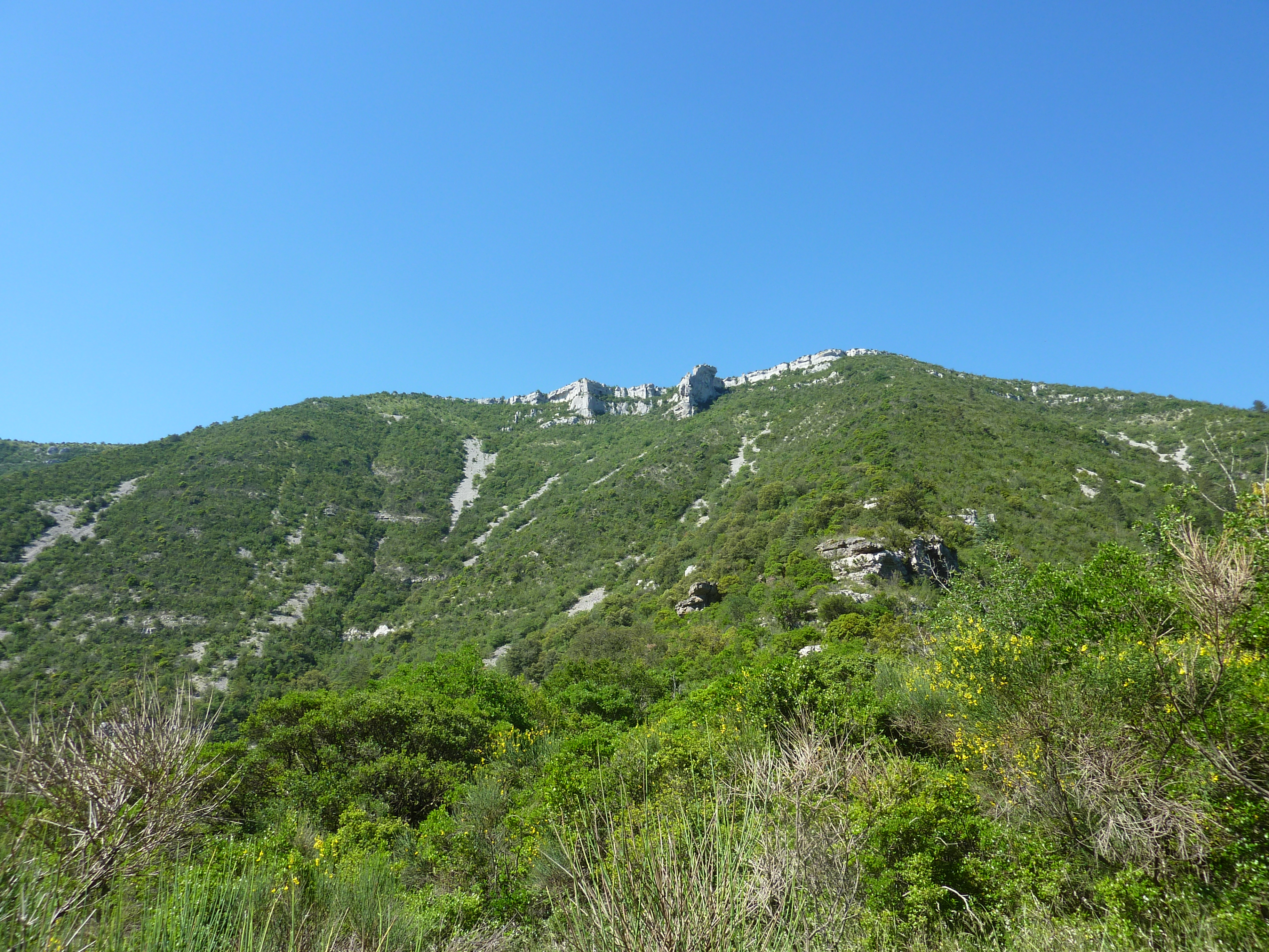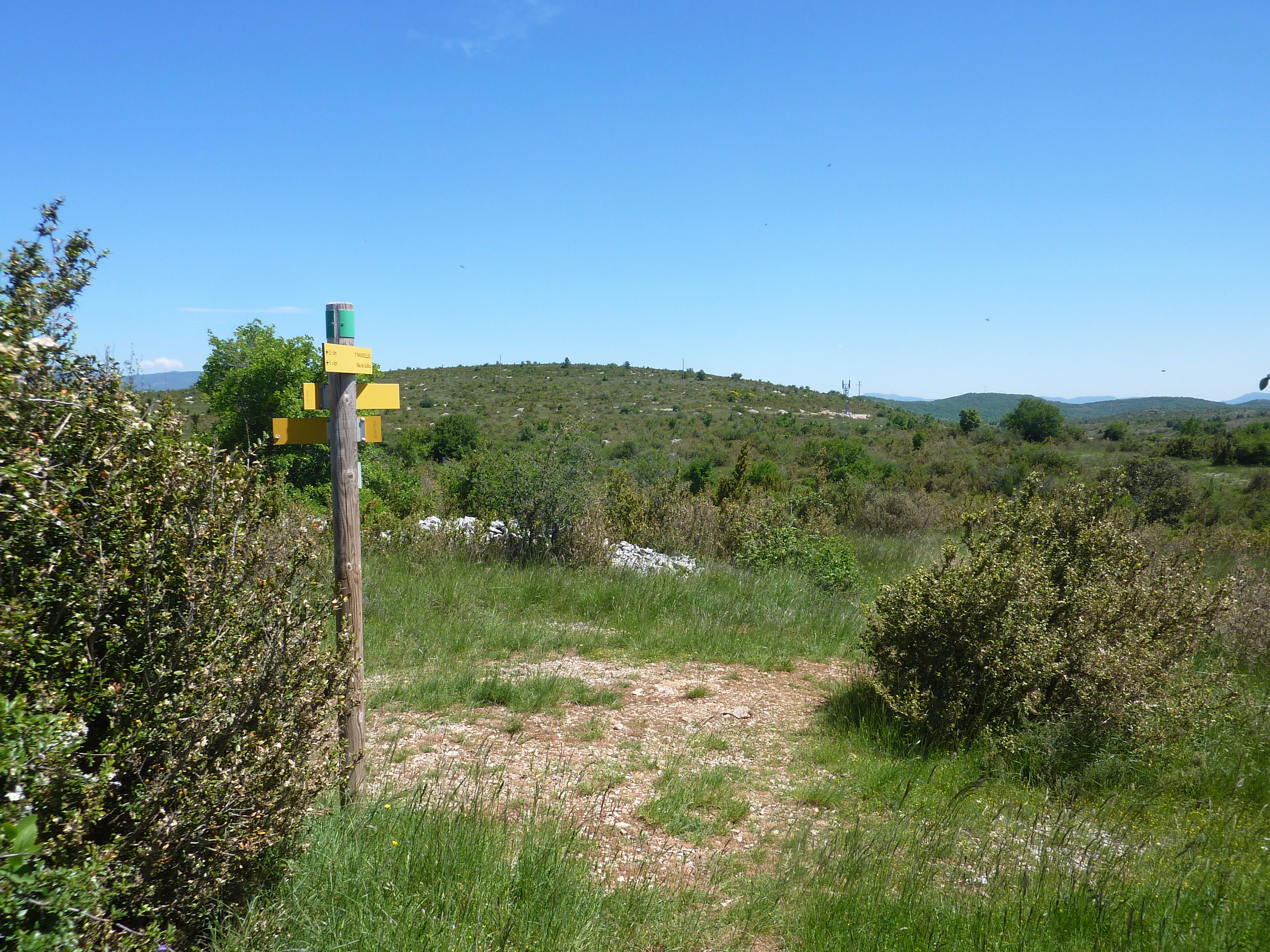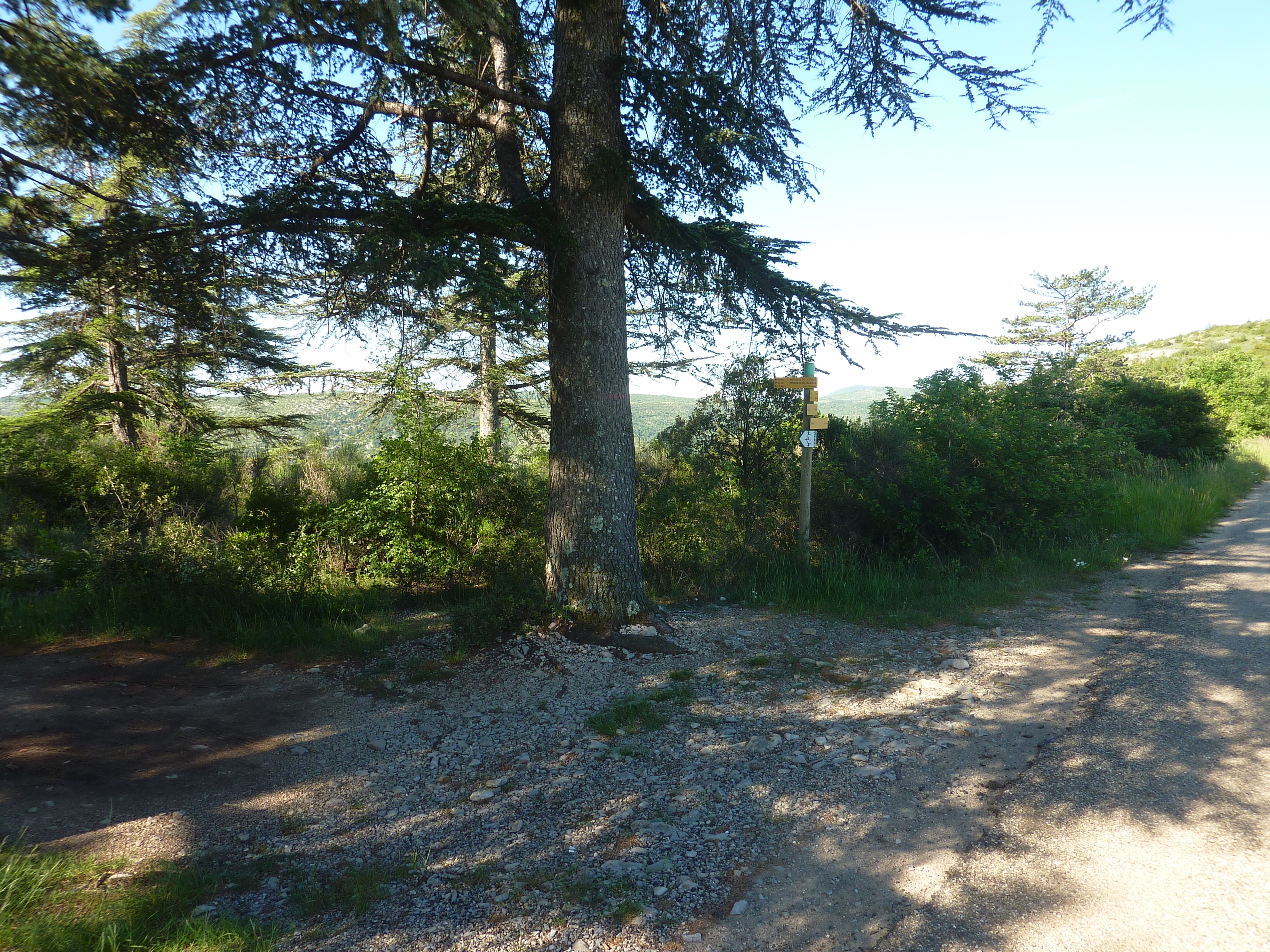 Le Pin Noir (716 m) : suivre le chemin montant sur la gauche direction Bois de Calo Rouge, balisé en jaune