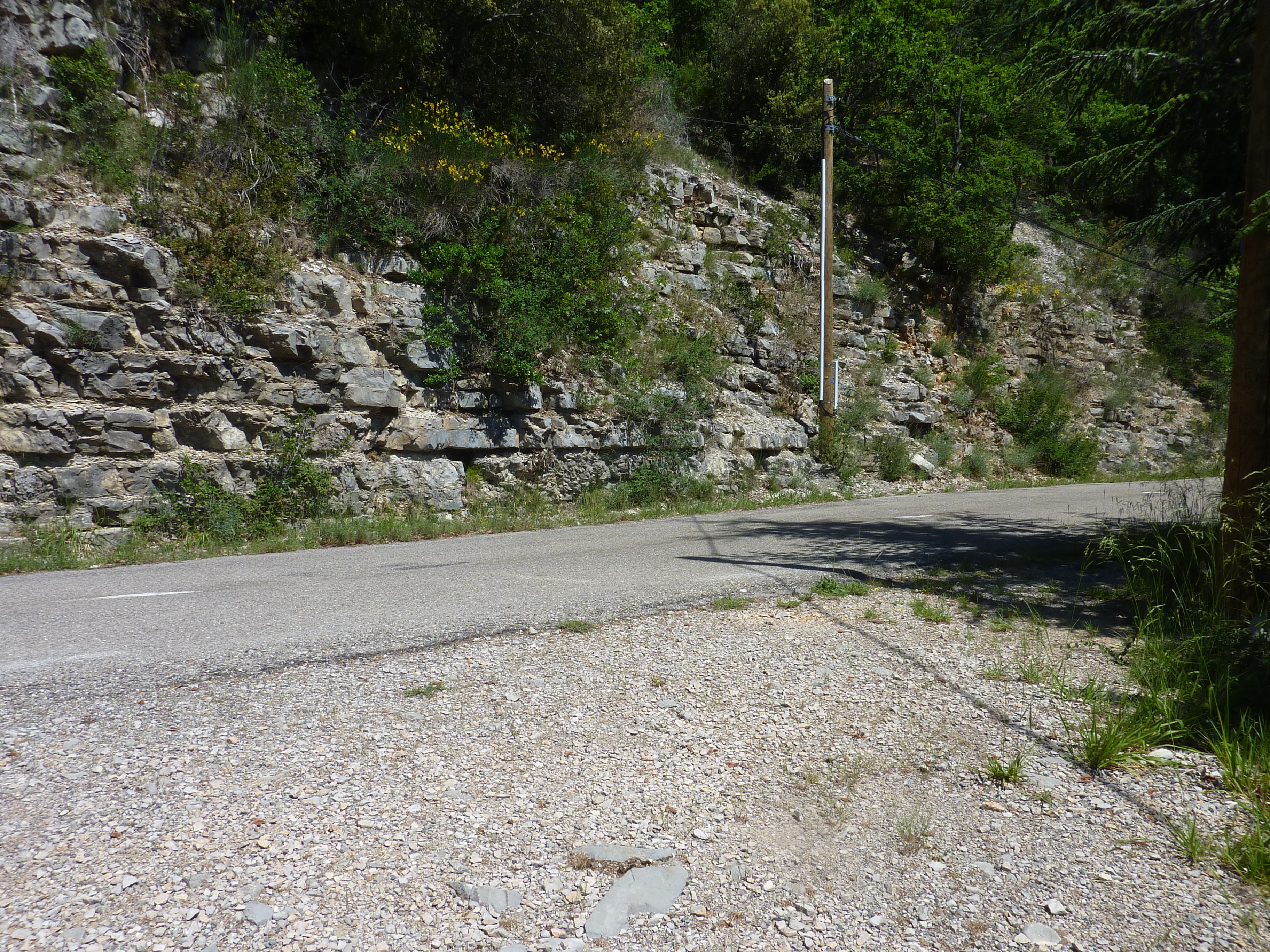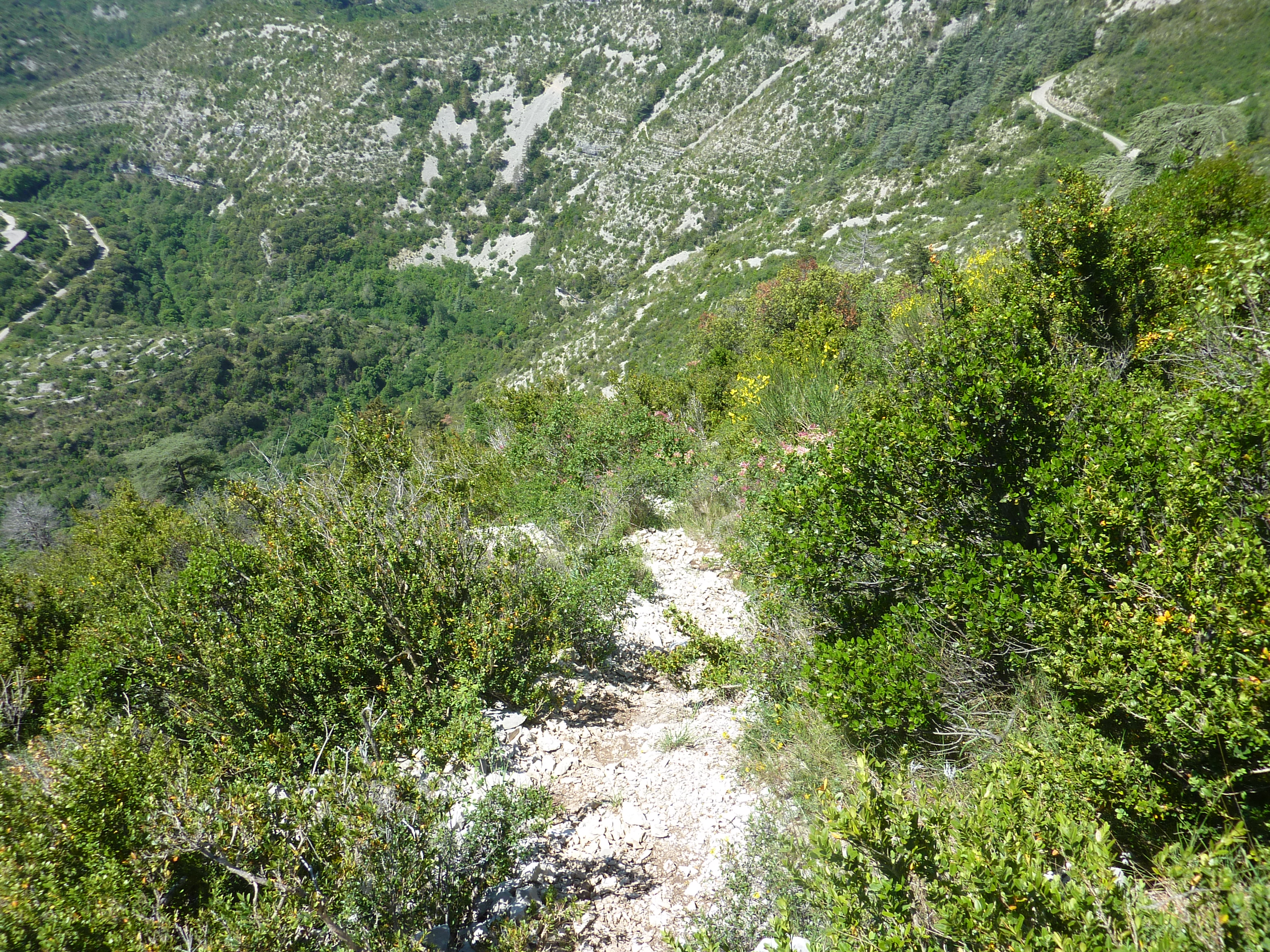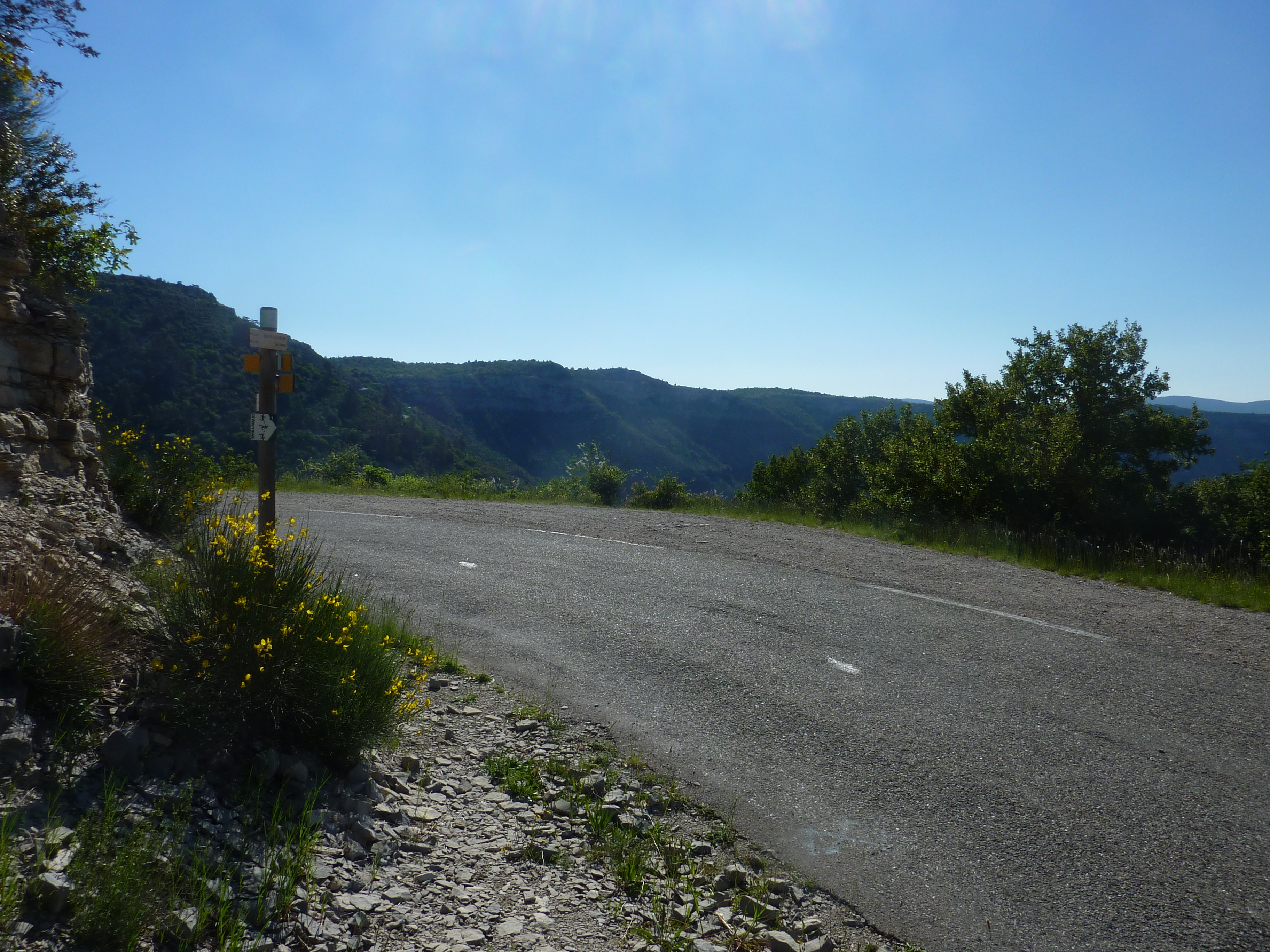 A ce croisement avec la D713, deux choix possibles : soit suivre la D713 partant sur la droite vers le Belvédère de Blandas par la route constituant une variante du GR7 moins sportive et moins technique, soit suivre la D713 partant sur la gauche vers le Belvédère de Blandas par la corniche (GR7) mais plus technique et sportif en raison de la présence de pentes raides à très raides ; deuxième option choisie direction Blandas, balisé en rouge et blanc
