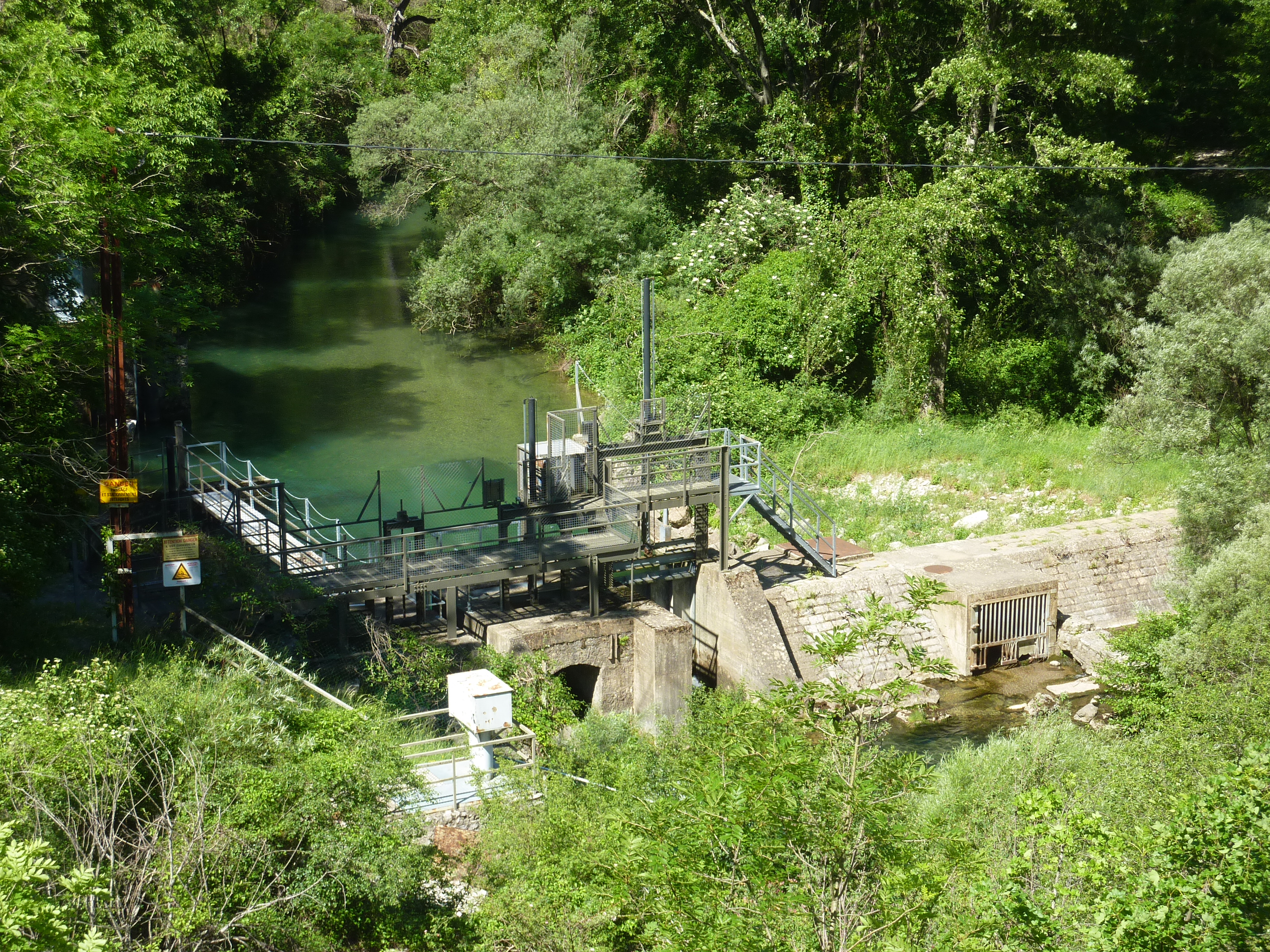 Zoom sur le barrage sur la Vis en amont de Navacelles