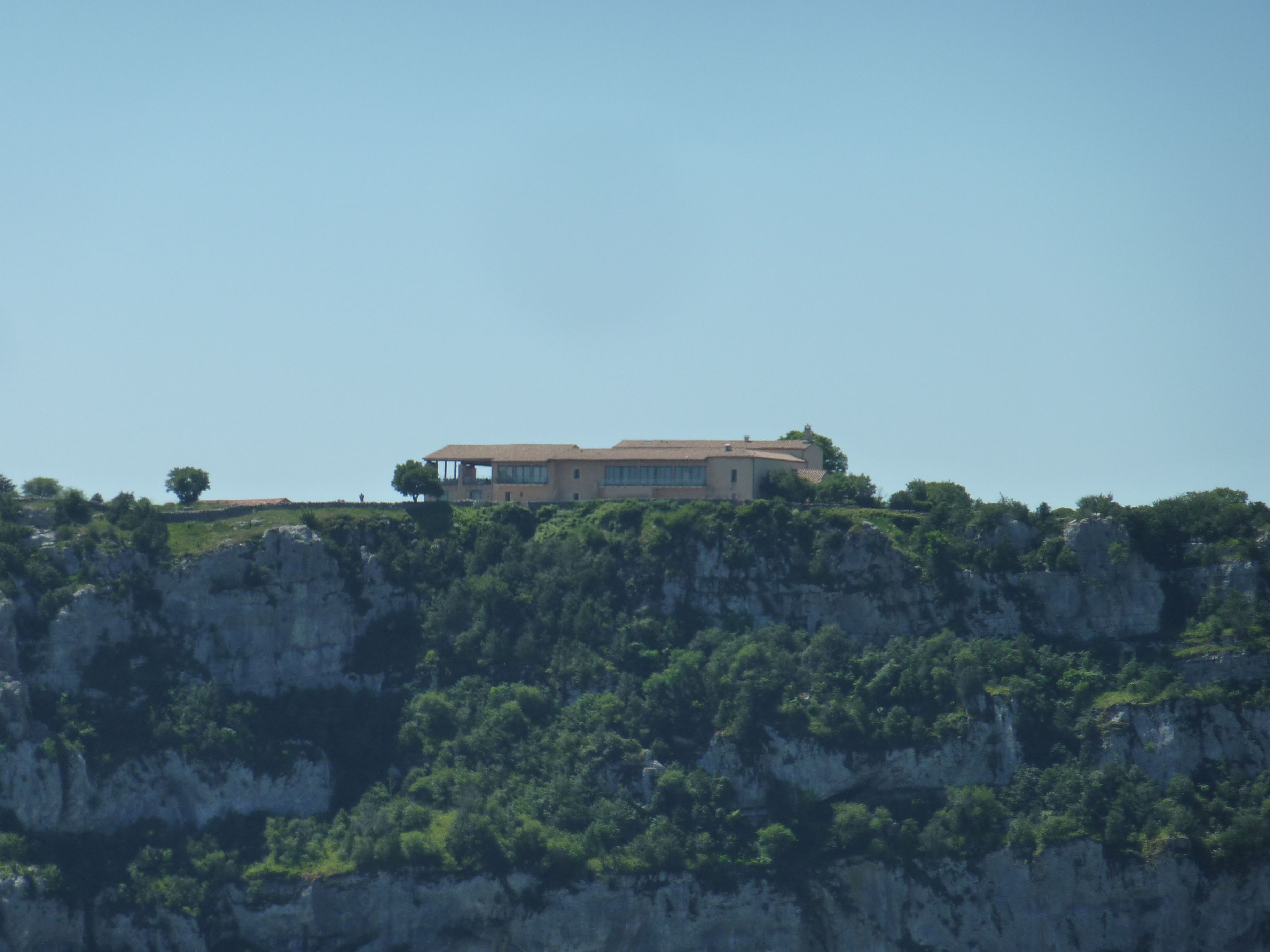 Zoom sur le belvédère de la Baume Auriol situé de l'autre côté du Cirque de Navacelles