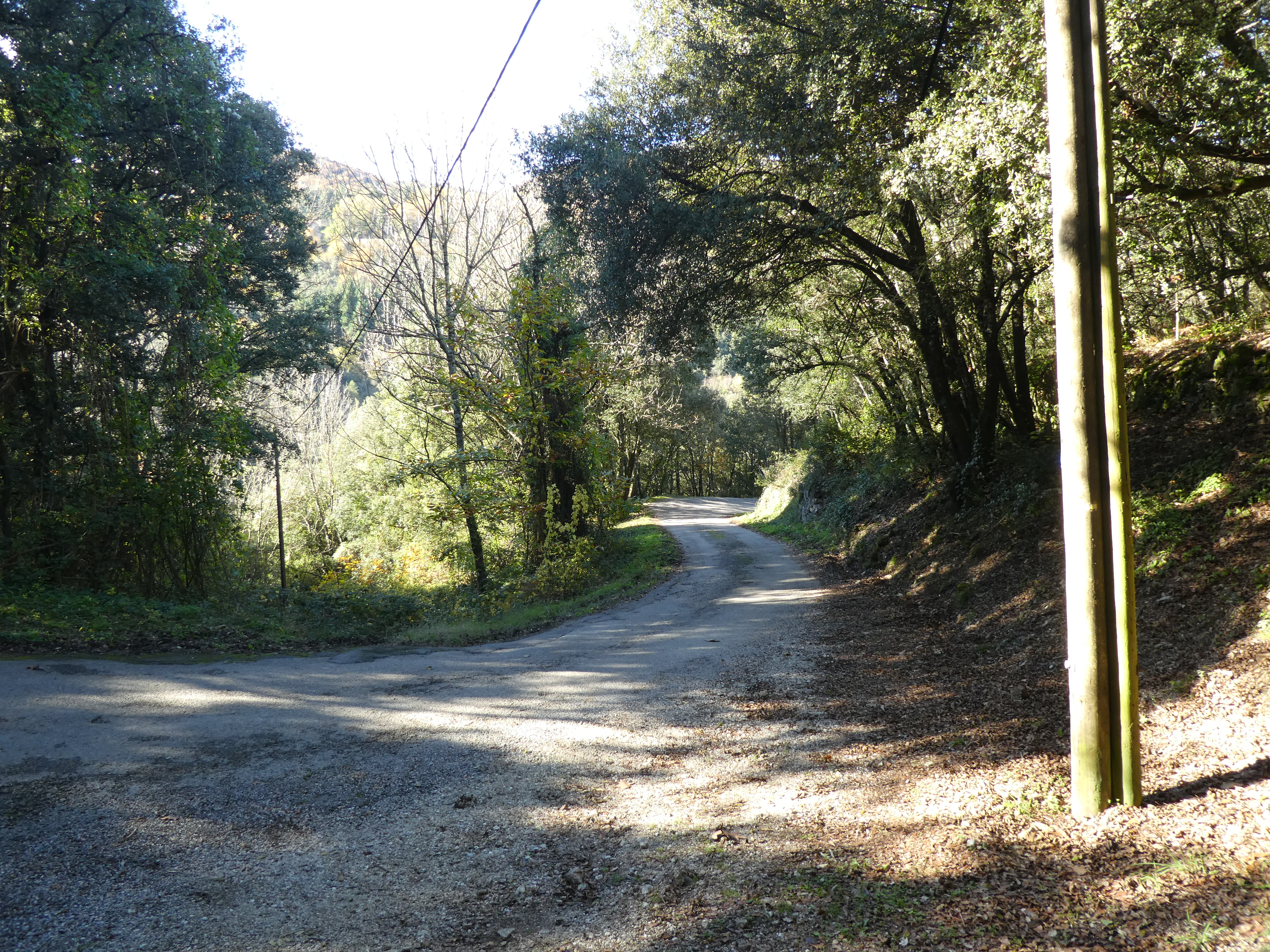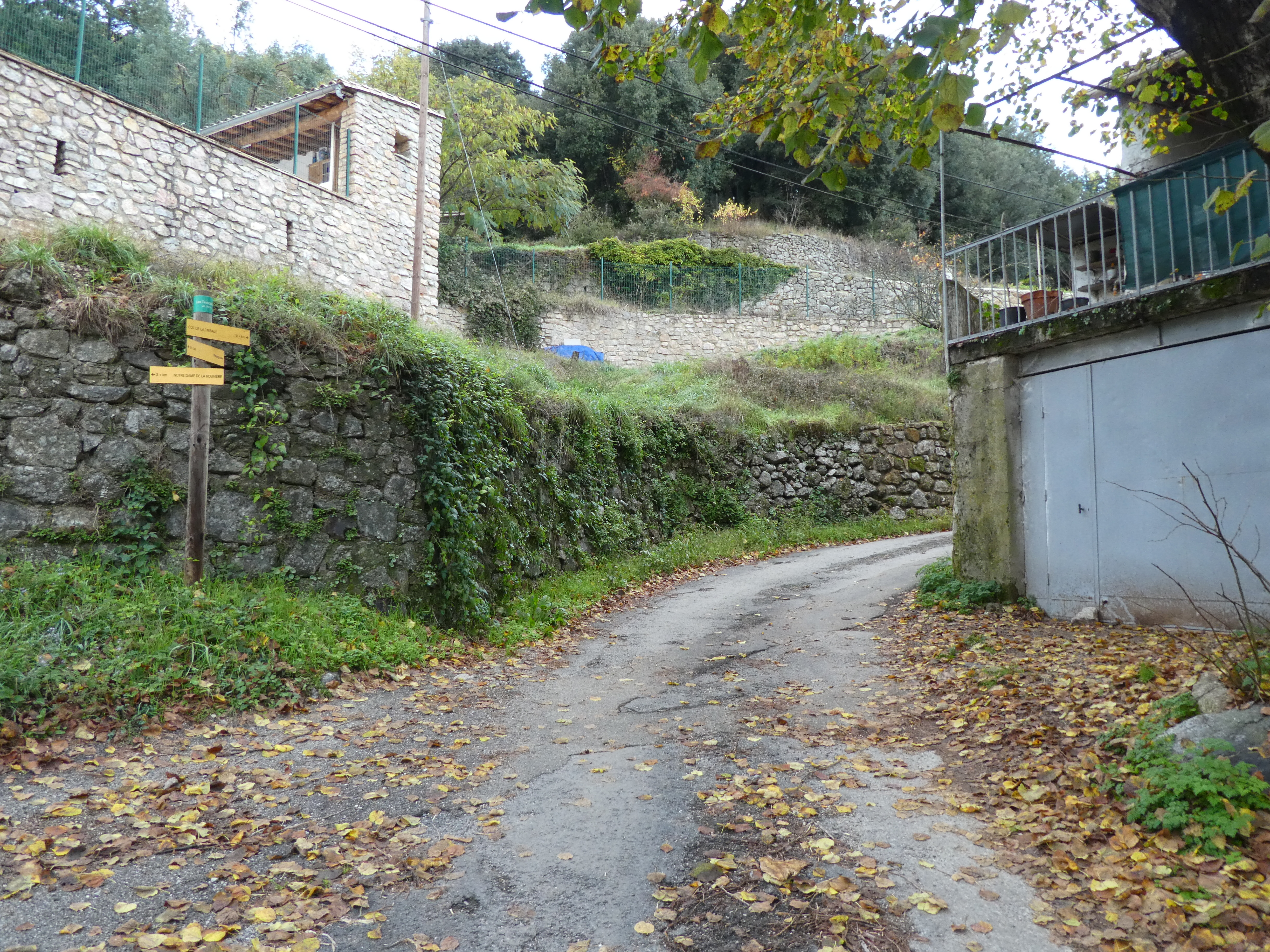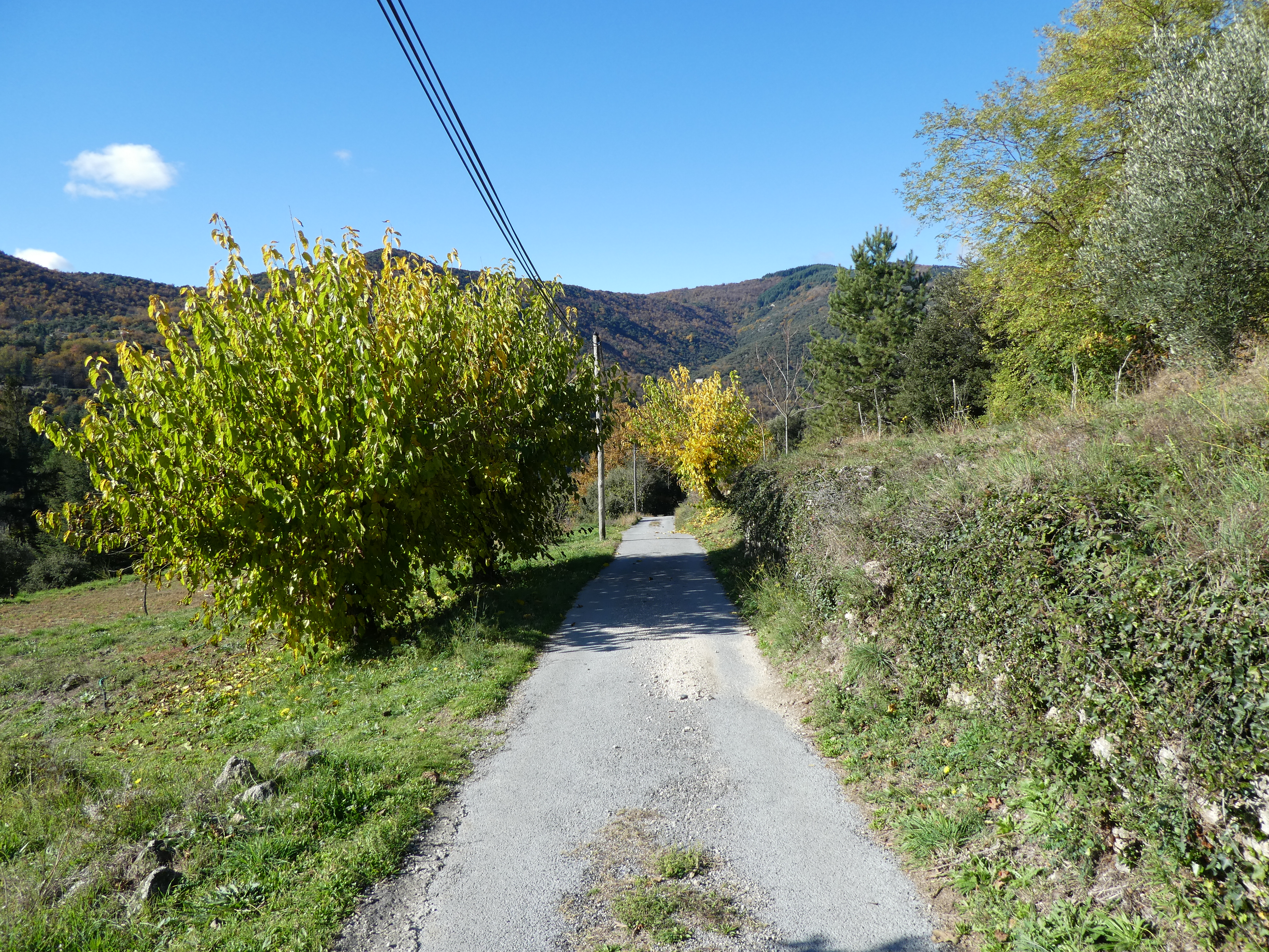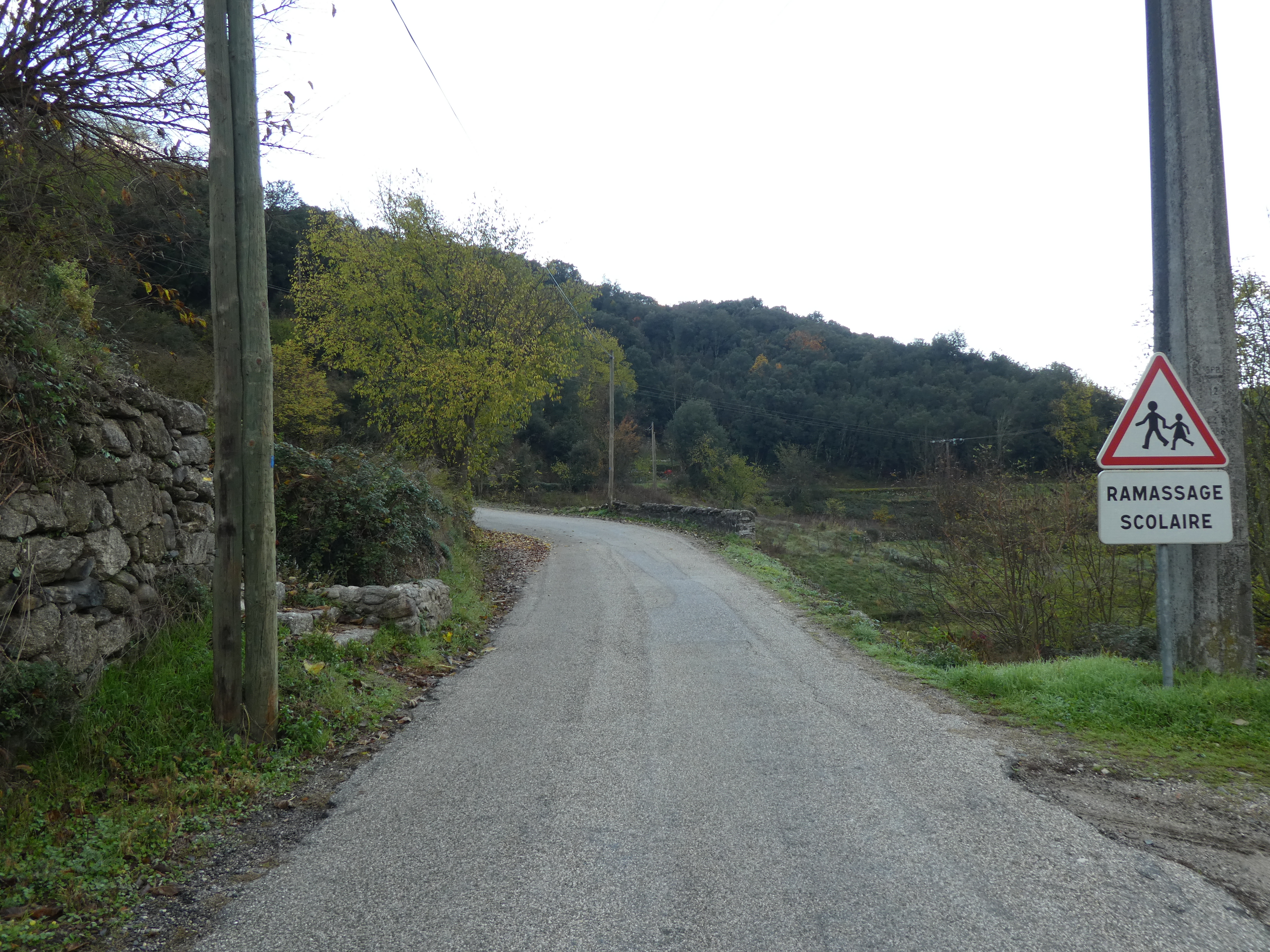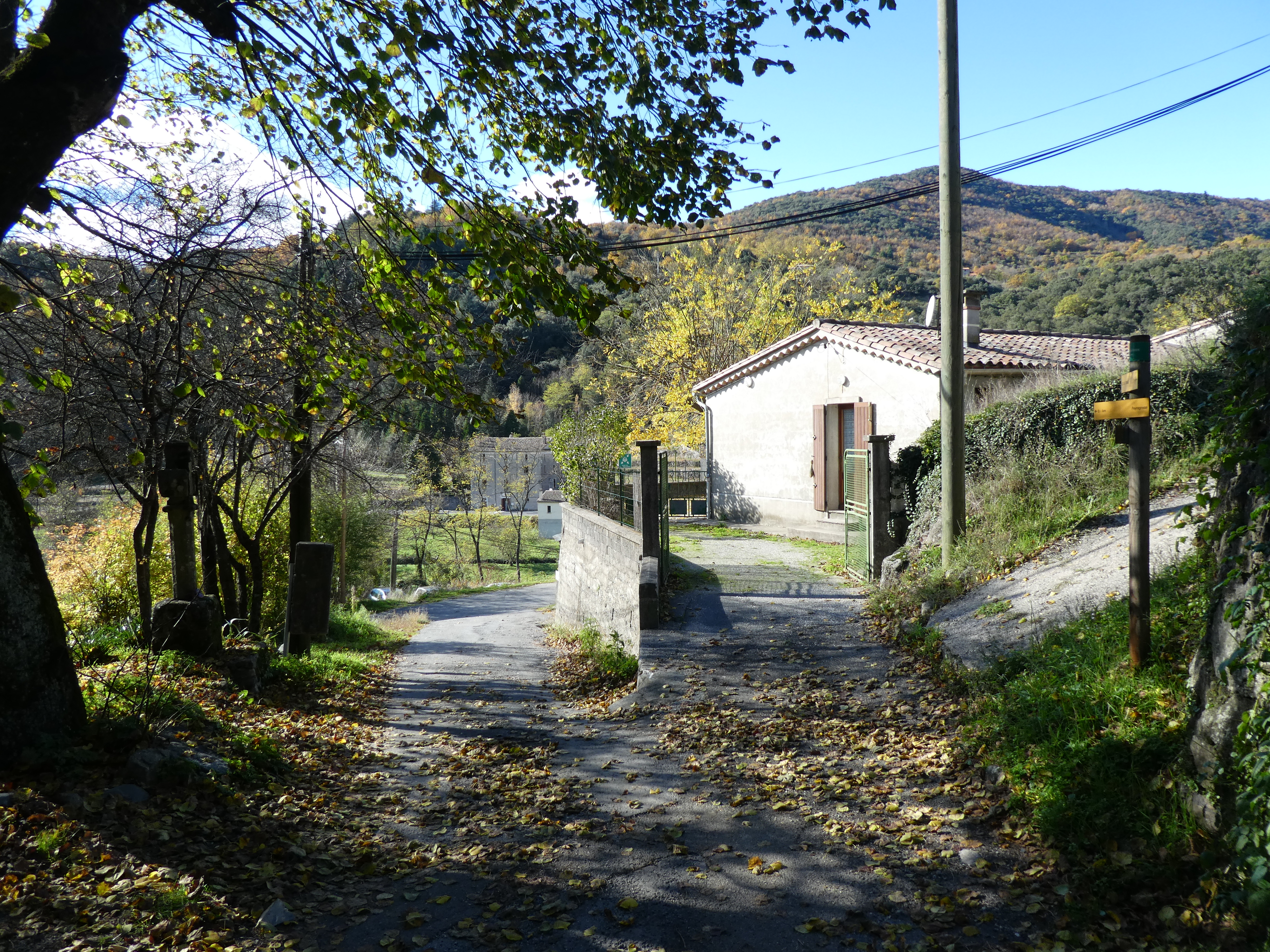 A ce croisement situé au niveau du lieu-dit "Agrine" (1800 mètres après le précédent), suivre le chemin montant sur la droite qui va se transformer en route goudronnée direction Notre-Dame-de-la-Rouvière, balisé en jaune