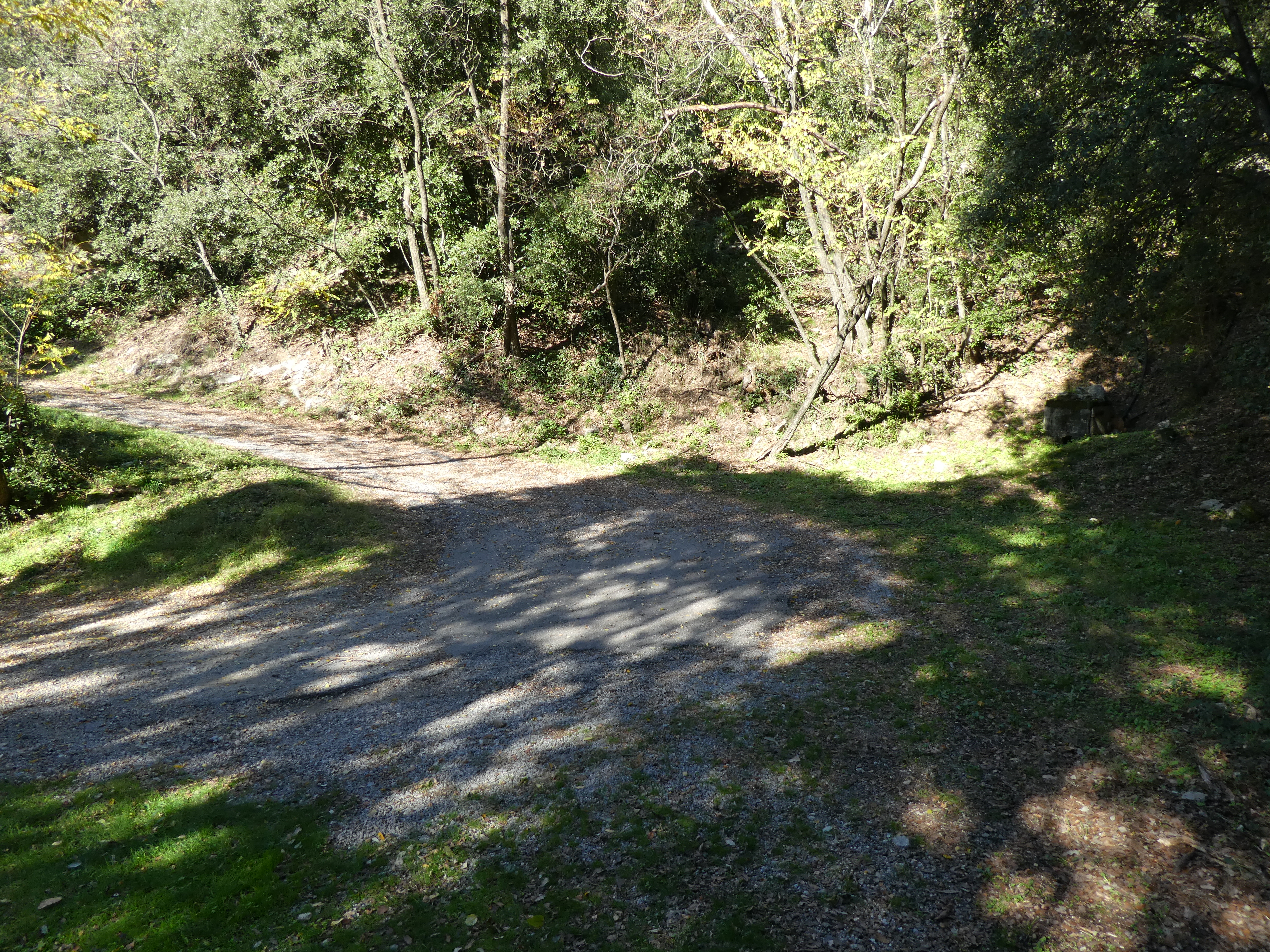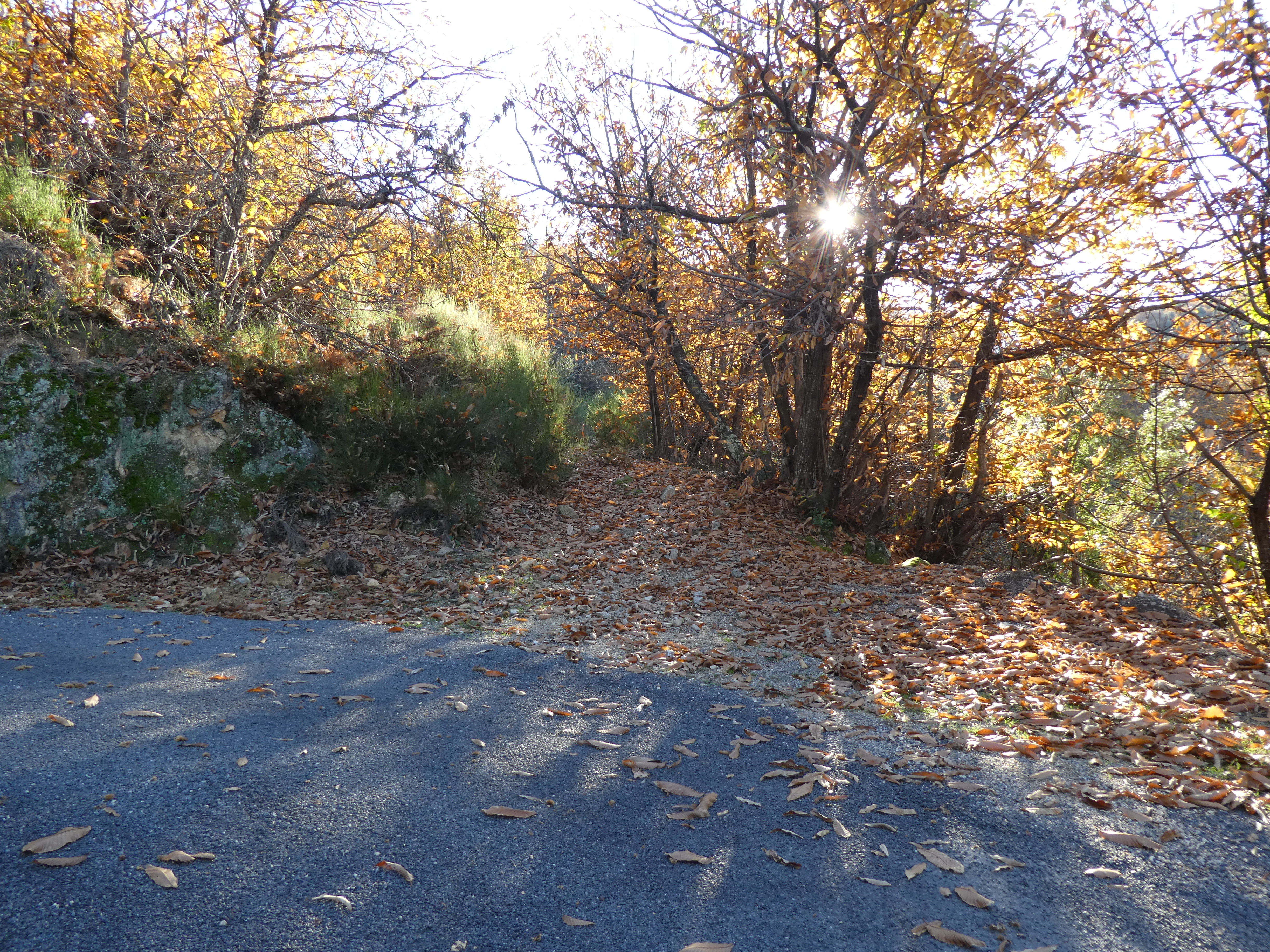 A ce croisement situé à la sortie du hameau de la Bastide (2000 mètres après la précédente intersection mentionnée), suivre le chemin partant tout droit direction Col de la Tribale, balisé en jaune