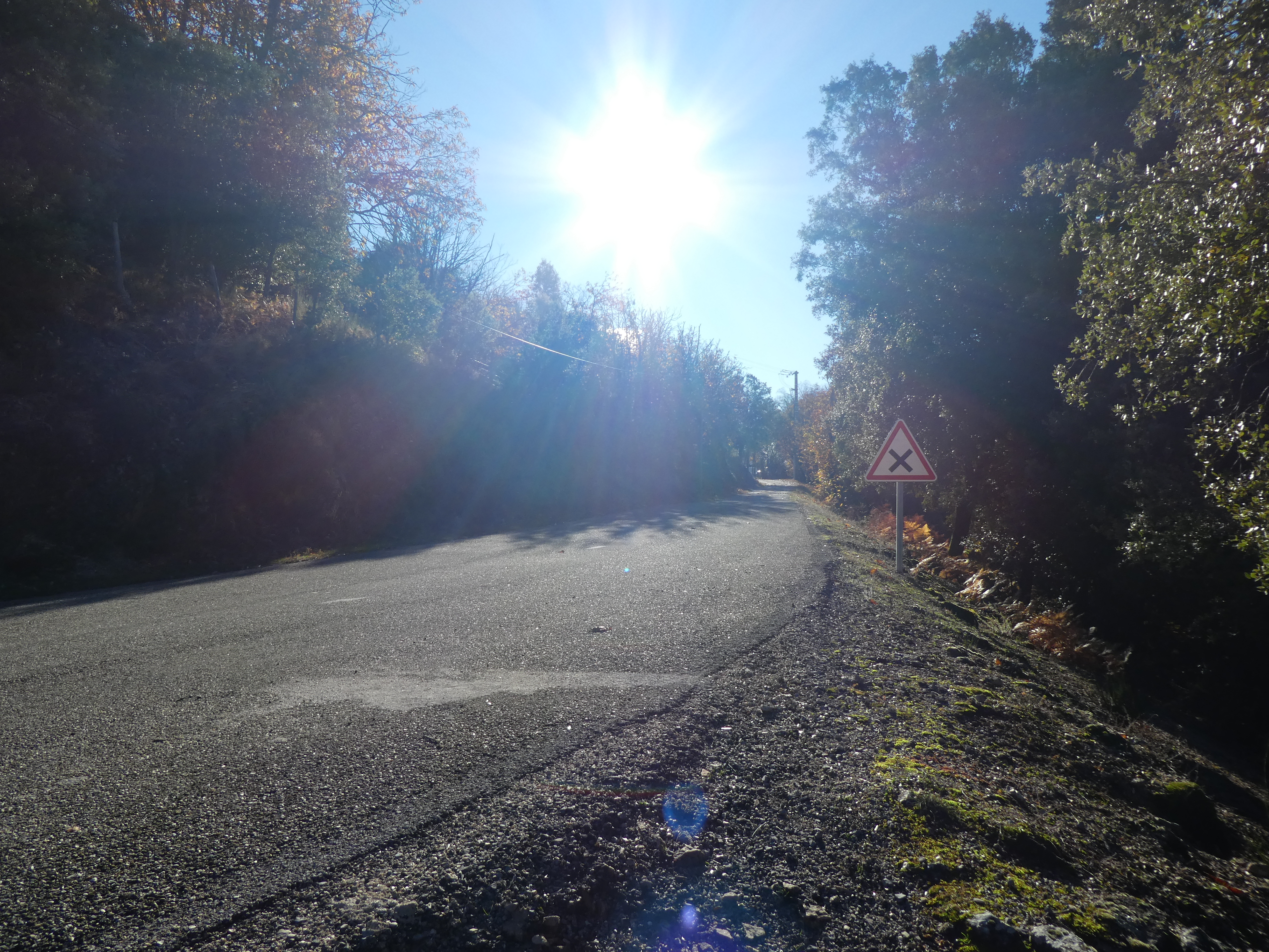 A ce croisement avec la D152 (300 mètres après le précédent), suivre cette dernière tout droit direction Col de la Tribale, balisé en jaune