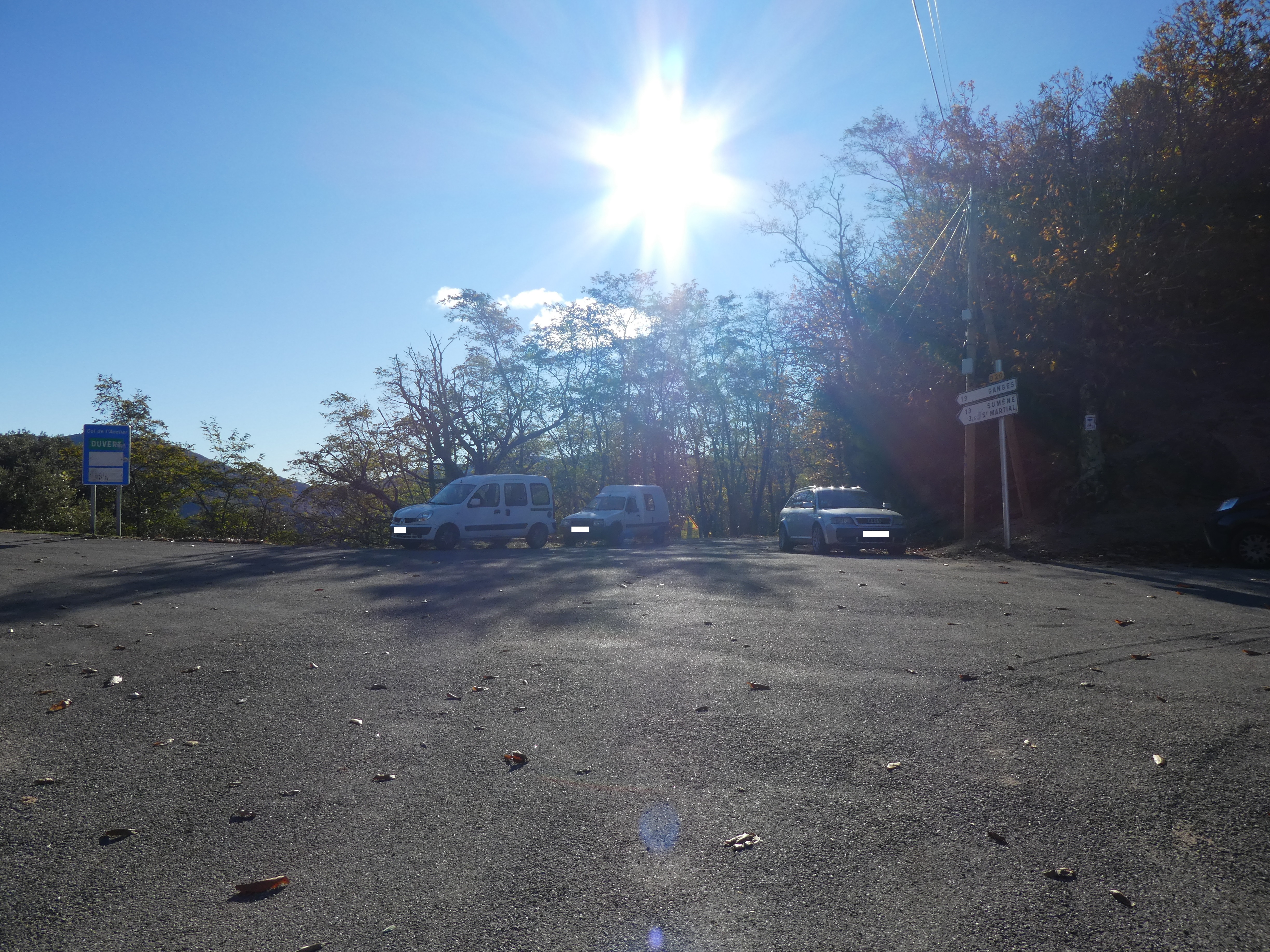 Col de la Tribale (599 m) : suivre la D420 partant sur la droite direction Peyregrosse, balisé en jaune (zone de battue probable en période de chasse, prudence !)