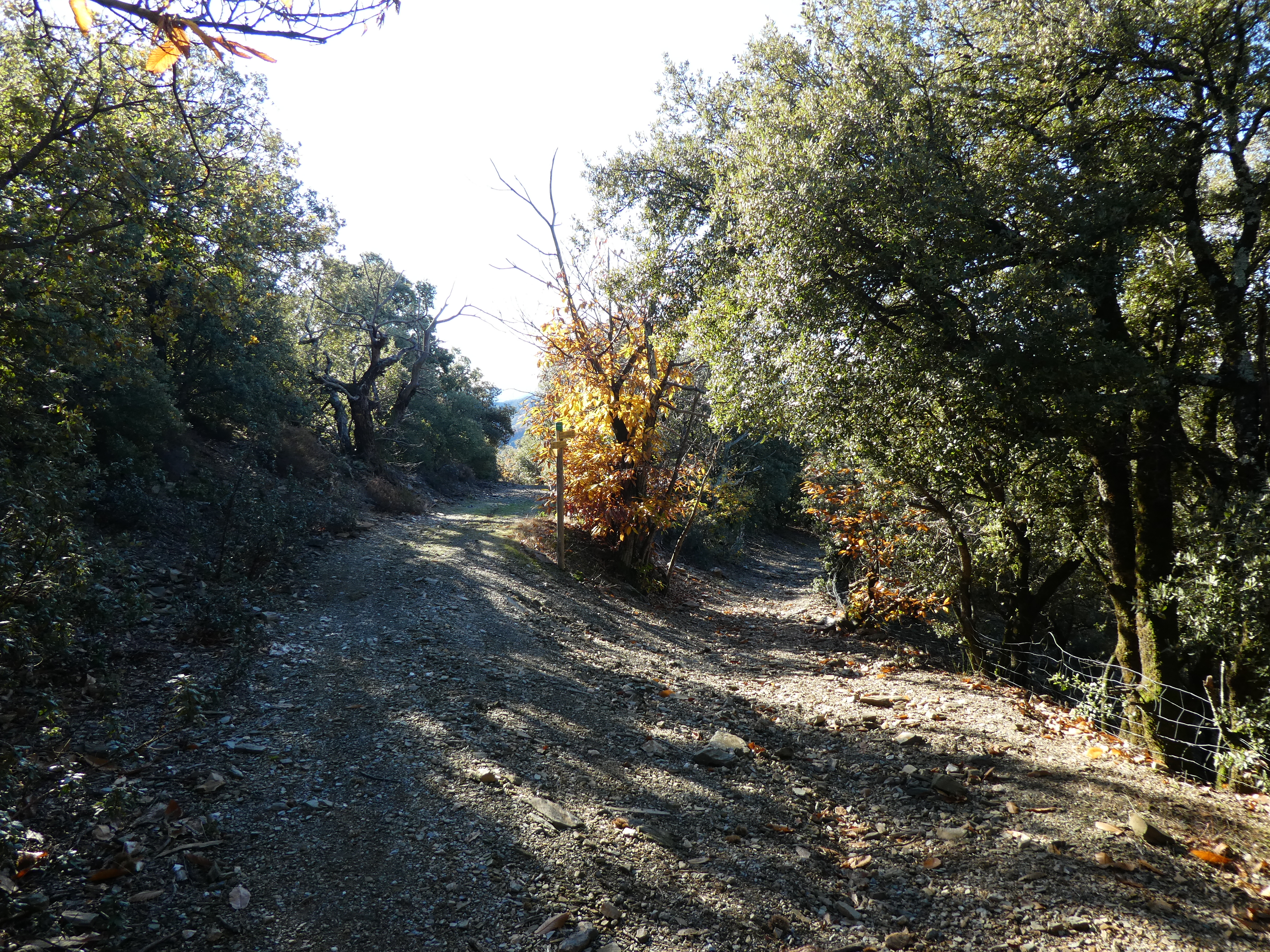 Col de Peyraube (514 m) : suivre le chemin descendant sur la droite direction Peyregrosse, balisé en jaune
