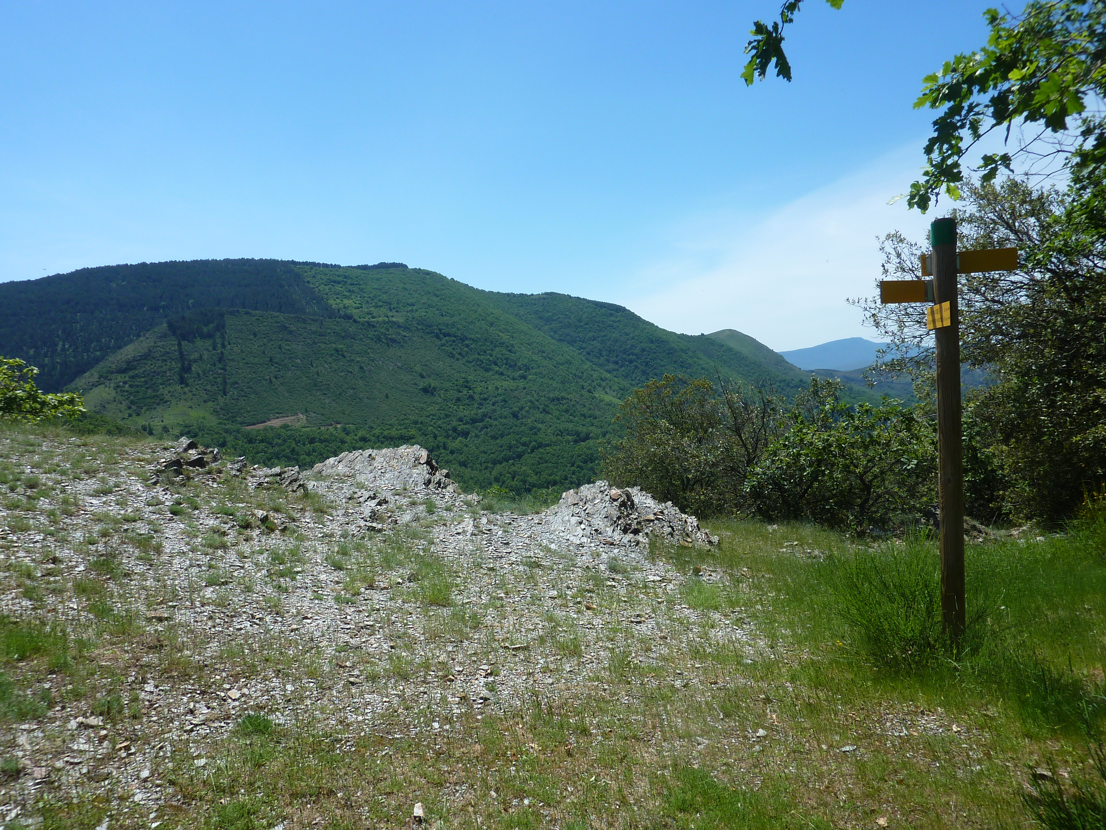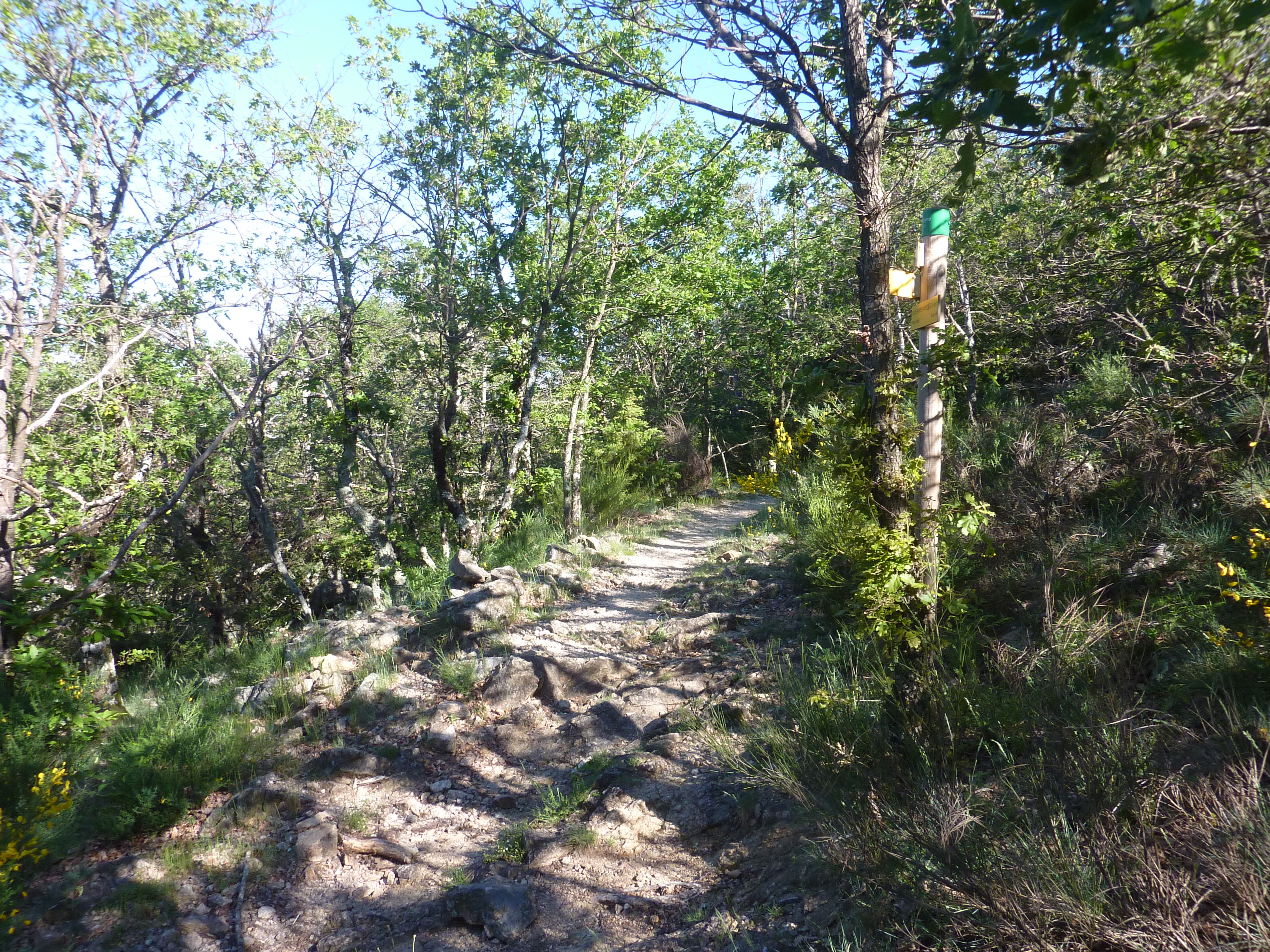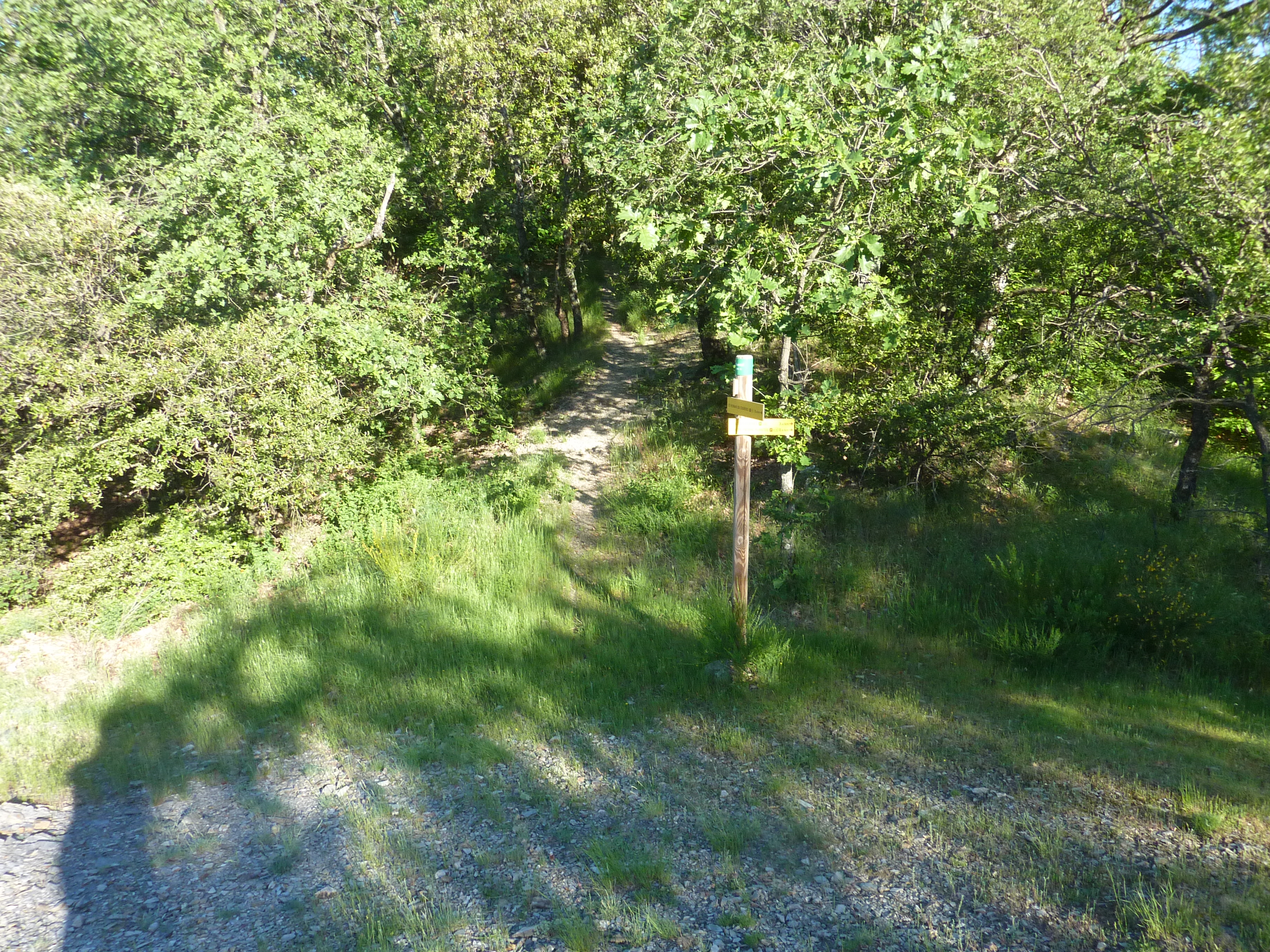 Col des Fosses (899 m) : suivre le chemin montant légèrement sur la gauche direction Coulègne, aucun balisage dorénavant (pour ceux qui ne veulent pas monter au sommet de Coulègne, suivre le chemin partant légèrement sur la droite vers Saint-Roman-de-Codières)