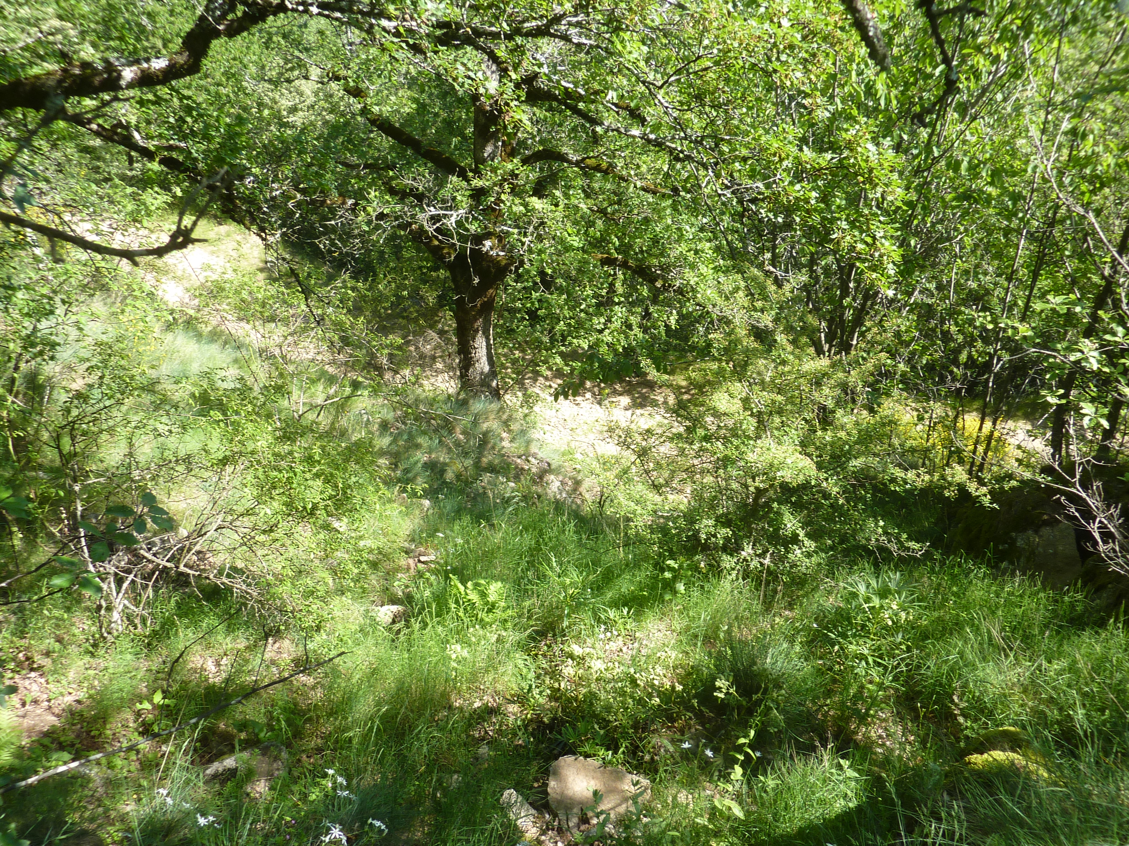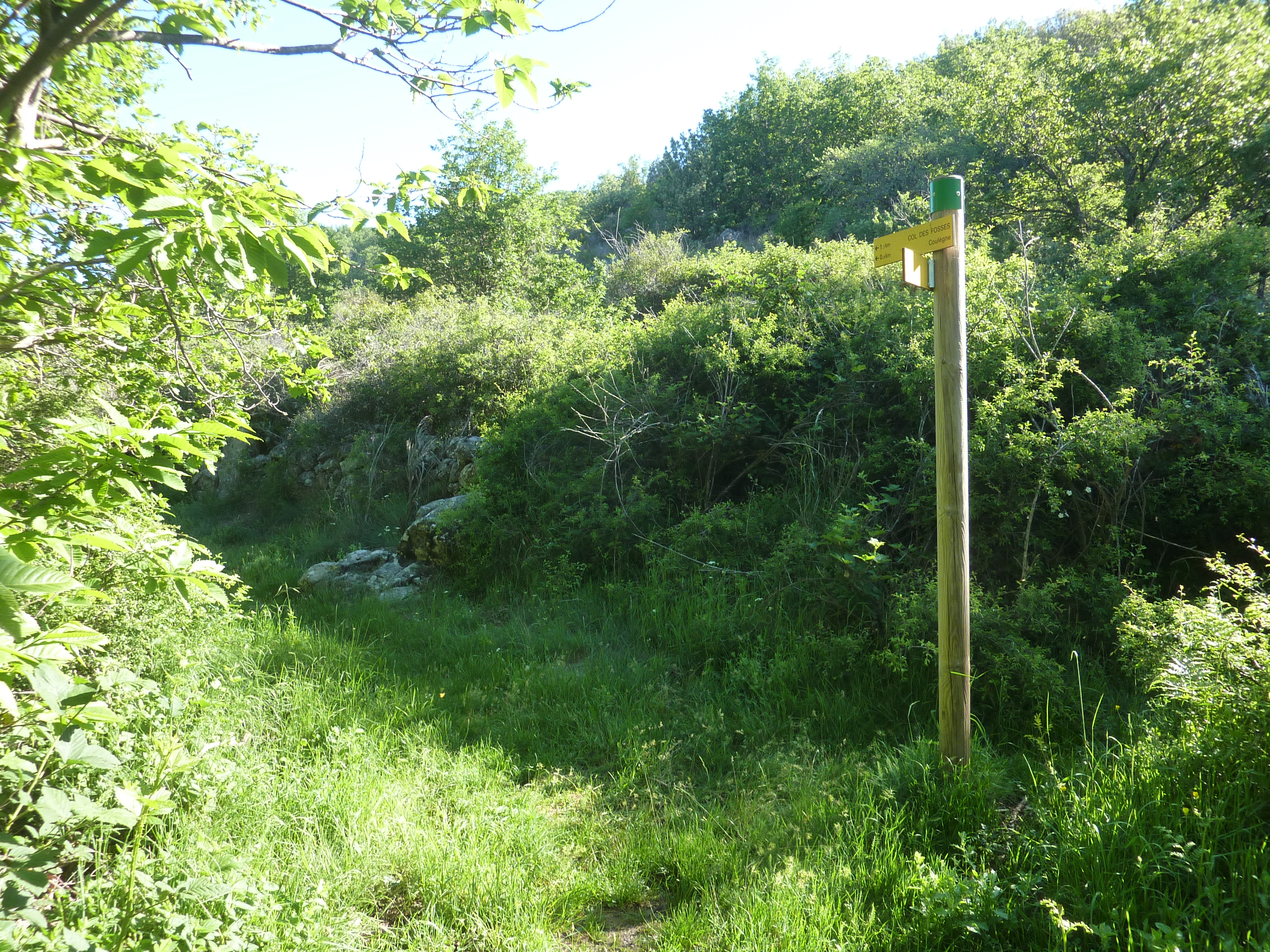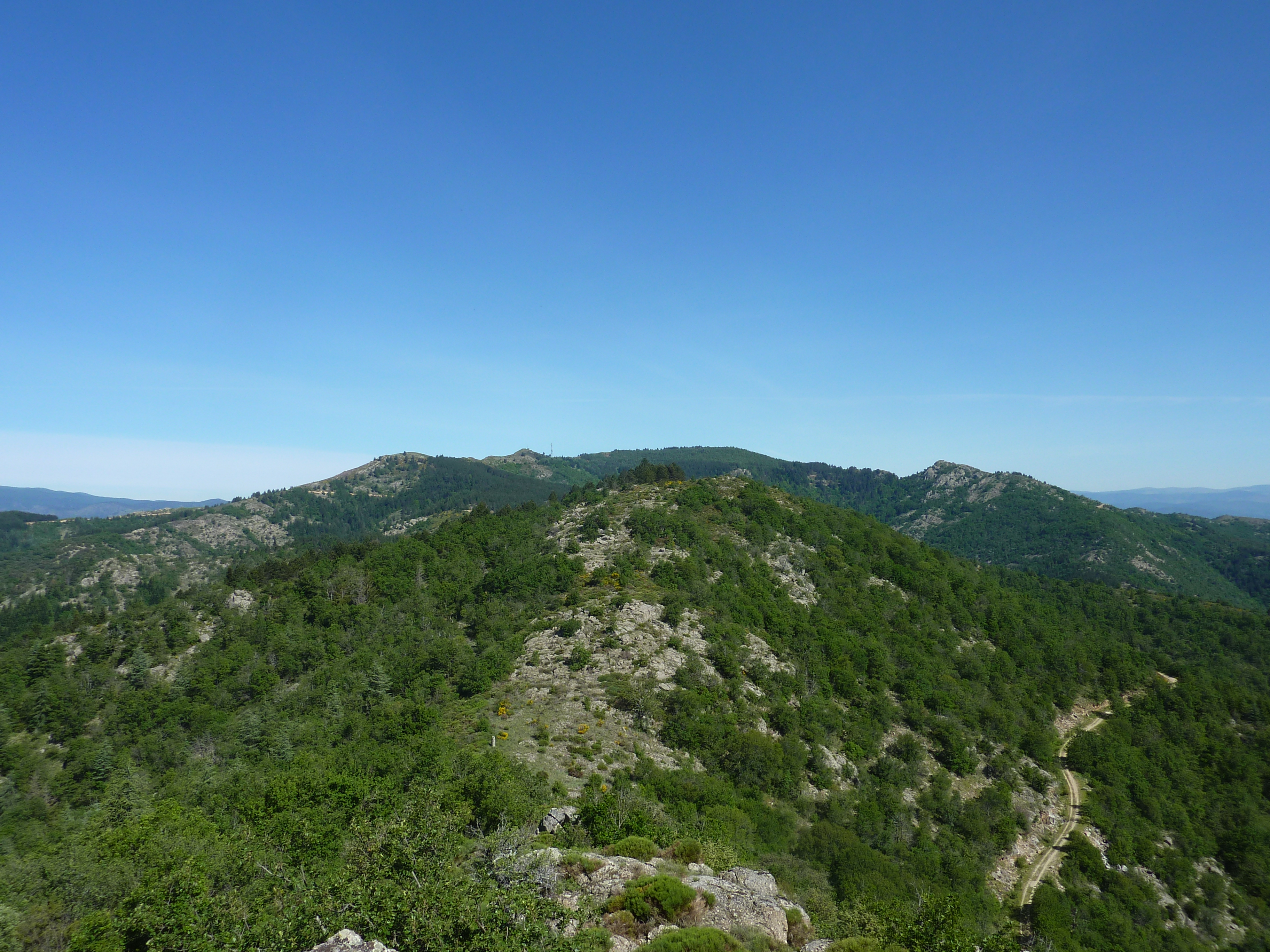 Col des Fosses (899 m) : suivre le chemin montant légèrement sur la gauche direction Coulègne, aucun balisage dorénavant (pour ceux qui ne veulent pas monter au sommet de Coulègne, suivre le chemin partant légèrement sur la droite vers Saint-Roman-de-Codières)