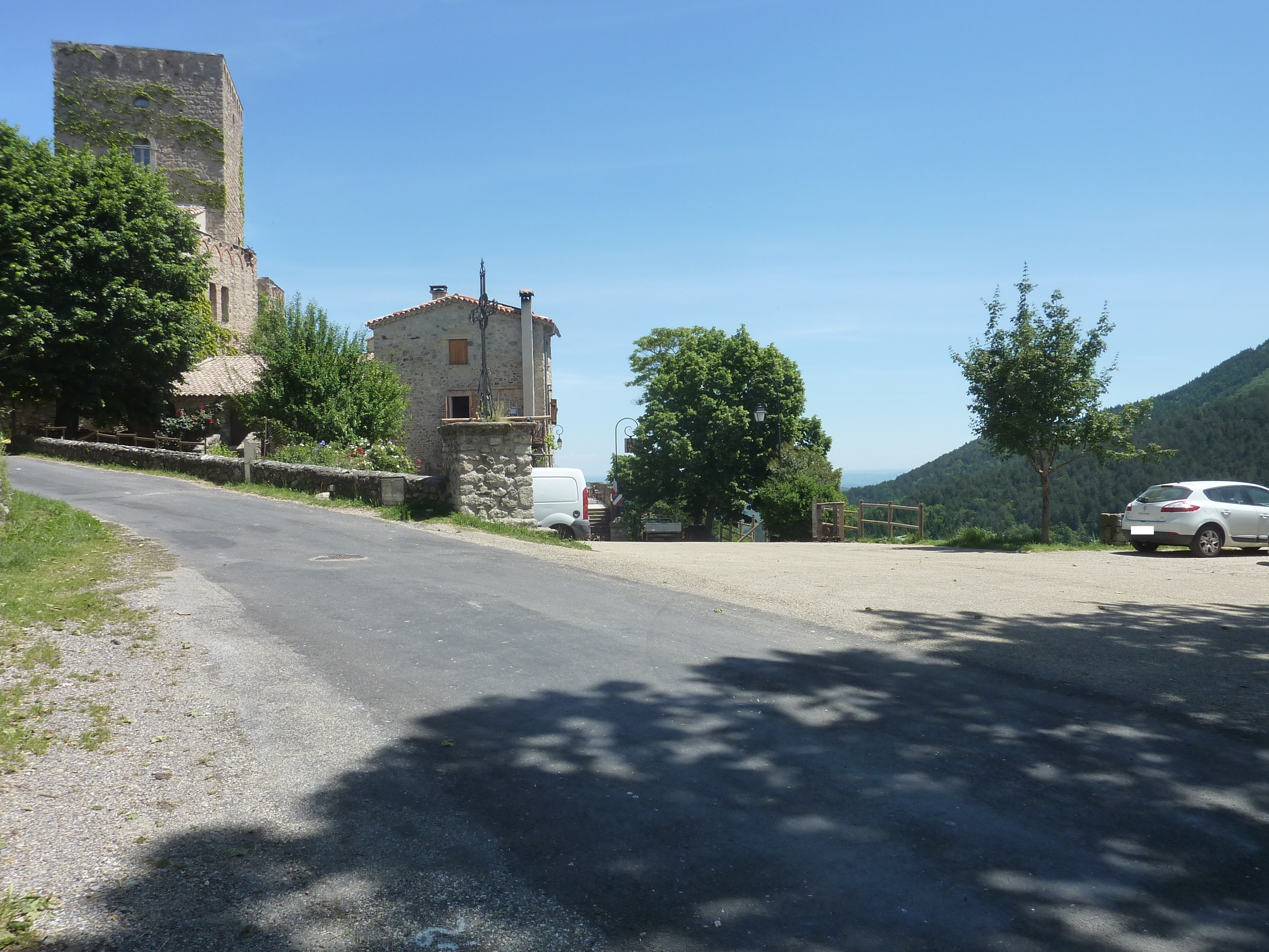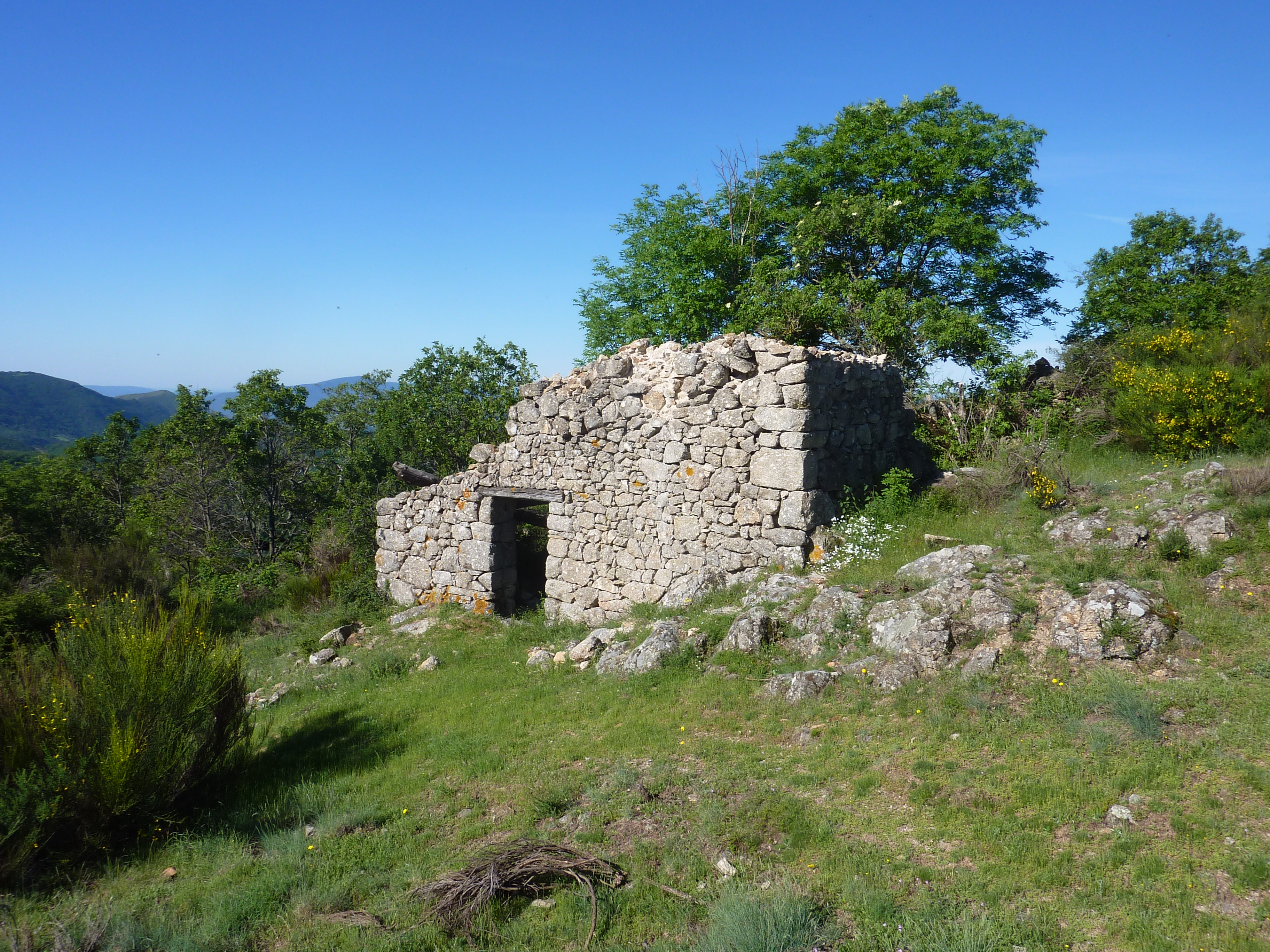 Baucel (696 m) : suivre le chemin partant sur la gauche direction Saint-Roman-de-Codières, balisé en jaune