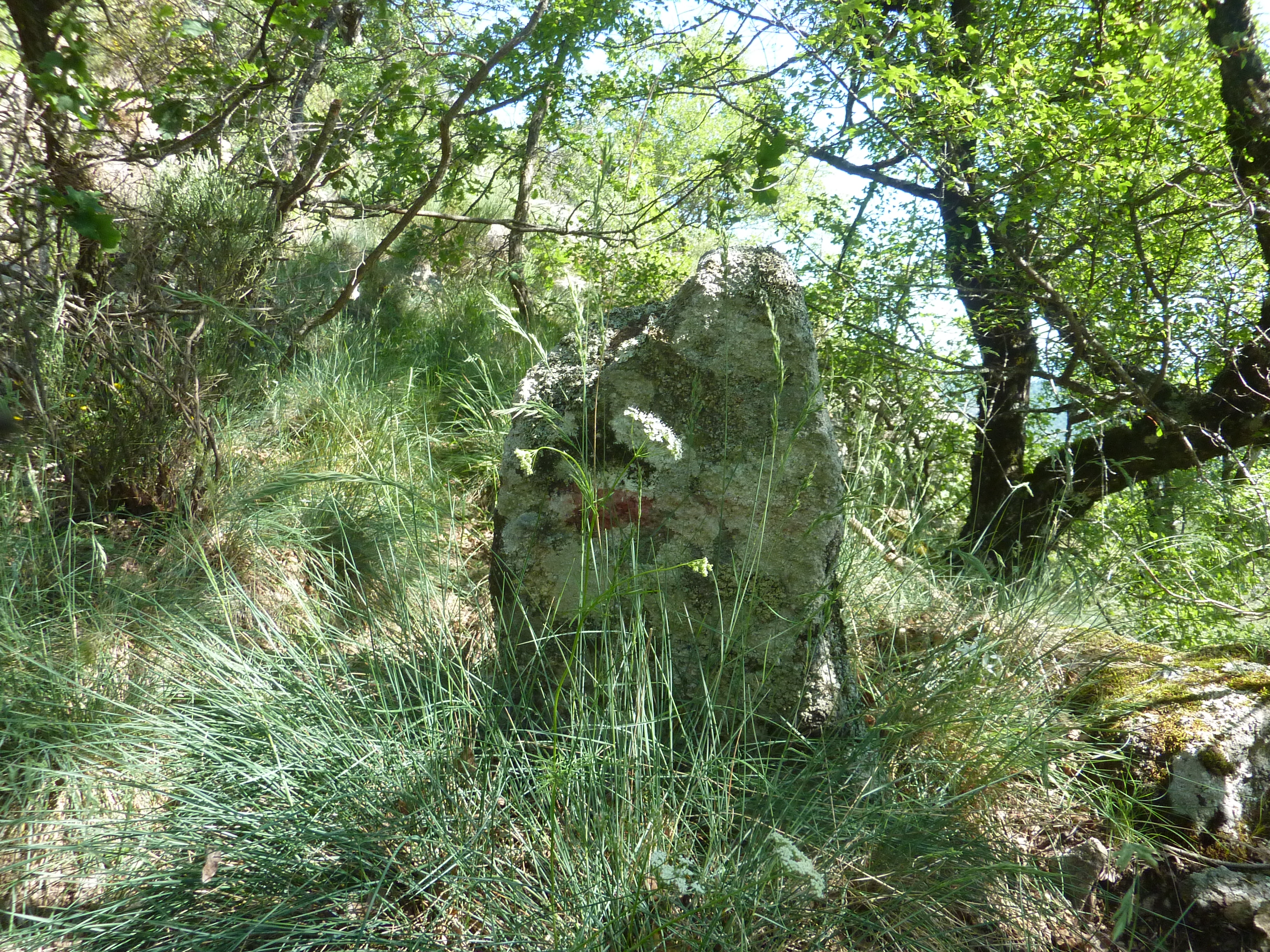 Une pierre plantée sur le sentier menant au Col des Fosses