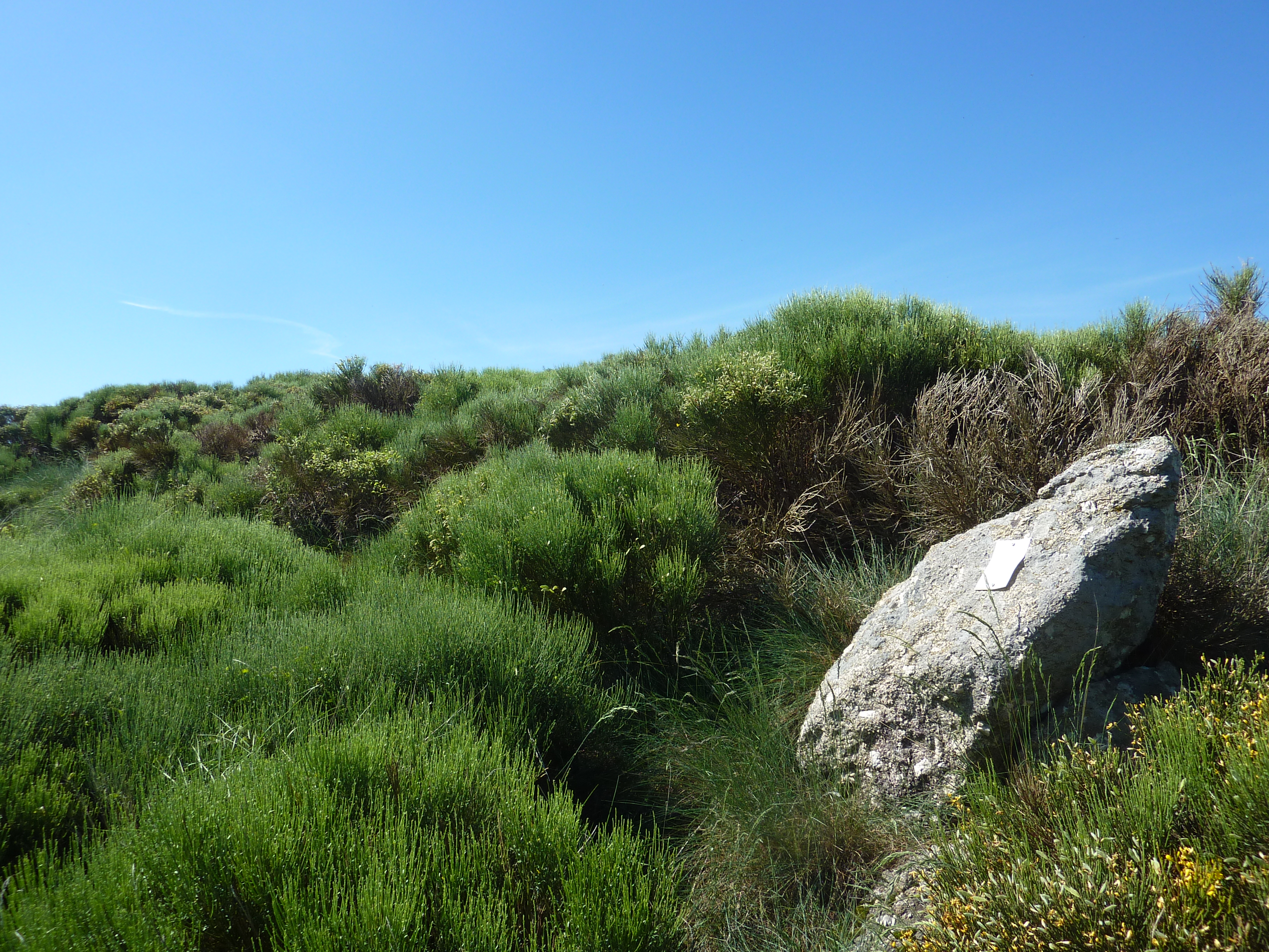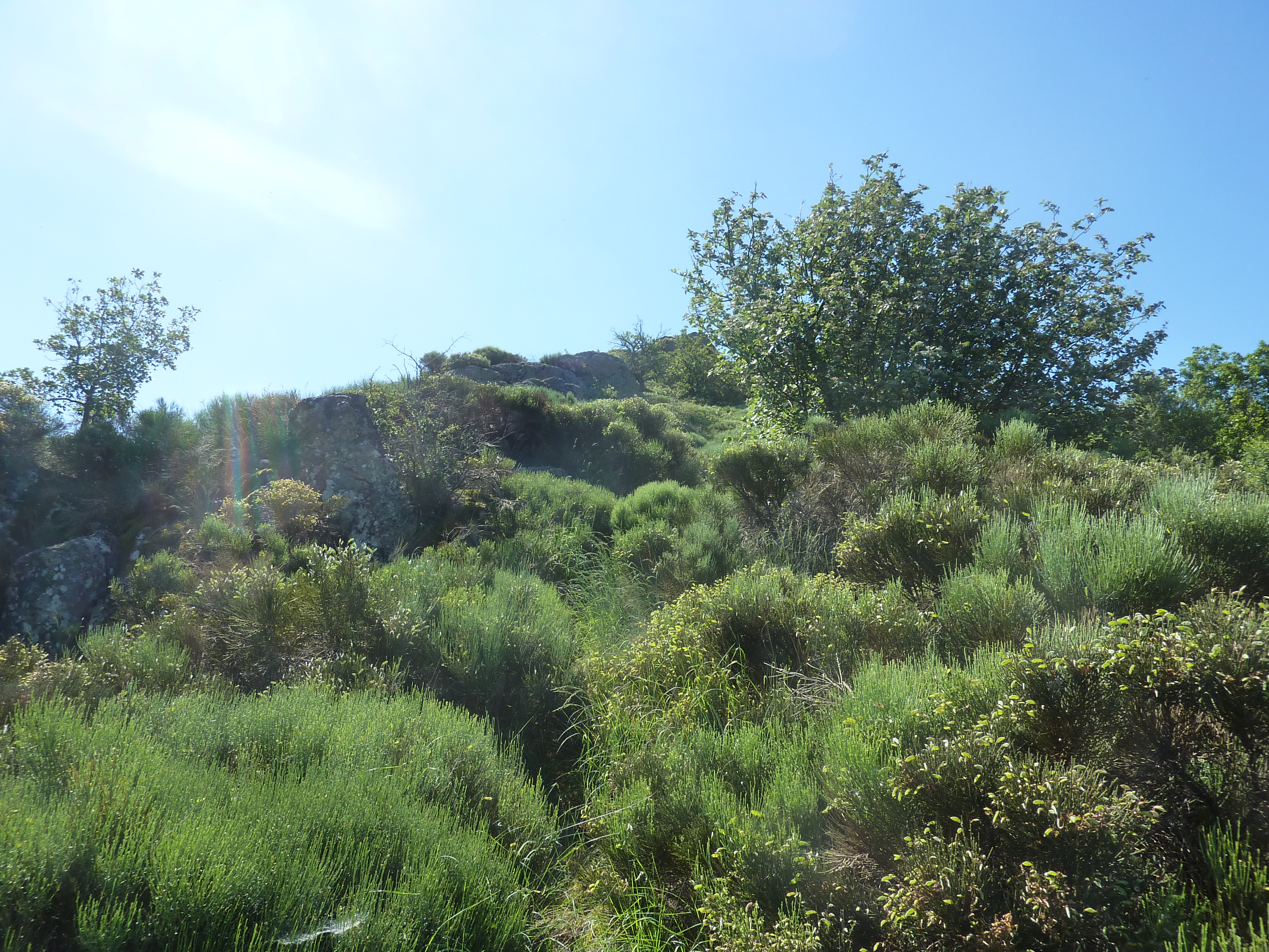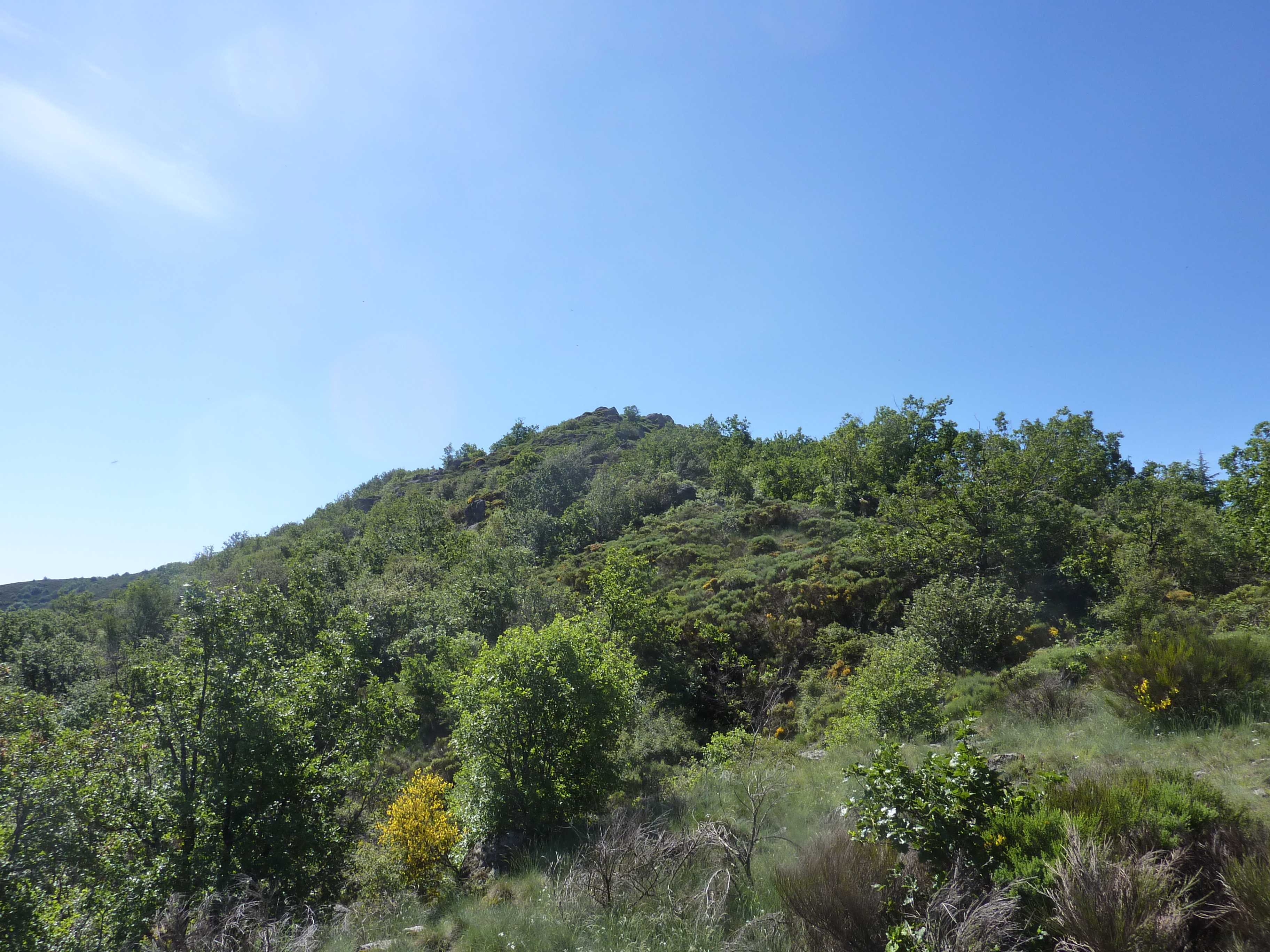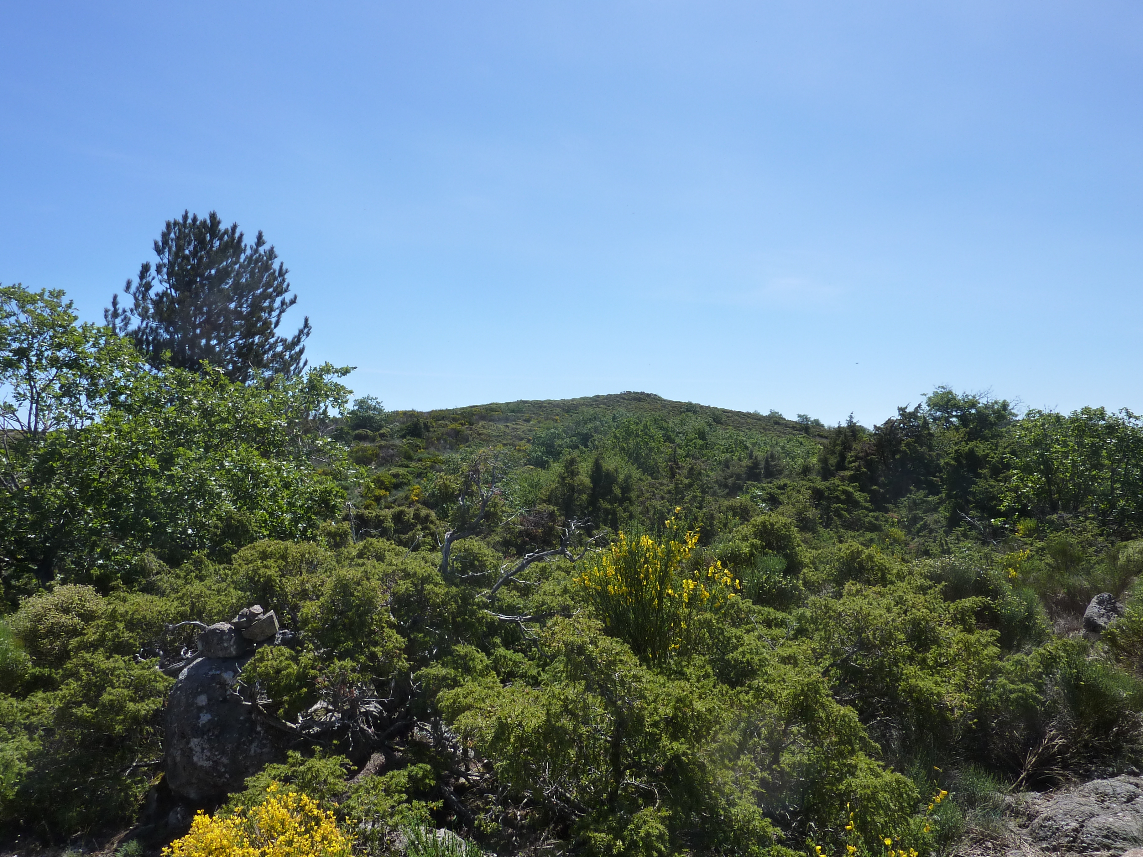 Pour accéder au sommet, il faut suivre la trace sûrement faite par les chasseurs à travers les genêts (pantalon long recommandé !)