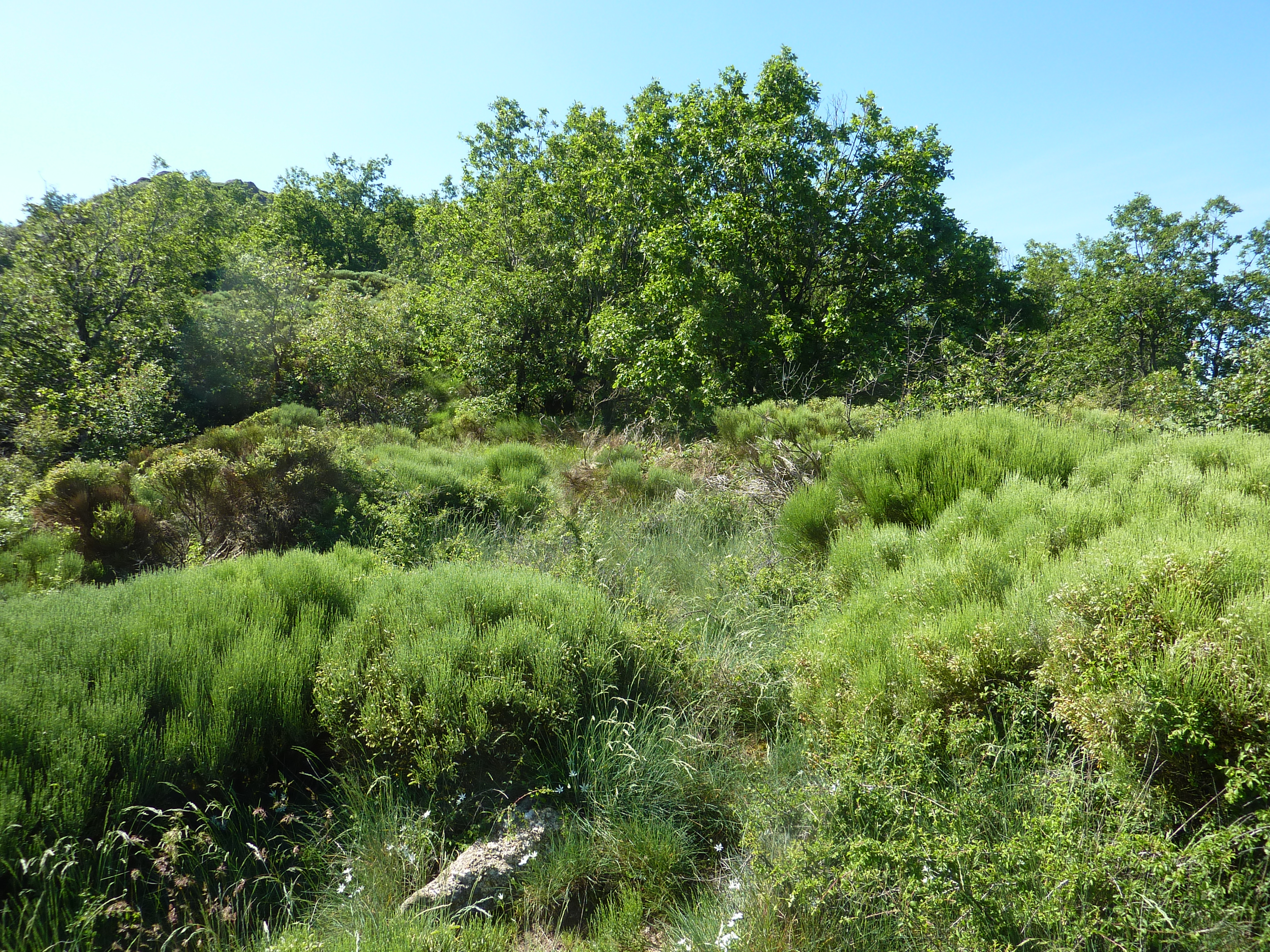 - Progression de la fin du GR6 jusqu'au sommet de la Truque de Blaquisses hors sentier à travers la végétation (il ne subsiste qu'une trace où la végétation a repris ses droits) : pantalon long conseillé !