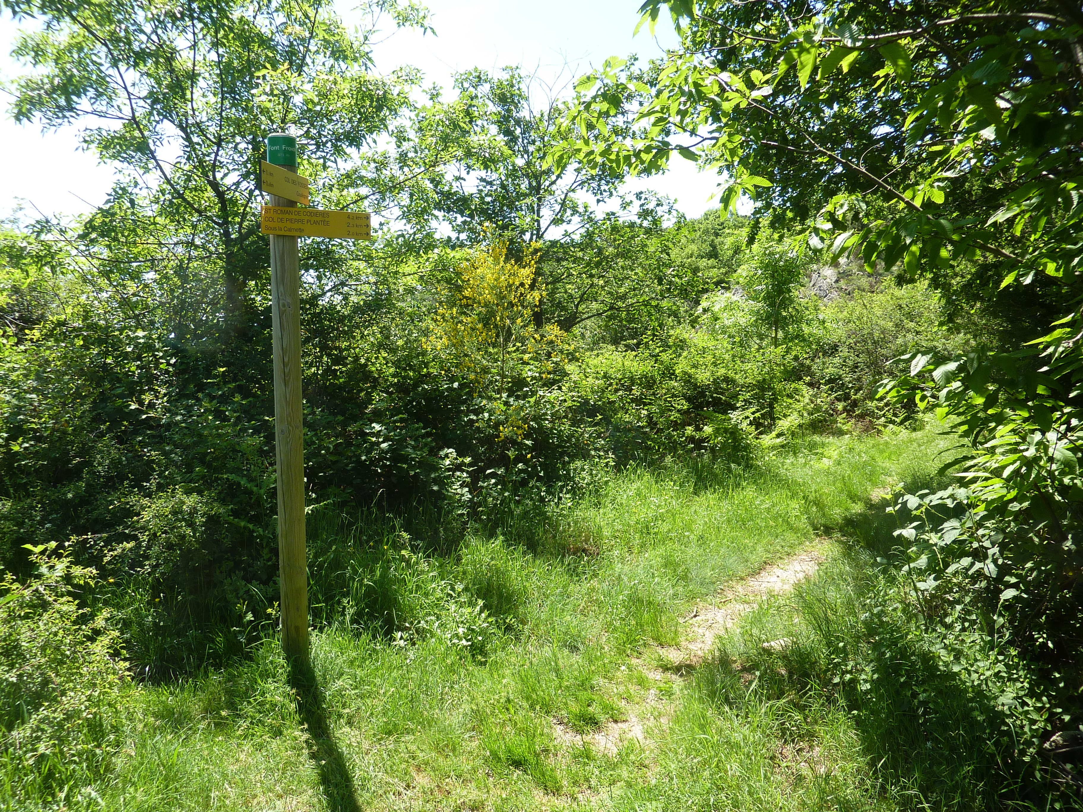 Font Froide (871 m) : suivre le chemin partant légèrement sur la droite direction Col de la Pierre Plantée, balisé en jaune
