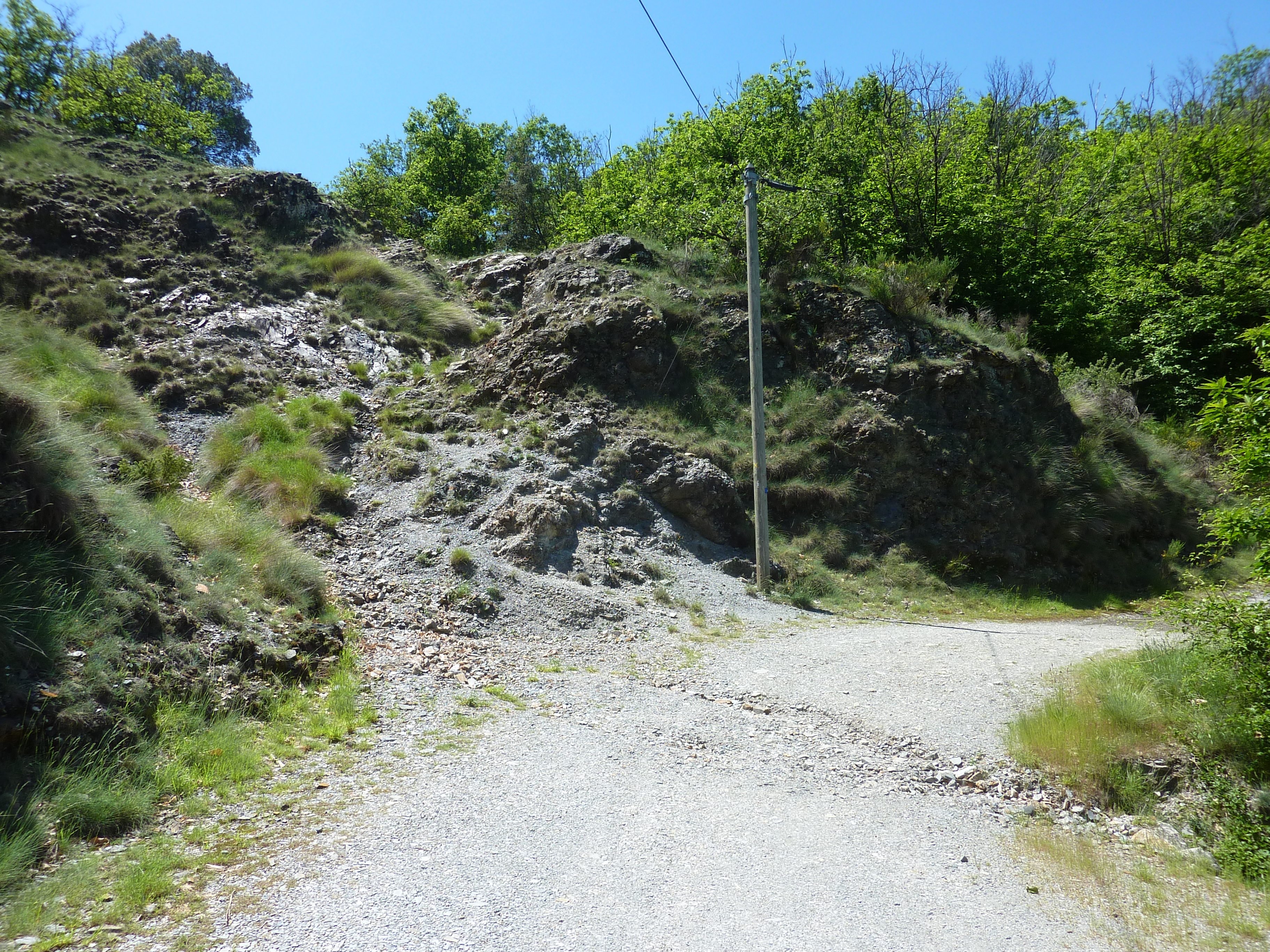 A ce croisement (250 mètres après avoir quitté l'éboulement), suivre le chemin montant sur la droite direction Col des Fosses, balisé en rouge et blanc