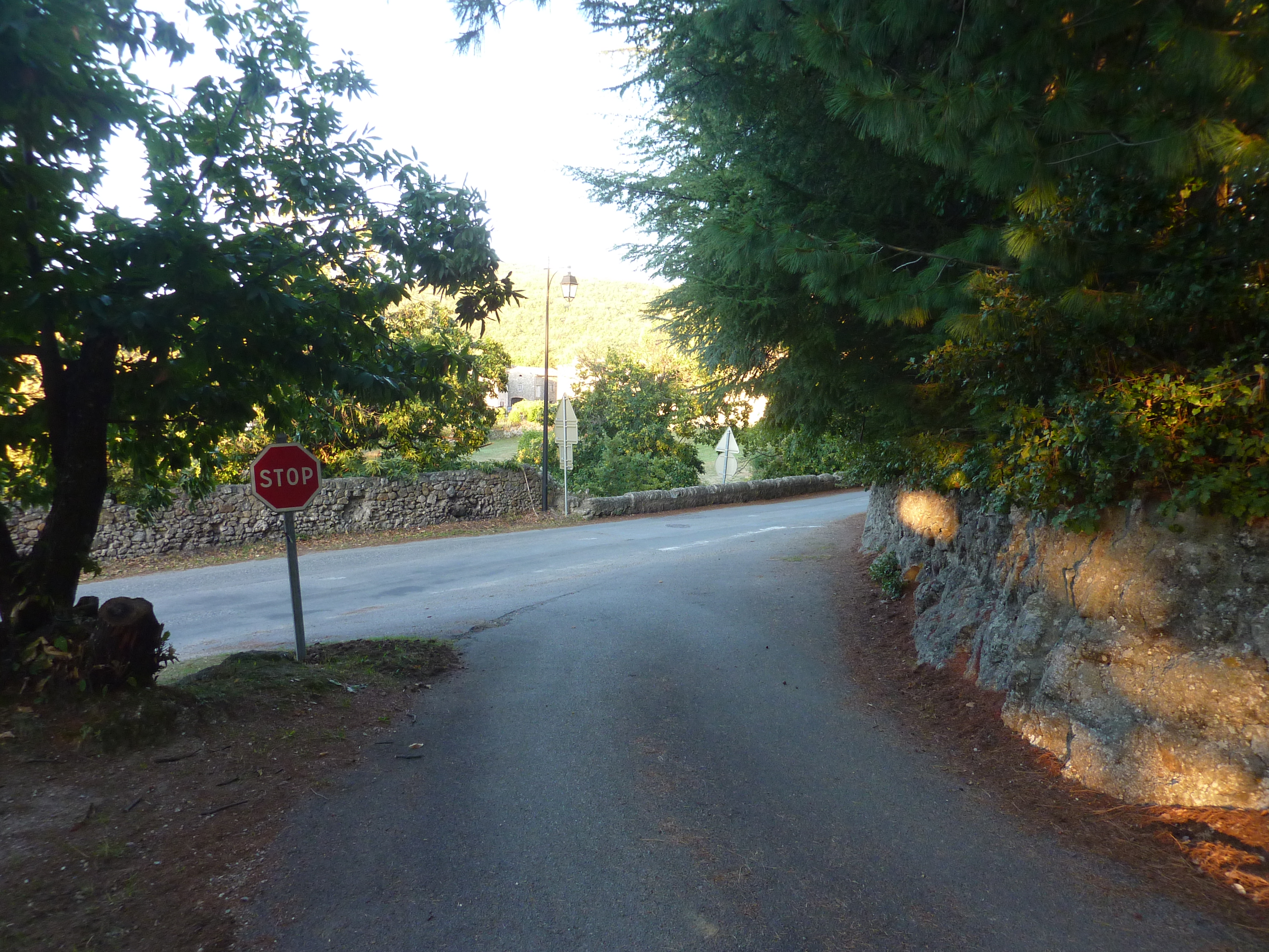 Départ Colognac (576 m) : suivre la route partant sur la droite vers le centre du village direction Col des Fosses, balisé en rouge et blanc