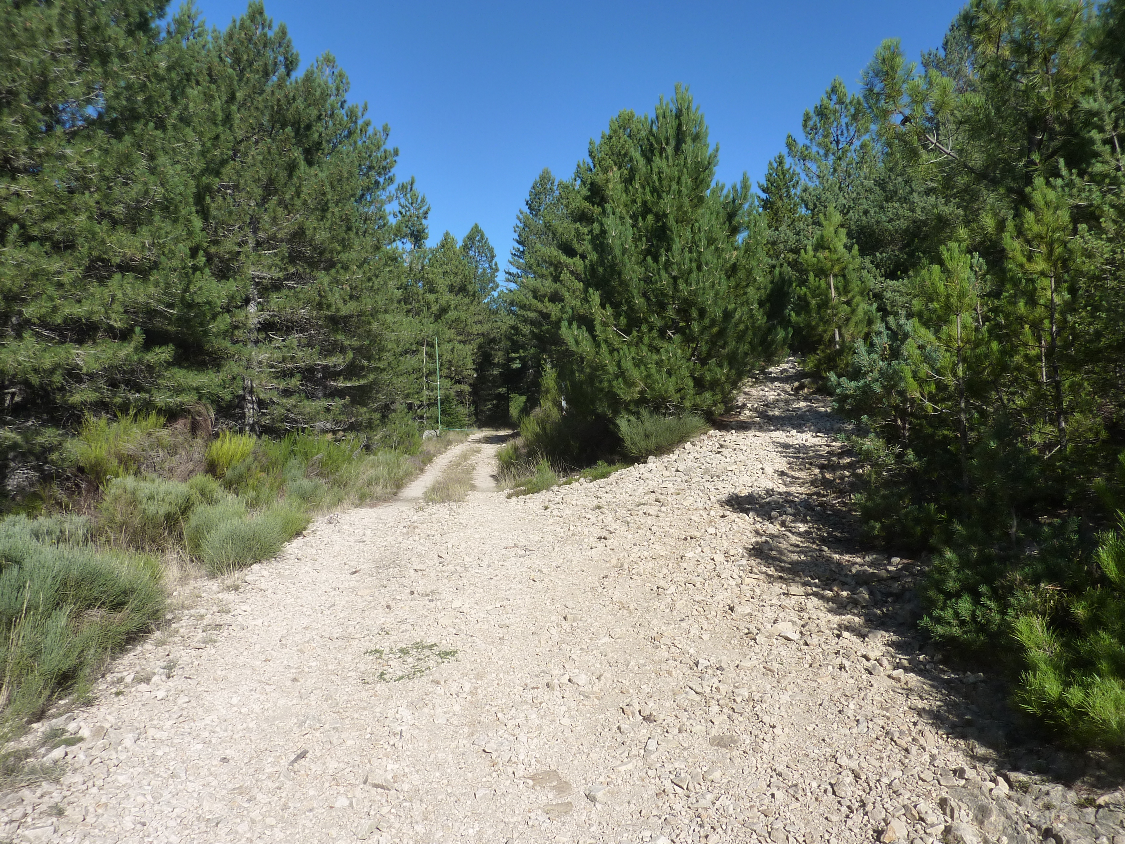 Col de Lougarès (938 m) : suivre la piste partant légèrement sur la gauche direction Colognac, balisé en rouge et blanc