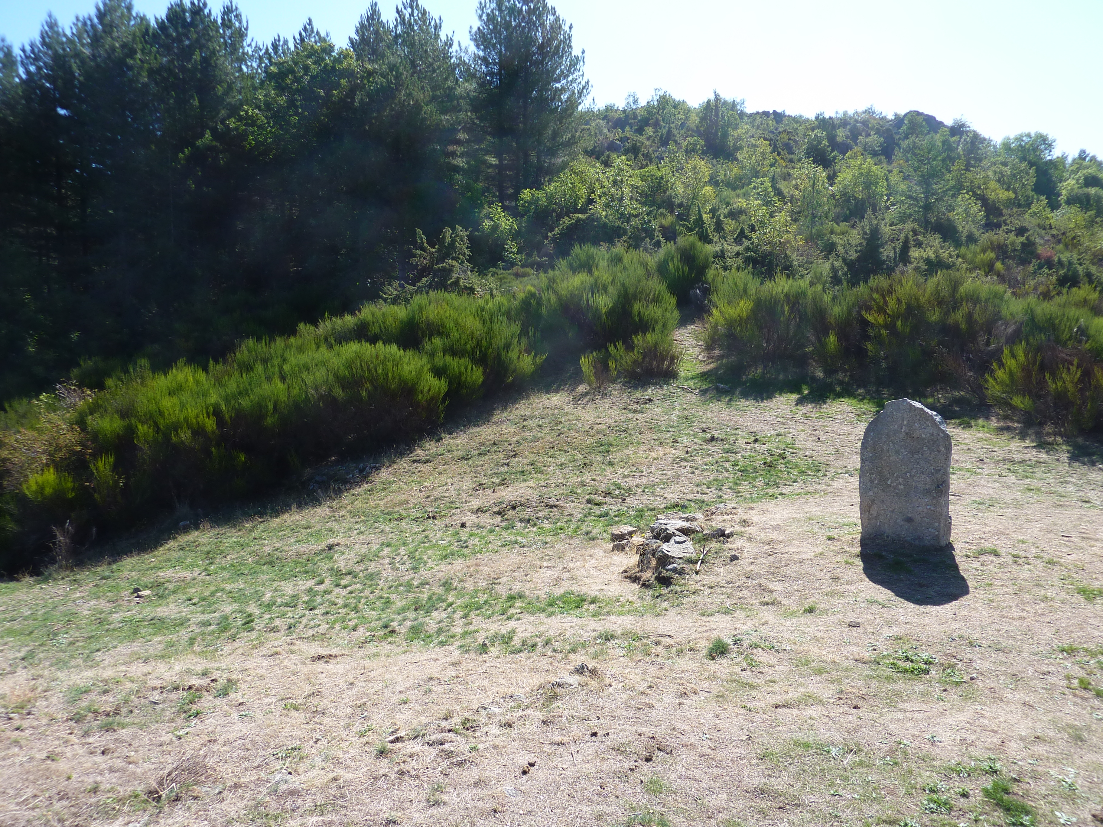 Col des Fosses (899 m) : suivre le chemin descendant sur la gauche direction Colognac, balisé en rouge et blanc