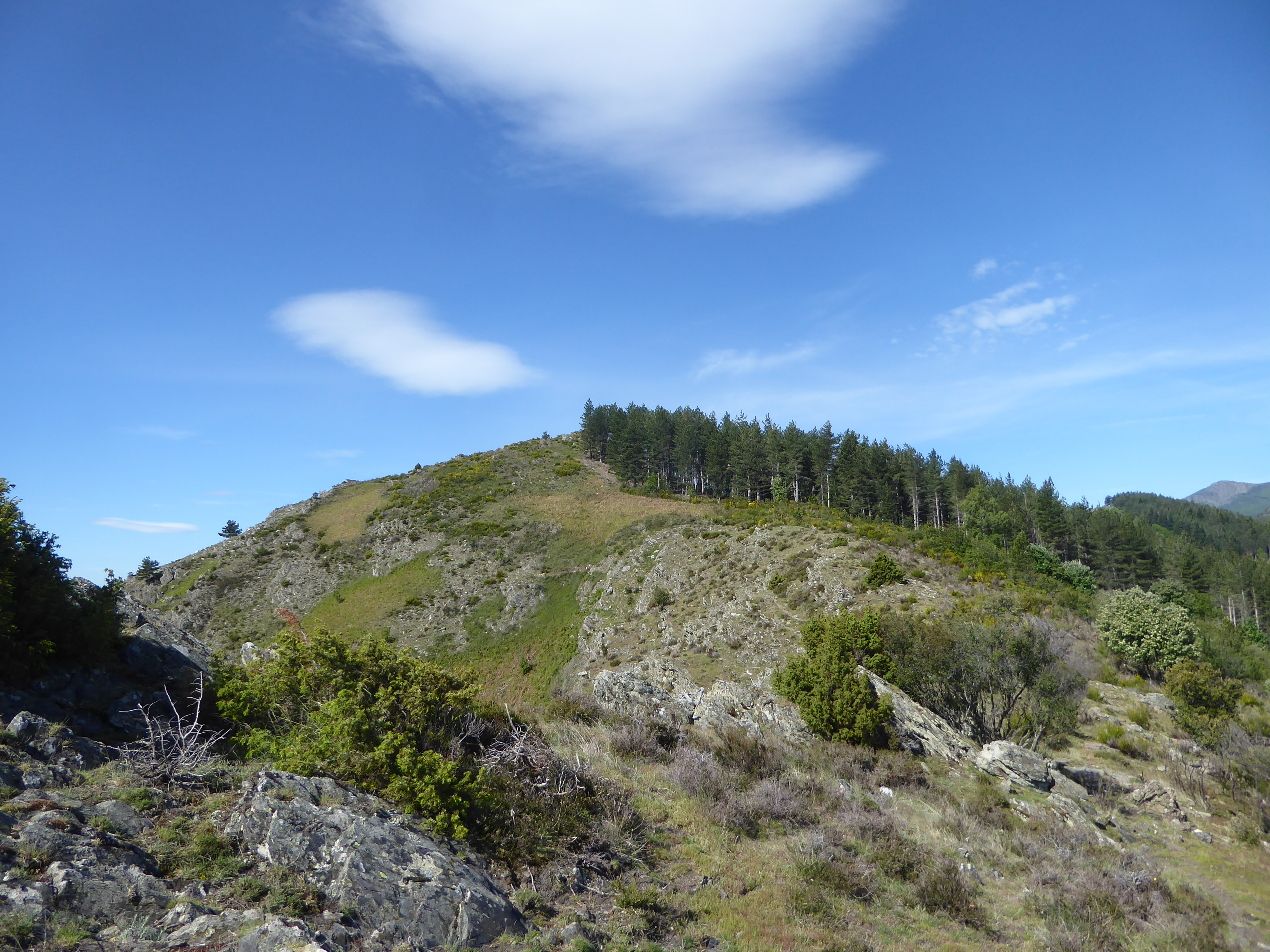On aperçoit le sommet du Mouisset : bien suivre le chemin longeant au plus près le bosquet de pins à l'approche du sommet direction le Mouisset