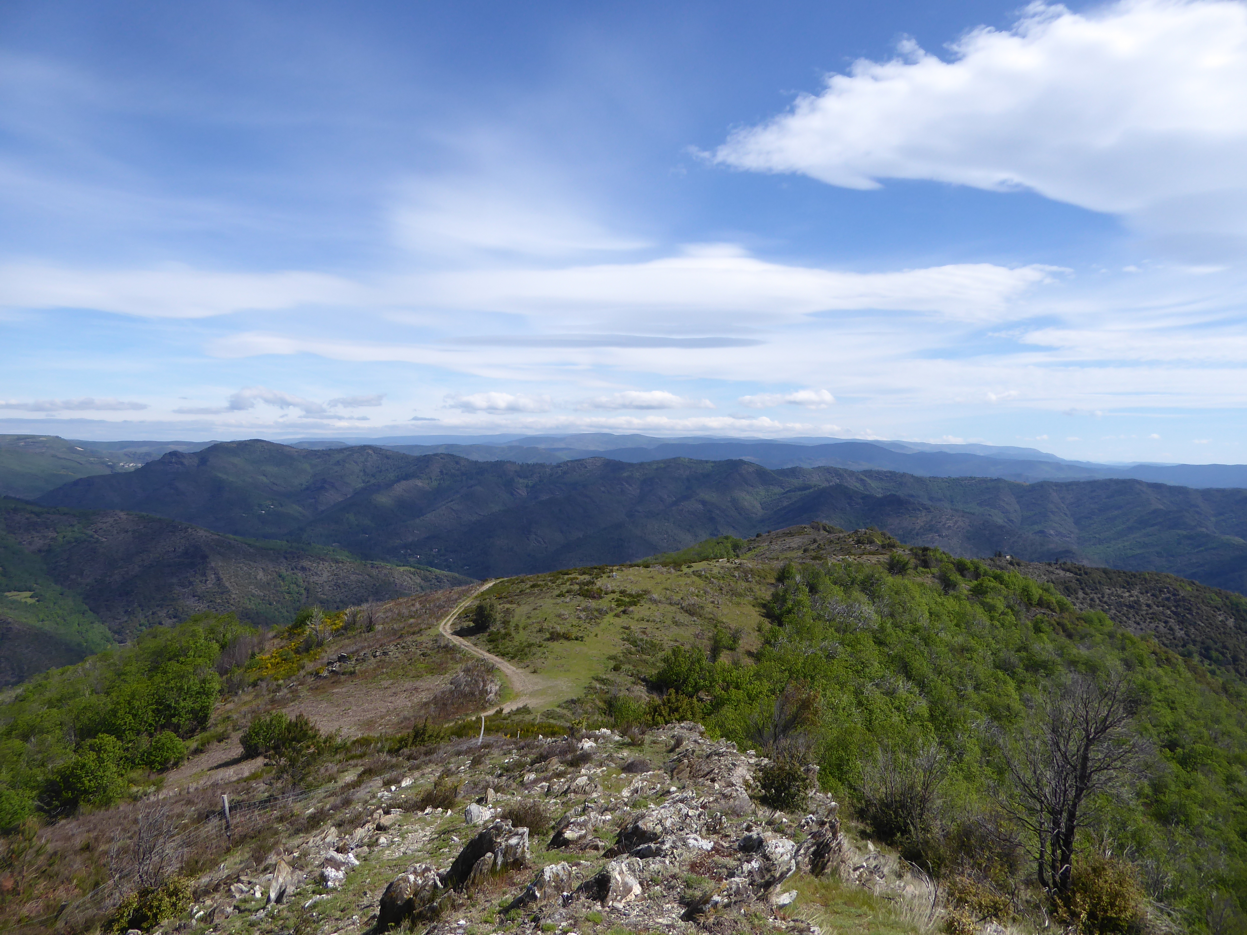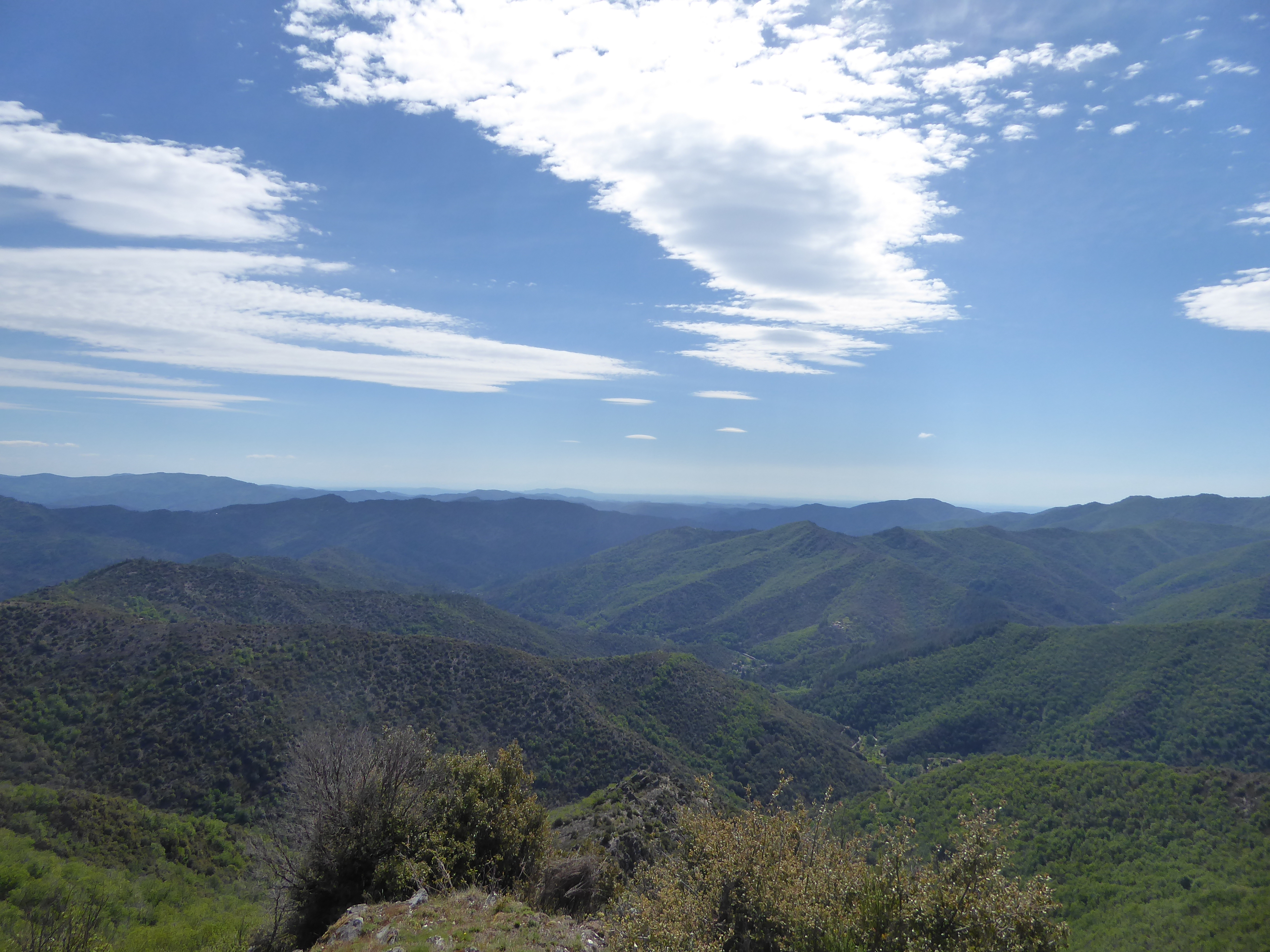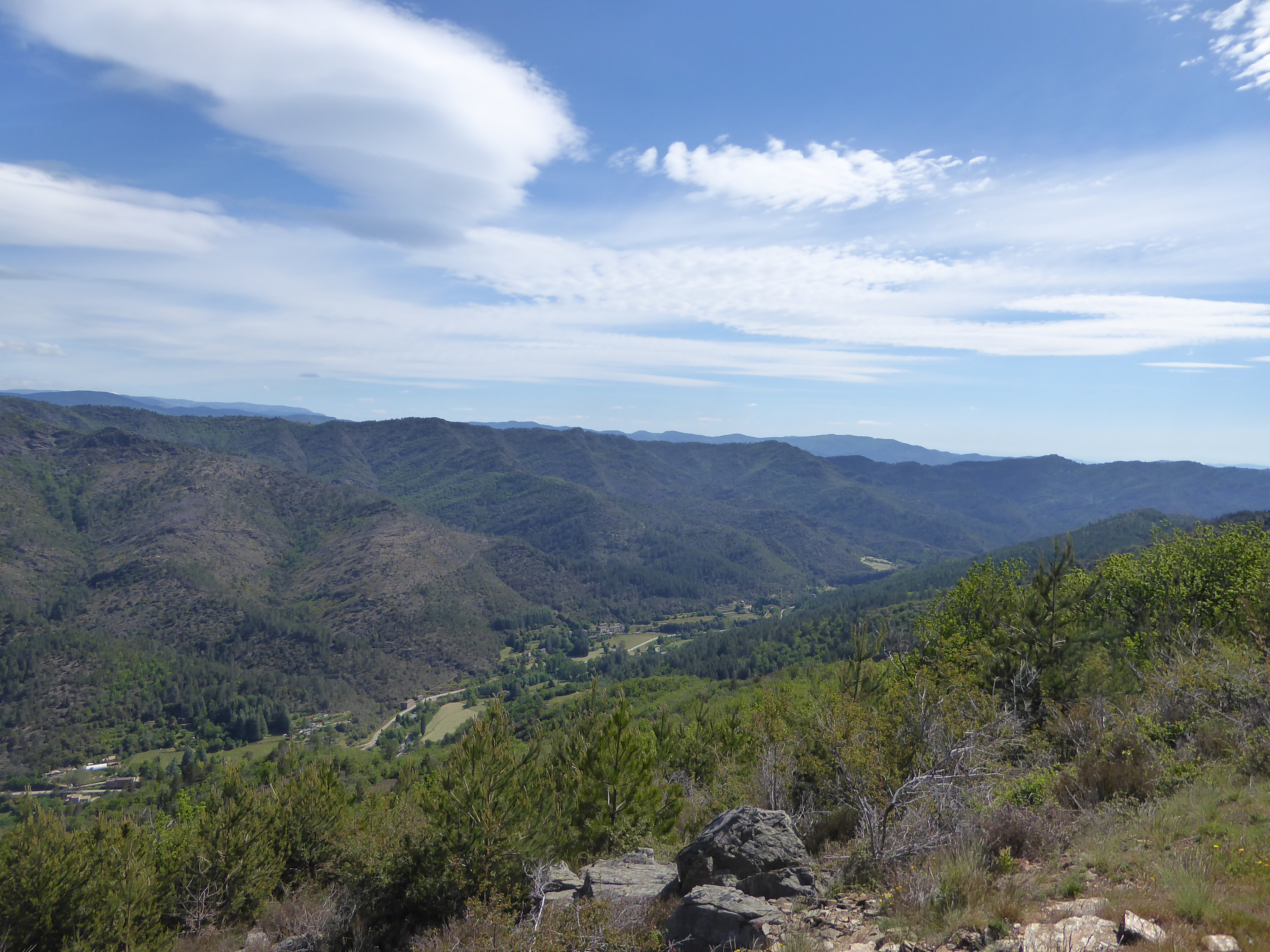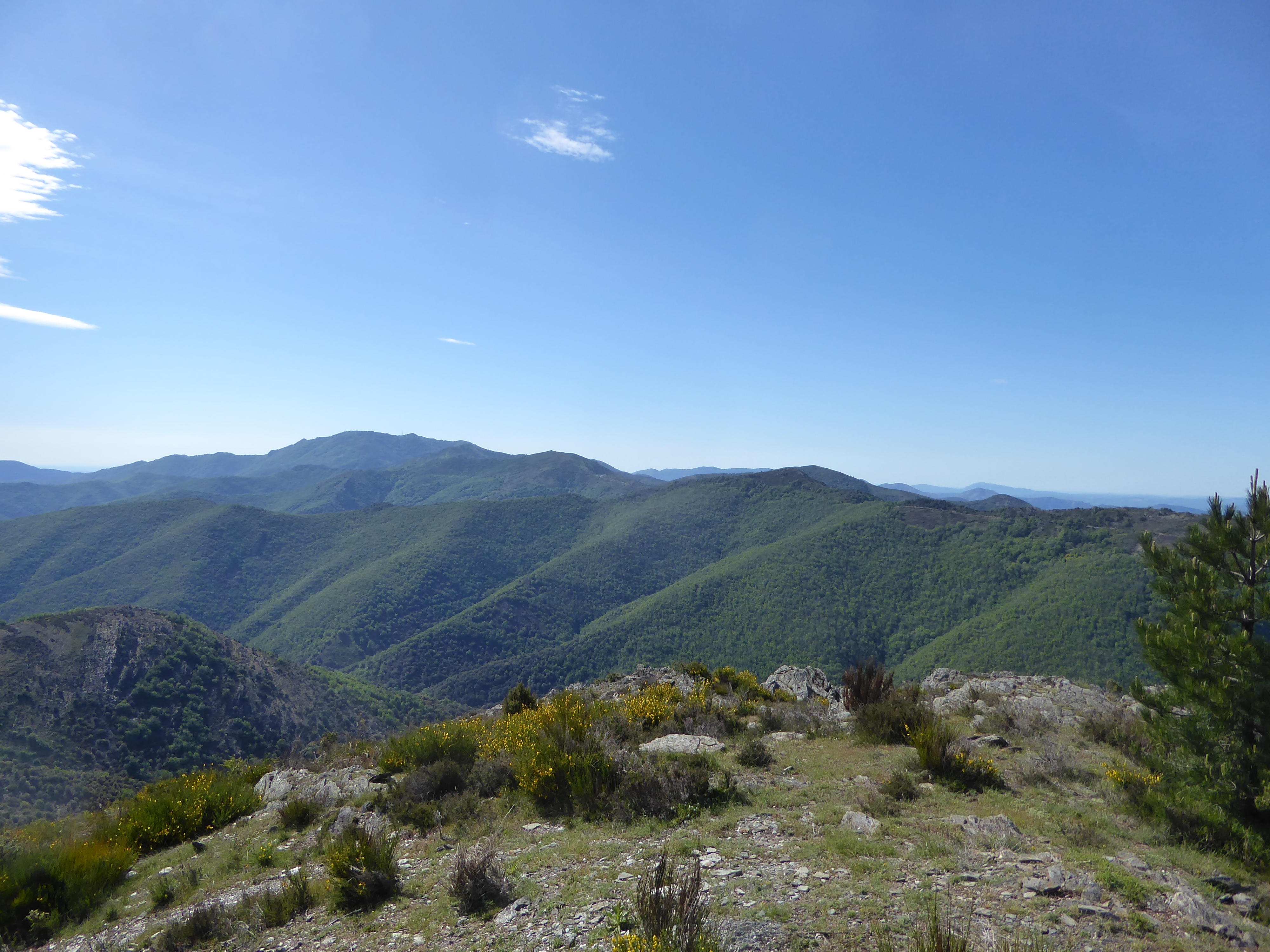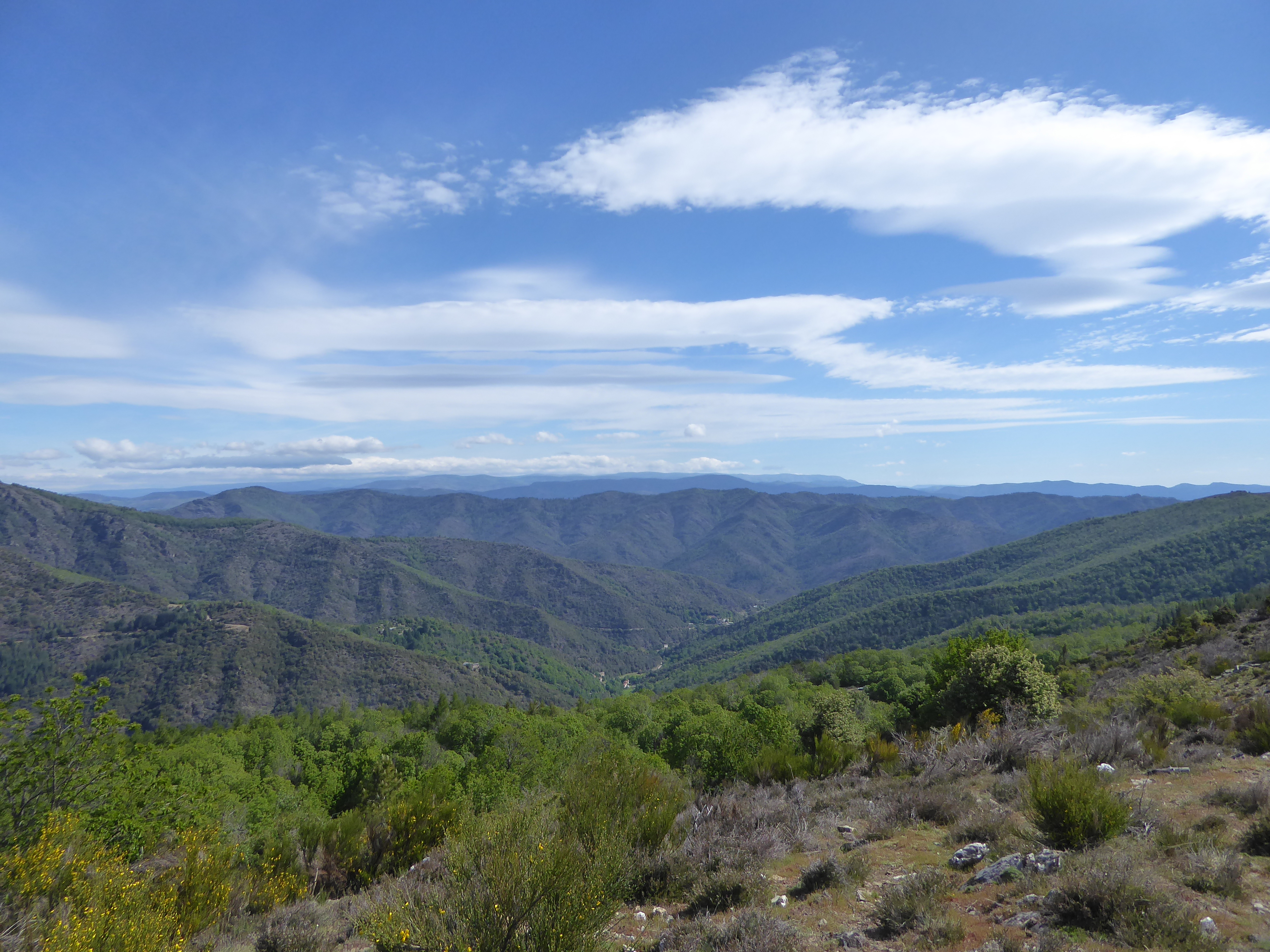 Arrivée au sommet du Mouisset (954 m) : panorama assez étendu notamment sur les Cévennes gardoises et le Piémont Cévenol ... masqué vers la Lozère à cause de la végétation !