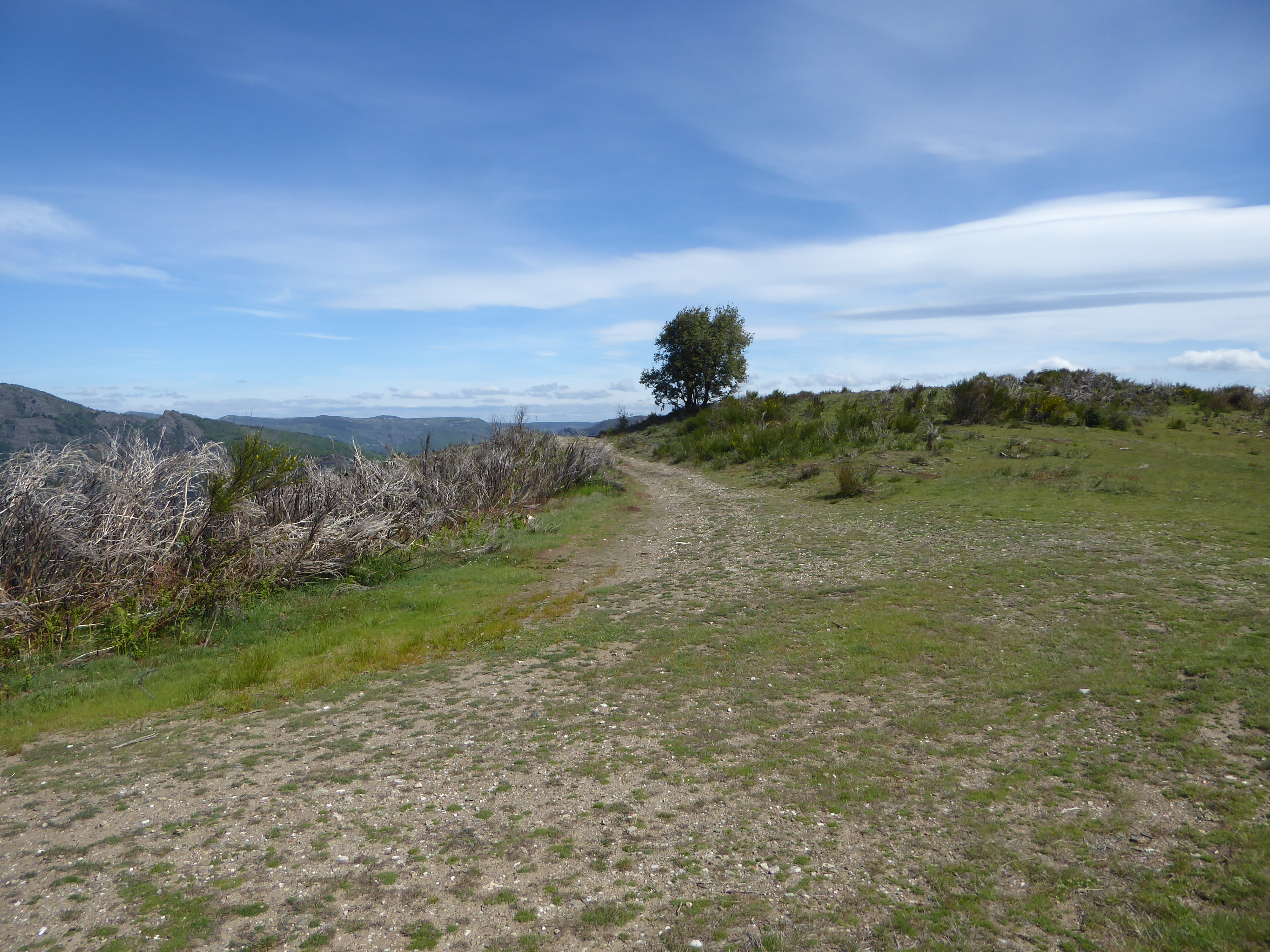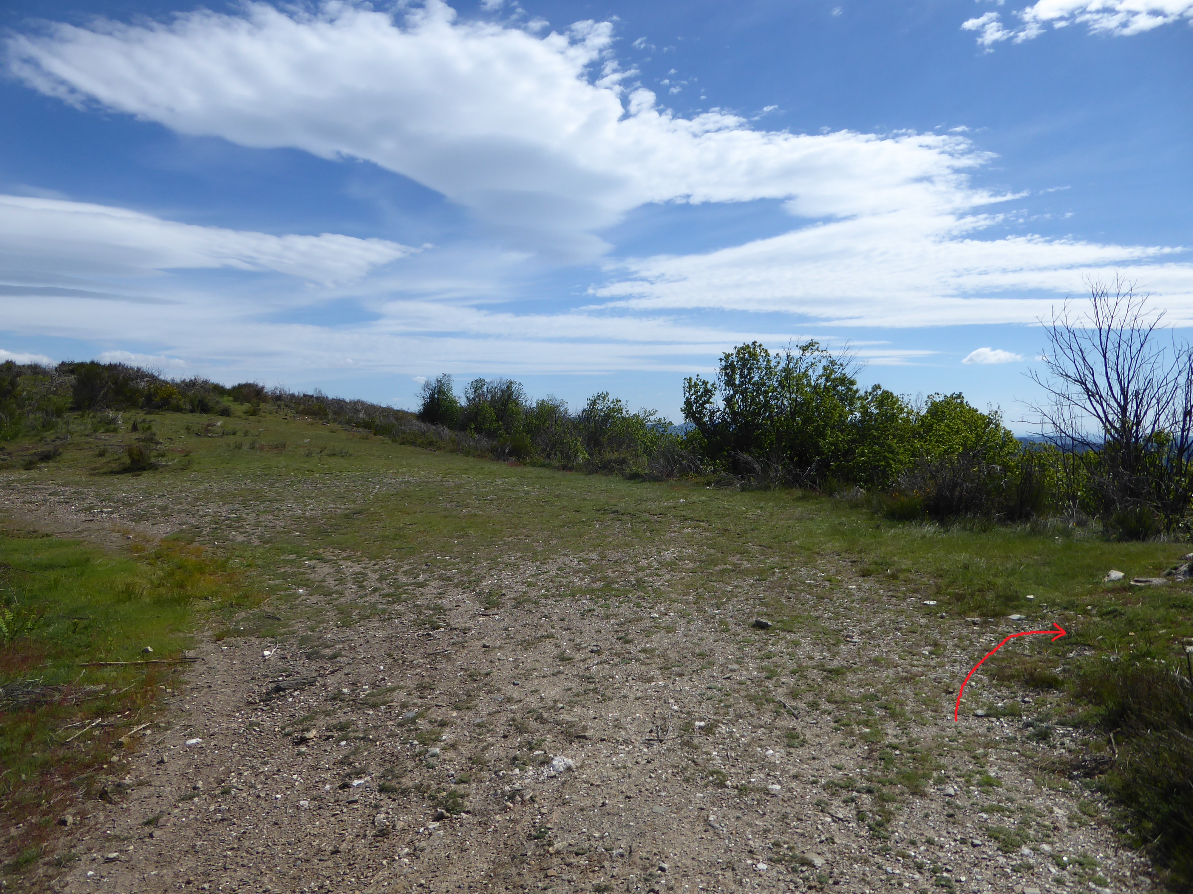 A ce croisement cairné (30 mètres après le Col de l'Espinas), suivre le chemin dérobé montant sur la gauche puis longeant le fil de crête direction le Mouisset, aucun balisage dorénavant