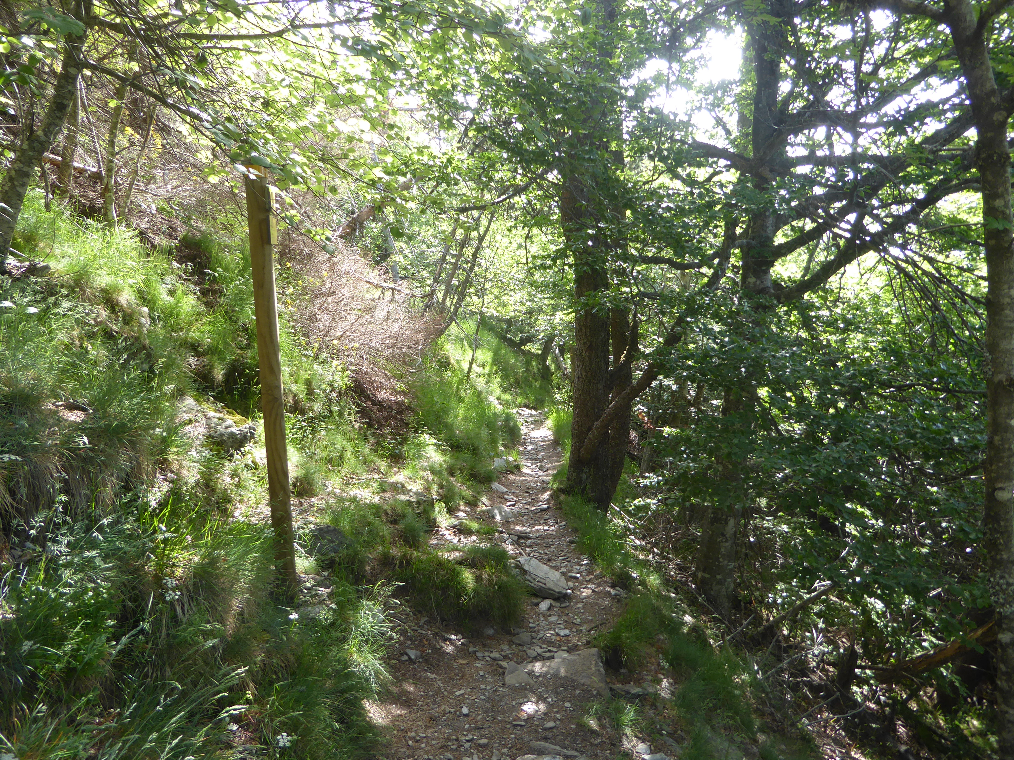 L'Apollon (1429 m) : suivre le chemin descendant légèrement sur la gauche direction Valleraugue, balisé en jaune