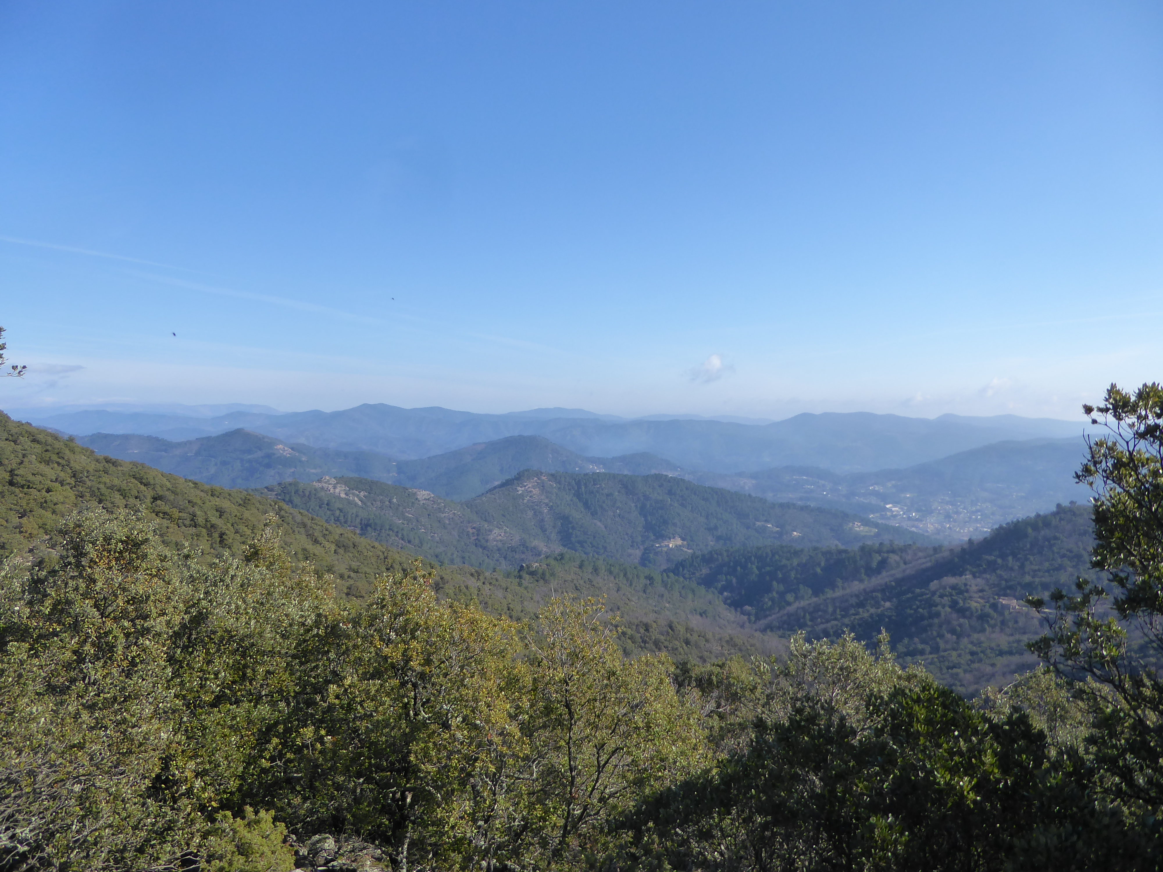 Arrivée au sommet du Mont Brion (815 m) : beau panorama sur les Cévennes gardoises, héraultaises et lozériennes ... vue quelque peu masquée par la bassse végétation