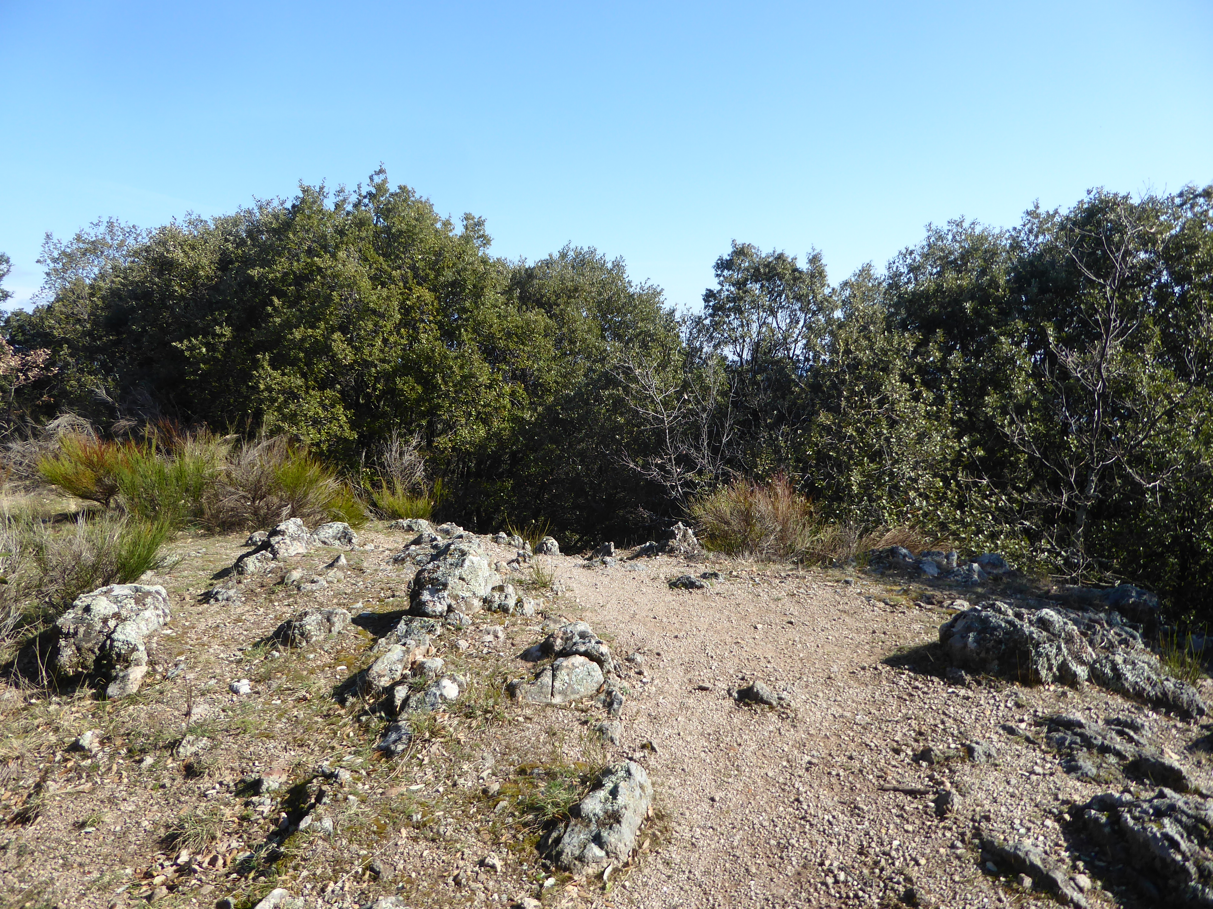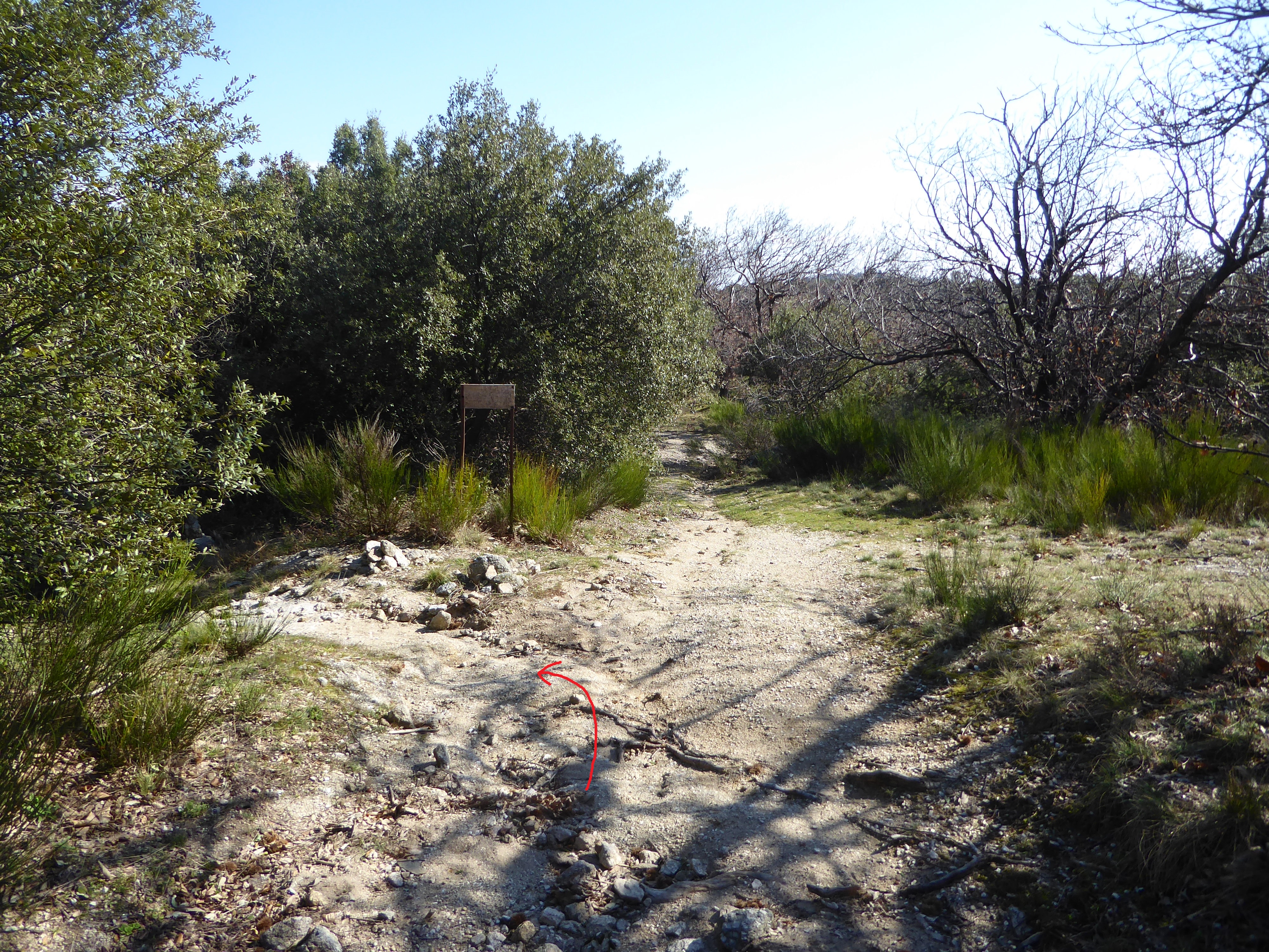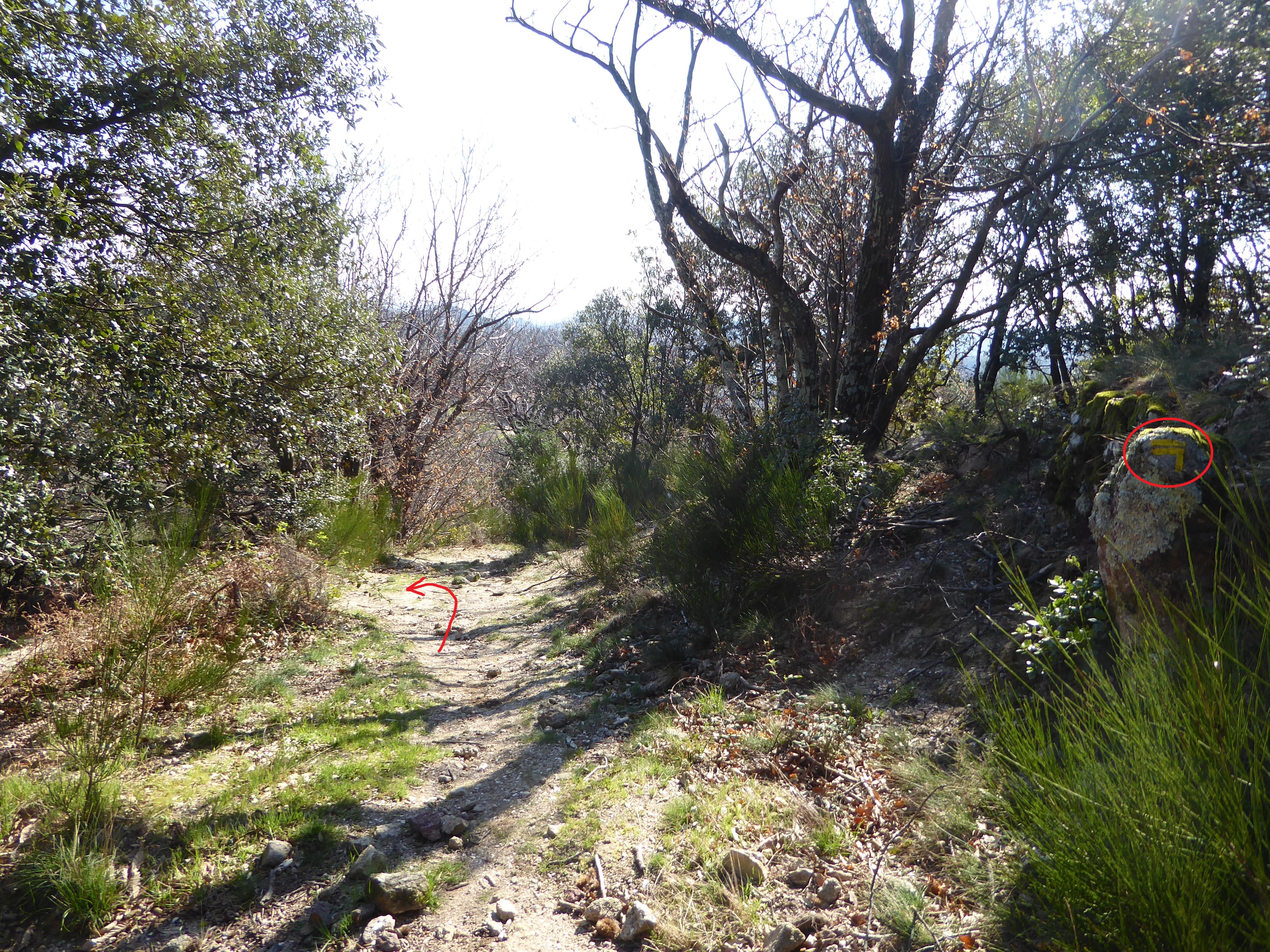 La Malaygue (567 m) : suivre le chemin partant sur la droite direction Saint-Jean-du-Gard, balisé en rouge et blanc, et jaune dorénavant