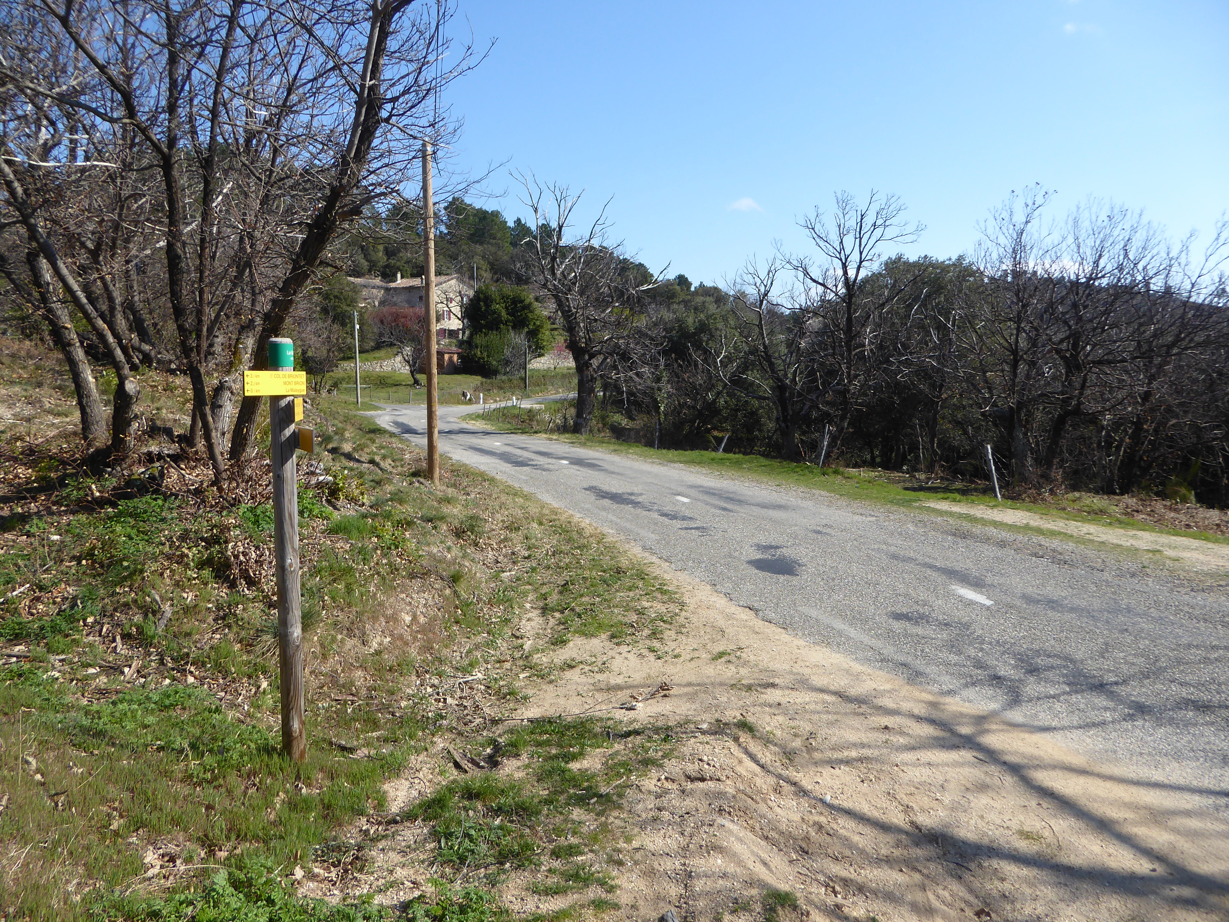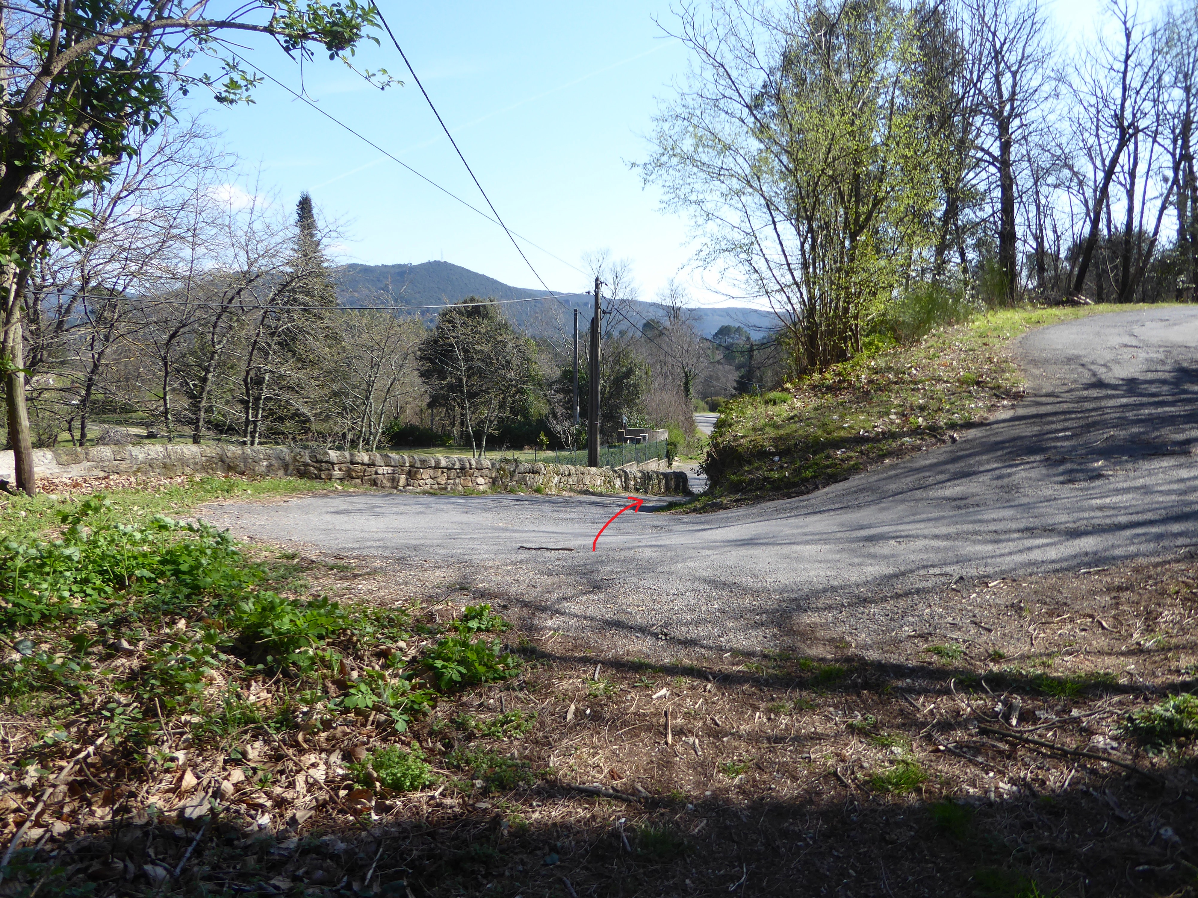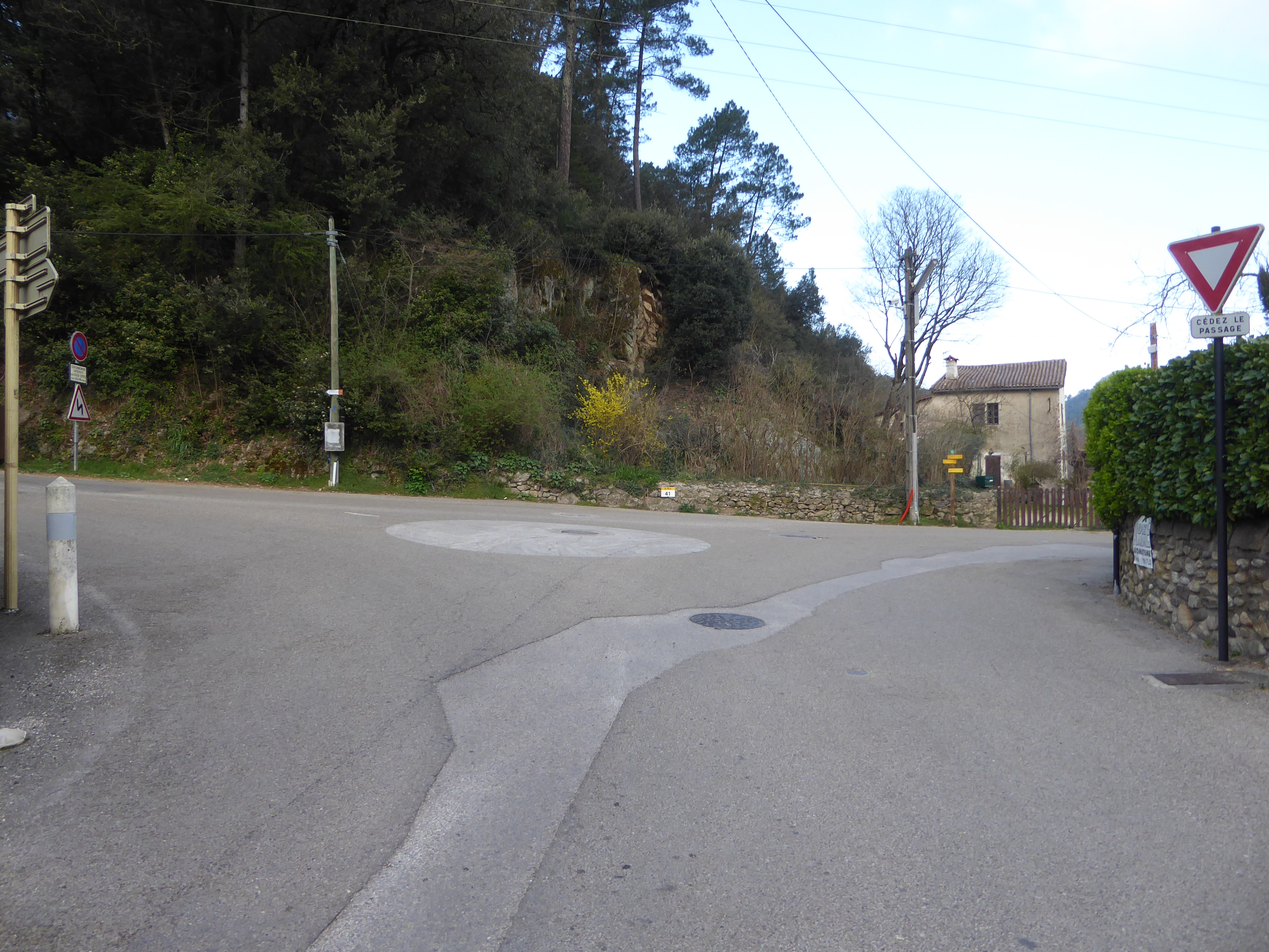 La Graussille (513 m) : suivre la route partant tout droit direction Saint-Jean-du-Gard, balisé en rouge et blanc, et jaune