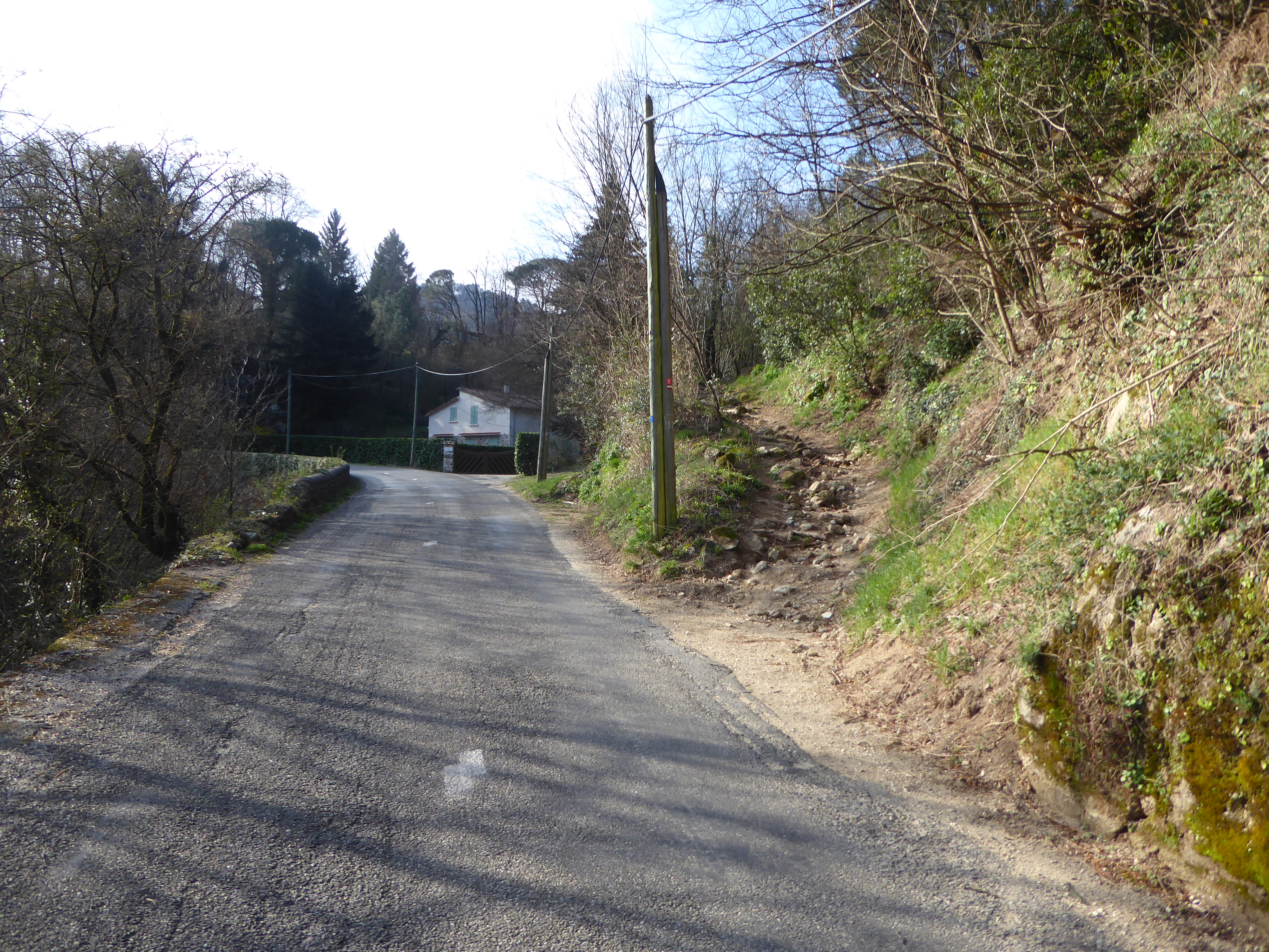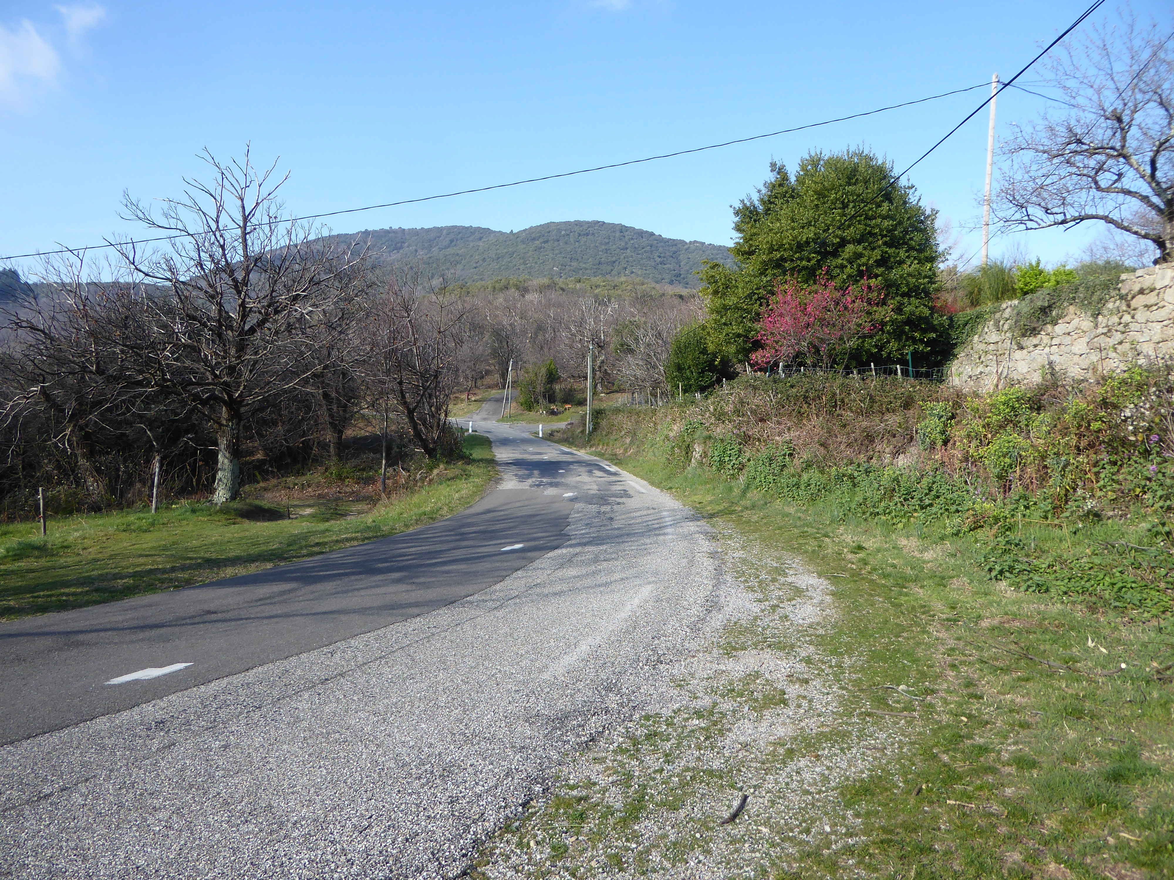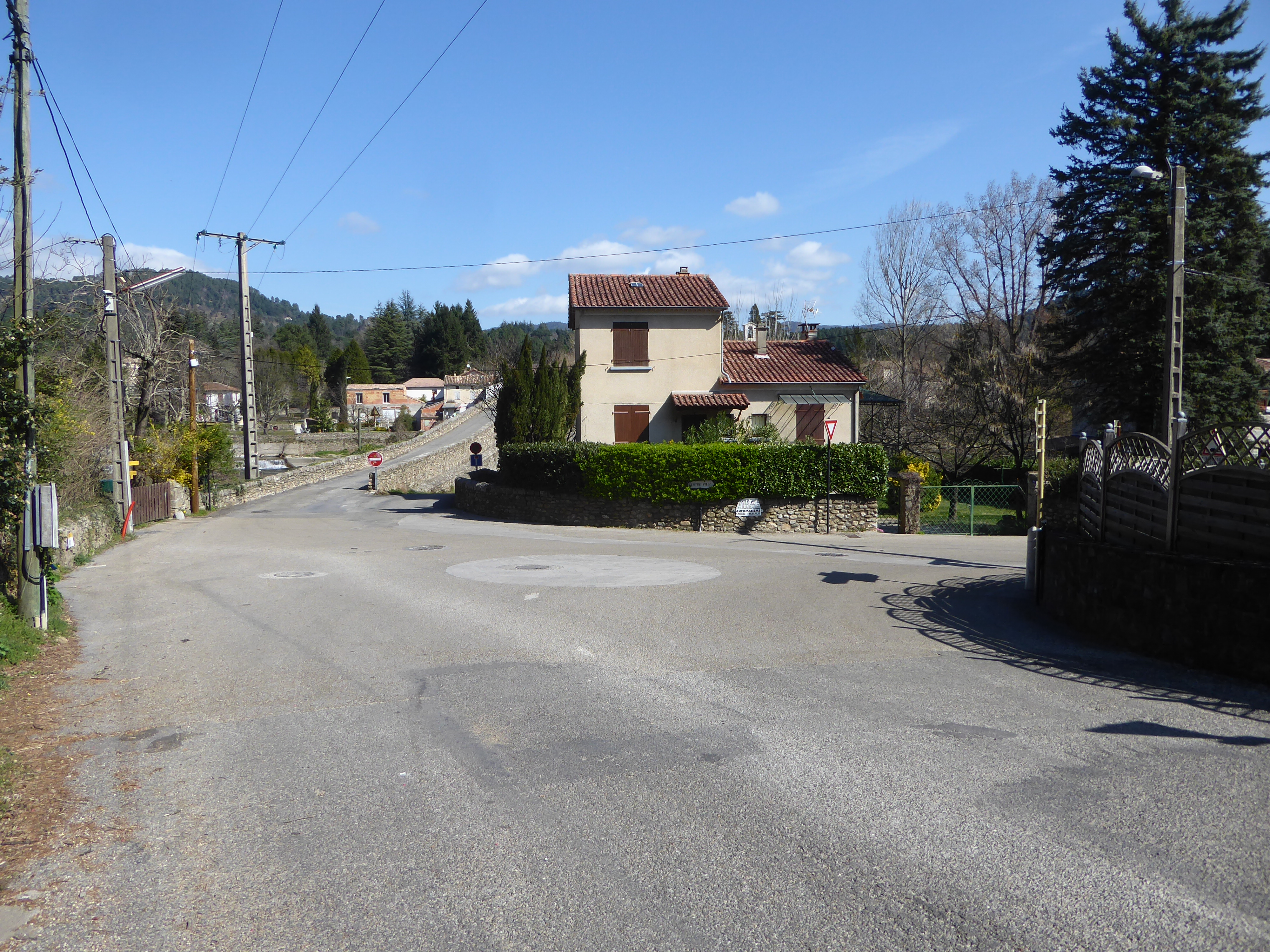 La Graussille (513 m) : suivre la route partant tout droit direction Saint-Jean-du-Gard, balisé en rouge et blanc, et jaune
