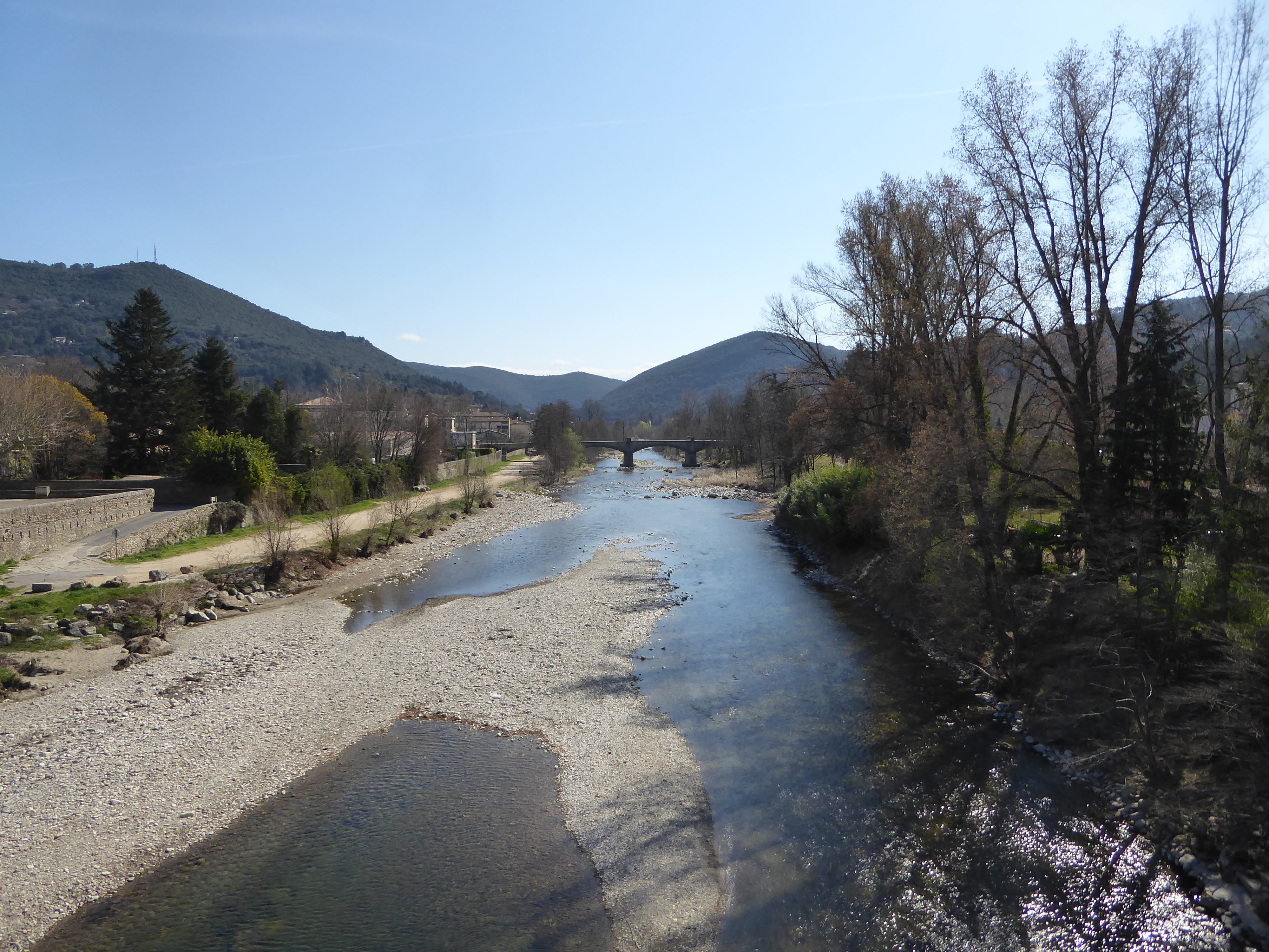 Pont Vieux (189 m) : suivre la route partant sur la droite direction Saint-Jean-du-Gard, balisé en rouge et blanc, et jaune