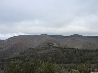 Zoom sur le Serre de la Toureille et sa vigie, et sur le Serre de Navès à droite