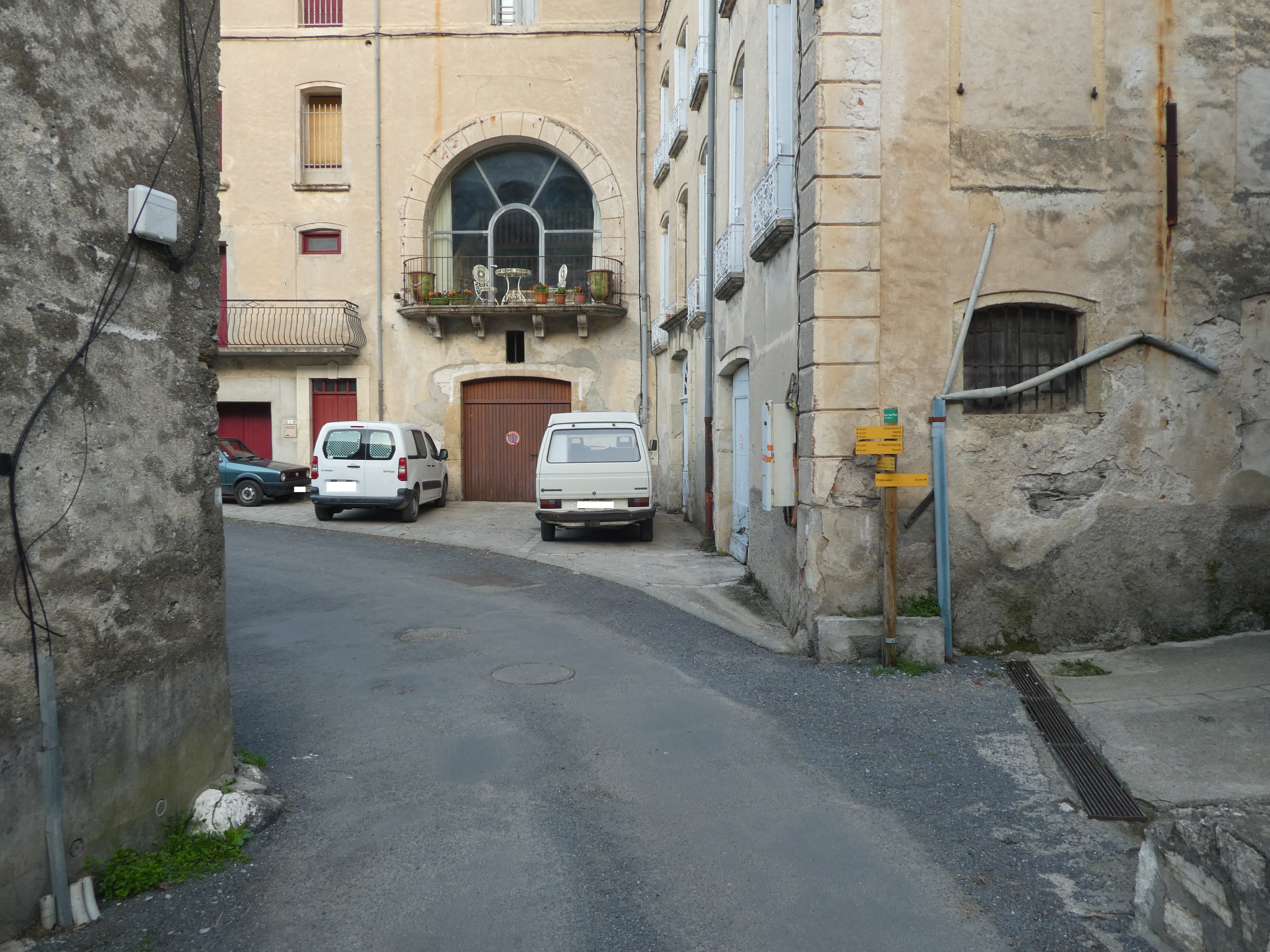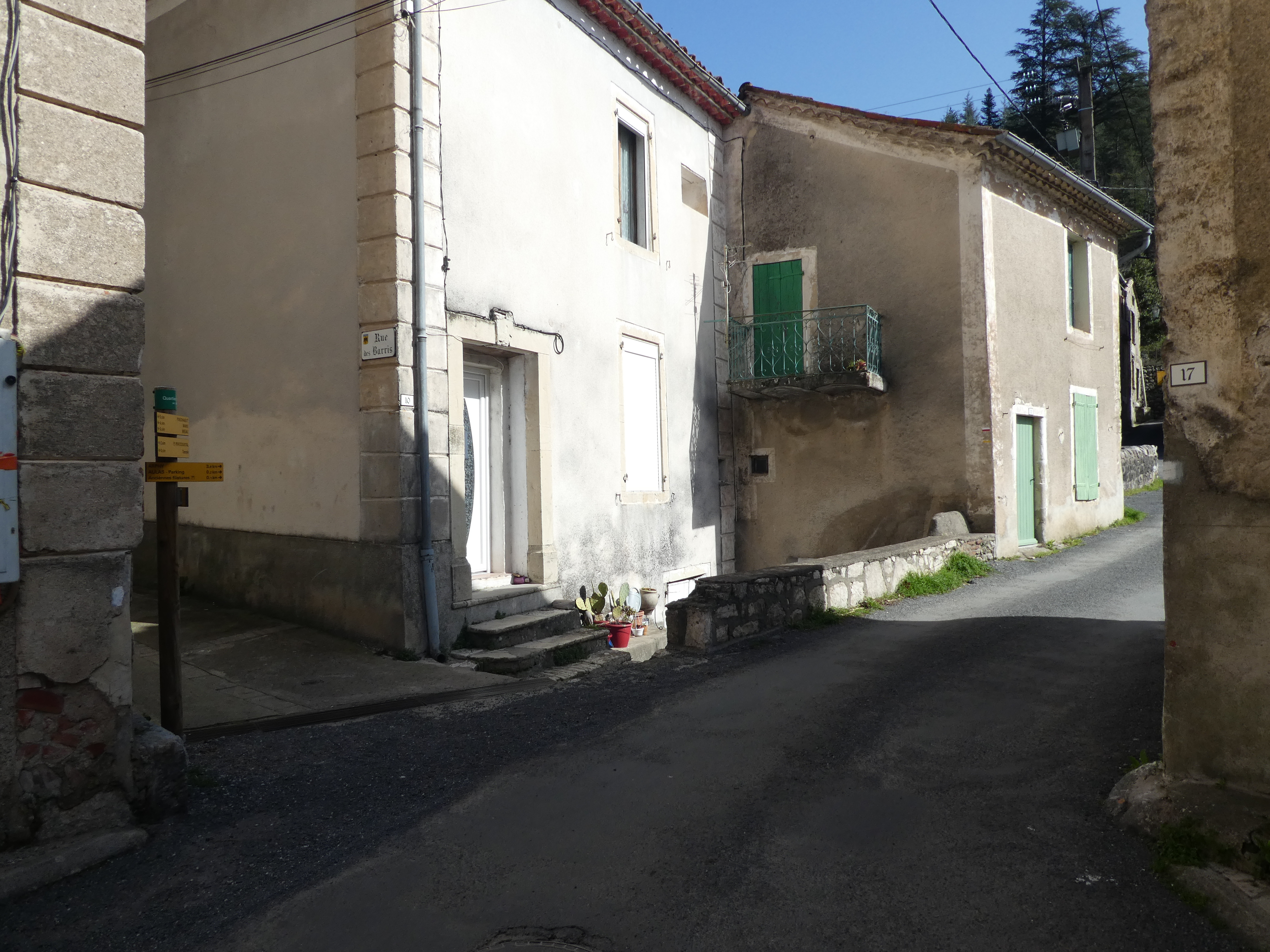Salagosse (750 m) : suivre la route montant sur la droite direction Puechagut, balisé uniquement en jaune dorénavant