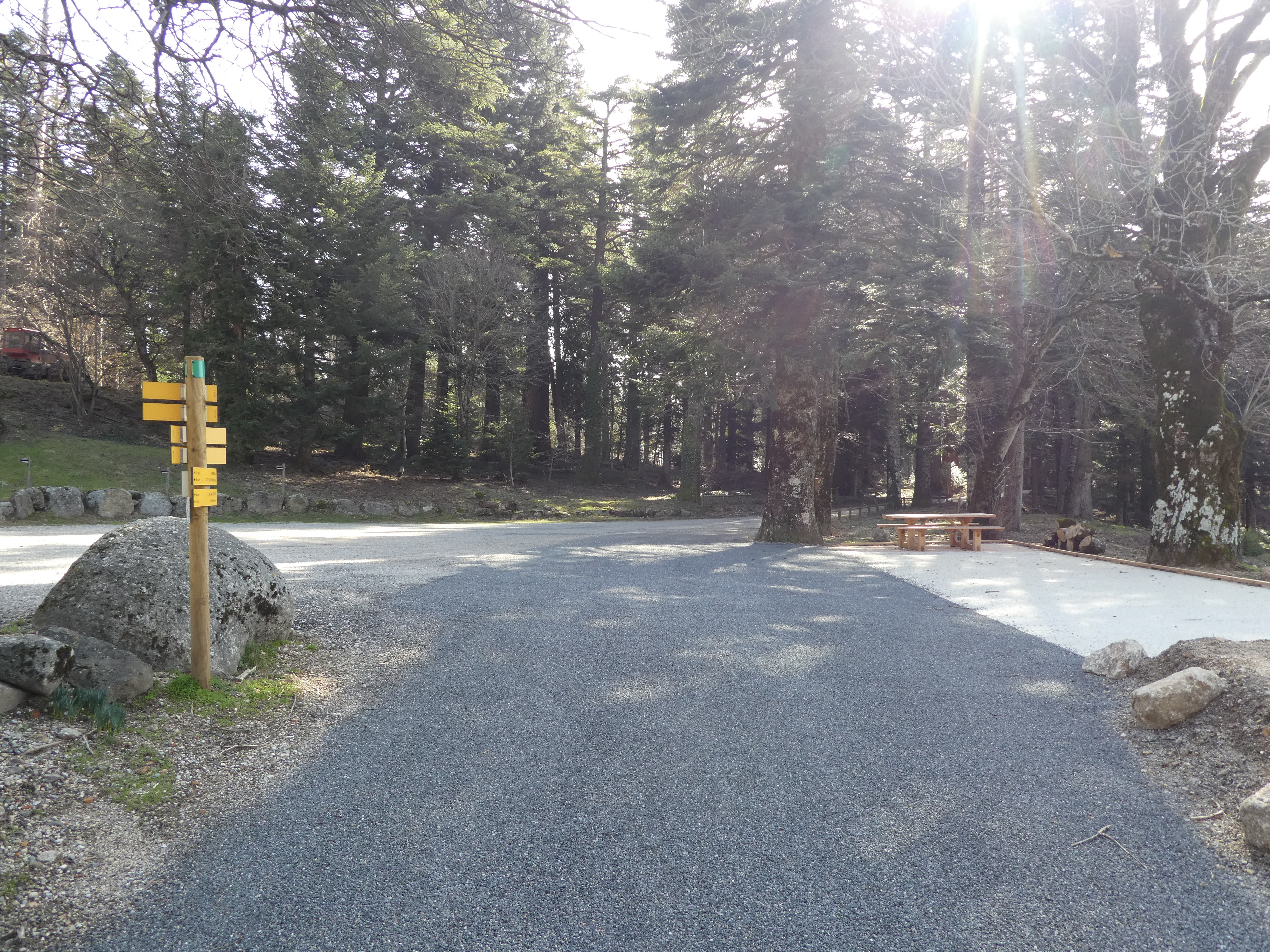 Col de la Sablière (1043 m) : suivre le GR partant tout droit direction l'Espérou, balisé en rouge et blanc, et en jaune
