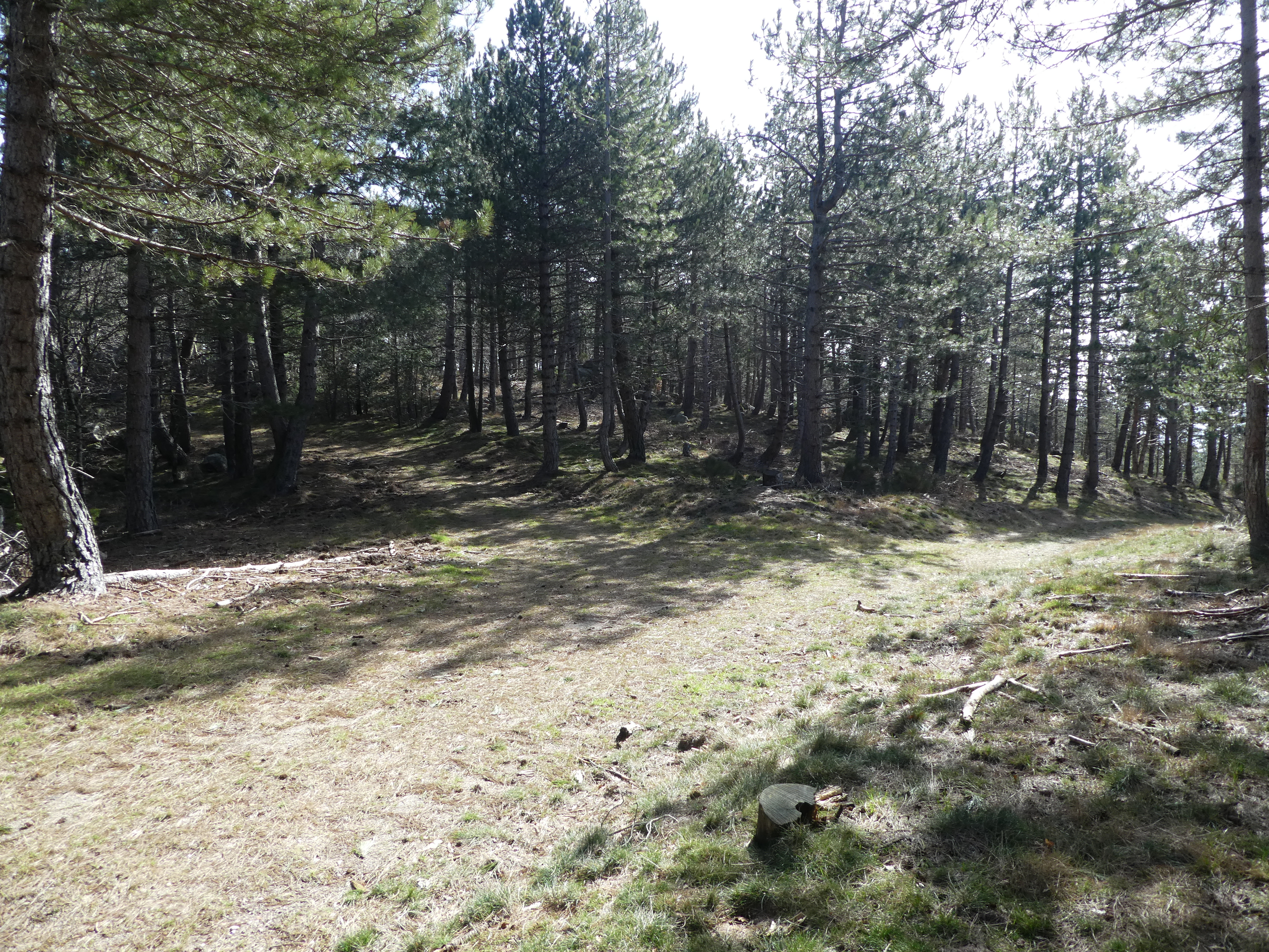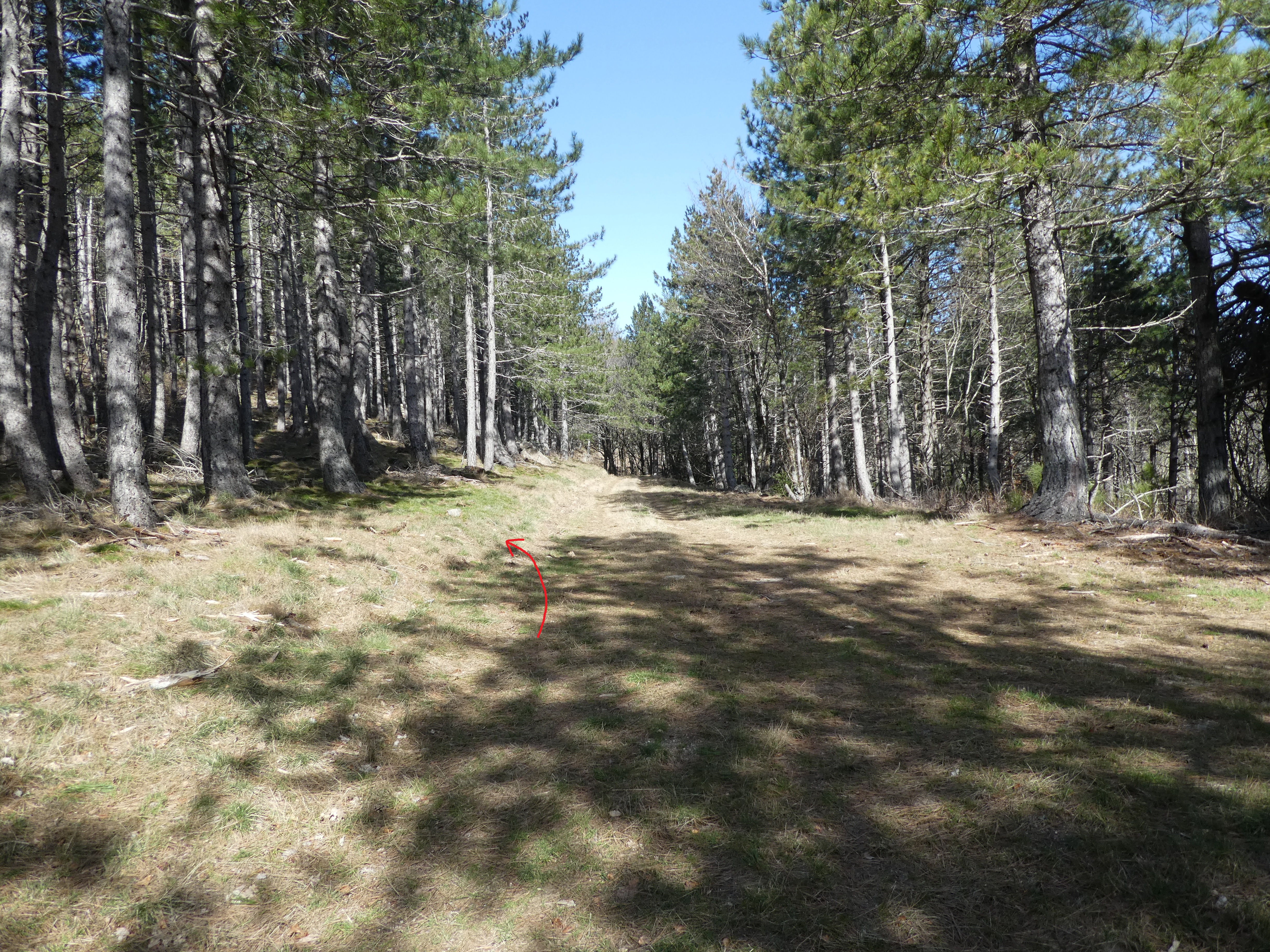A ce croisement (100 mètres après le précédent), monter à vue sur la gauche (plein Ouest) pour rejoindre le sommet de la crête (présence de genêts en son sommet) direction Rocher de Bonnetier