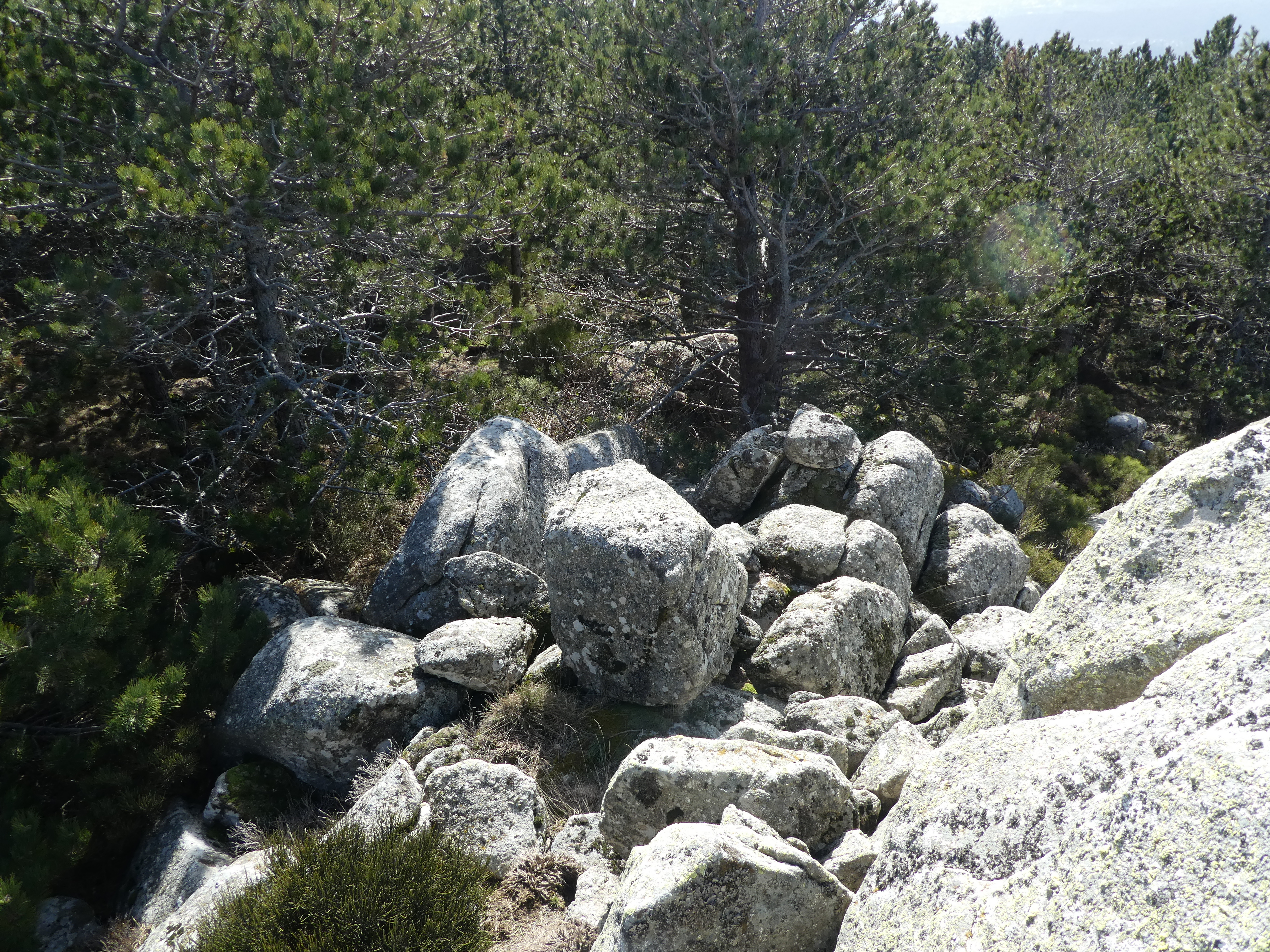 Dès que les genêts apparaissent au sommet de la crête, rejoindre les amas de blocs de granit situés en face direction Rocher de Bonnetier