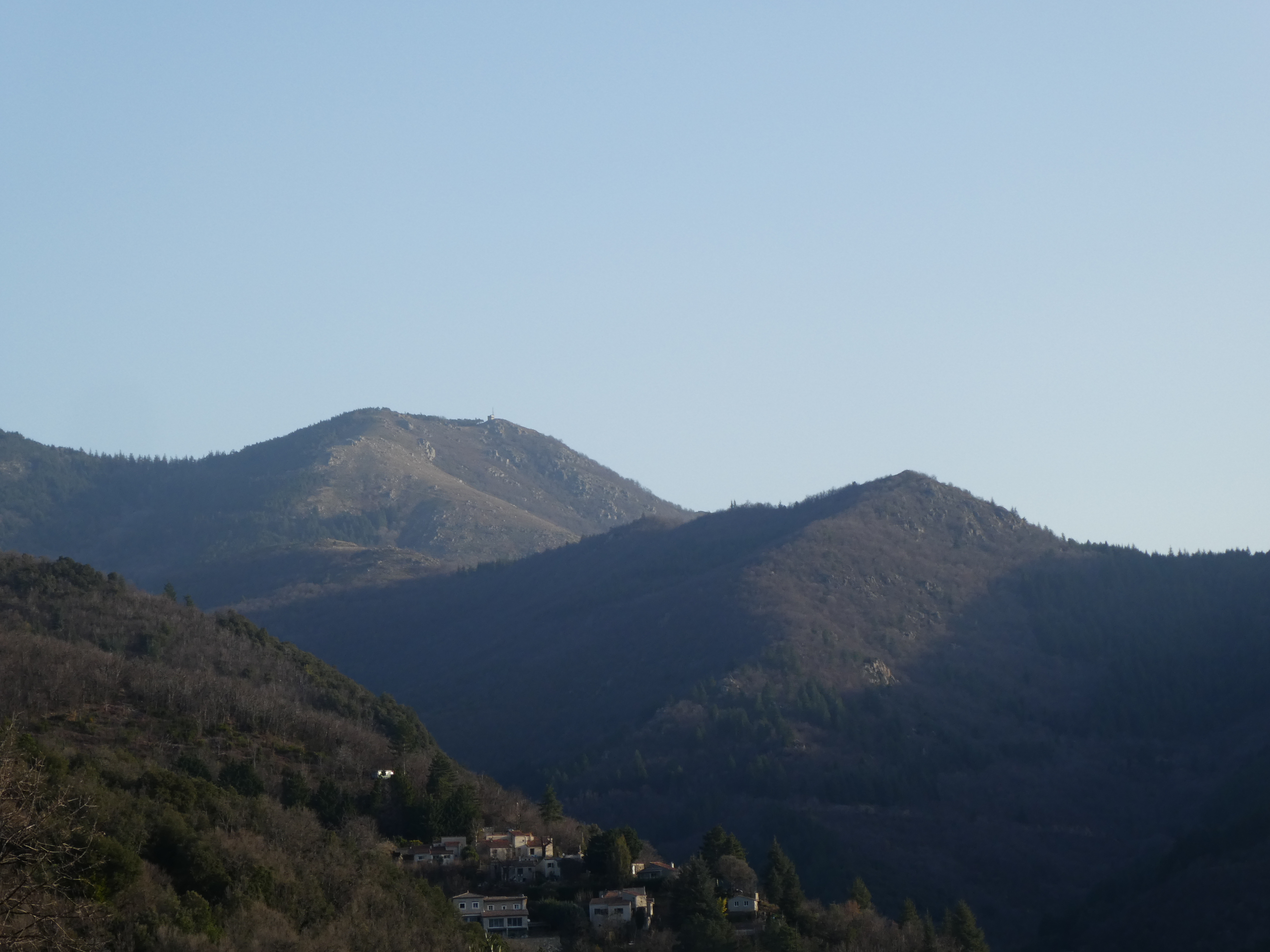 Zoom sur les sommets héraultais (Montagne de la Séranne et Mont Saint-Baudille) ainsi que sur le vaste Causse de Blandas dans une ambiance brumeuse depuis plusieurs jours !
