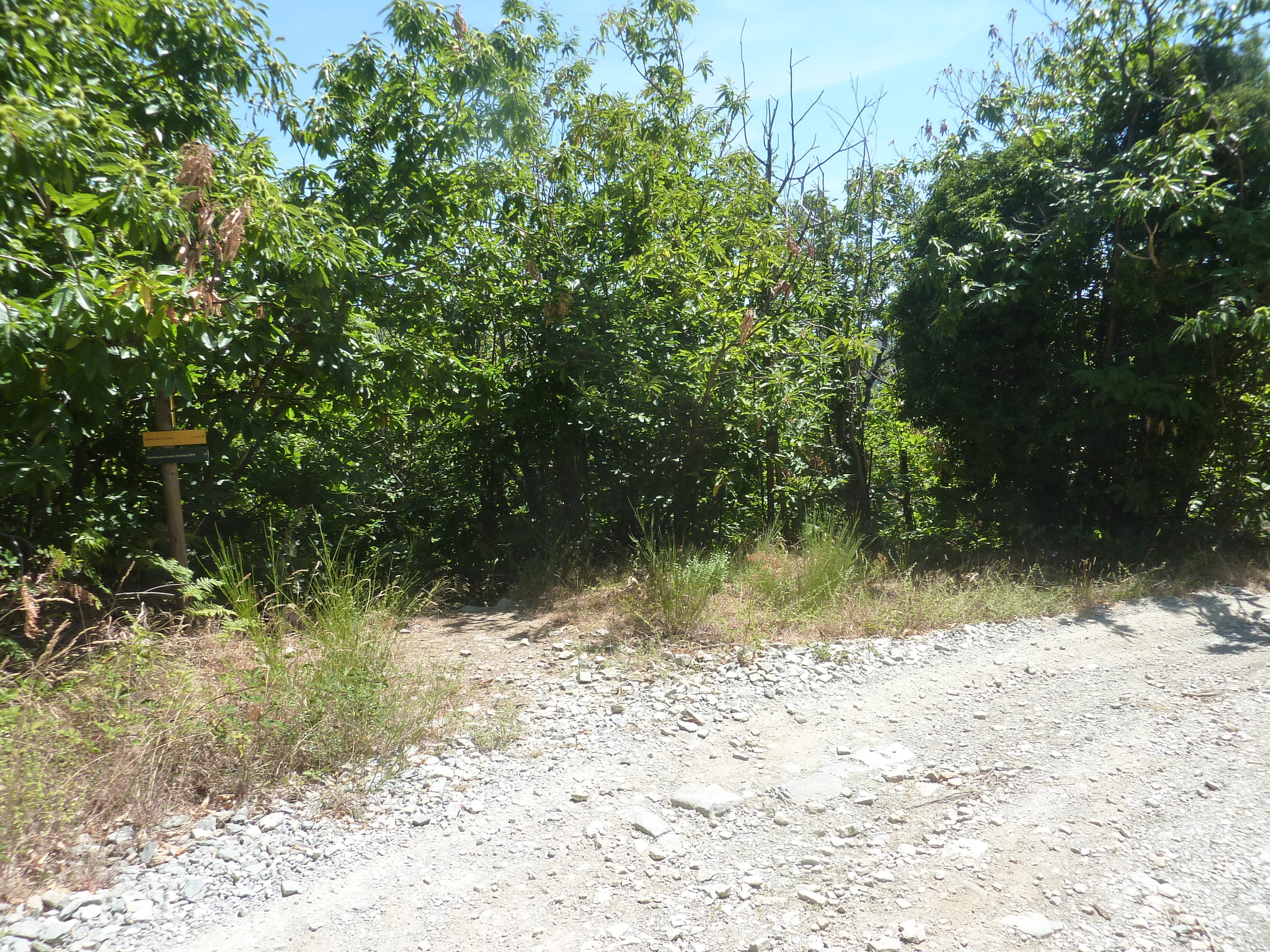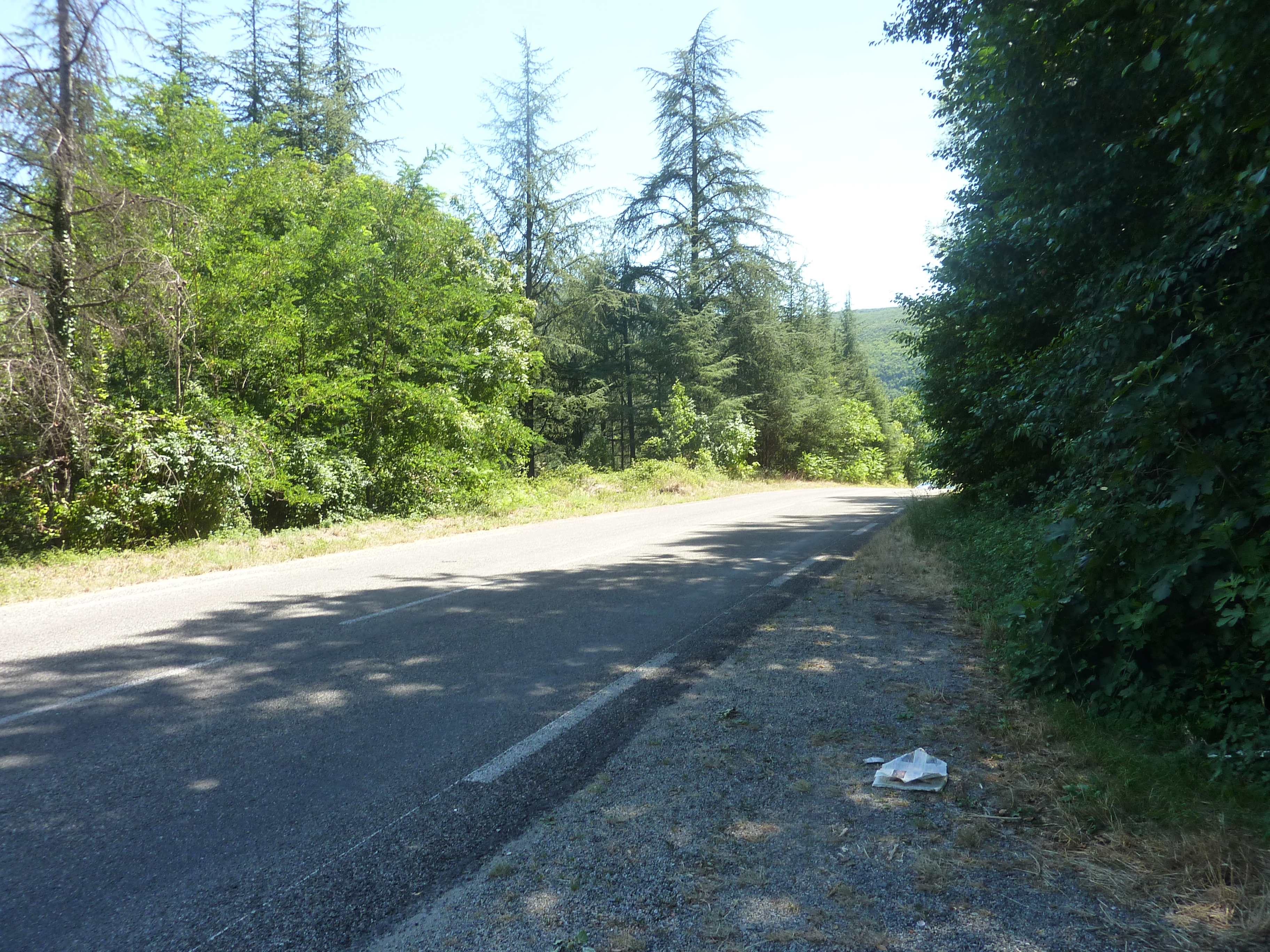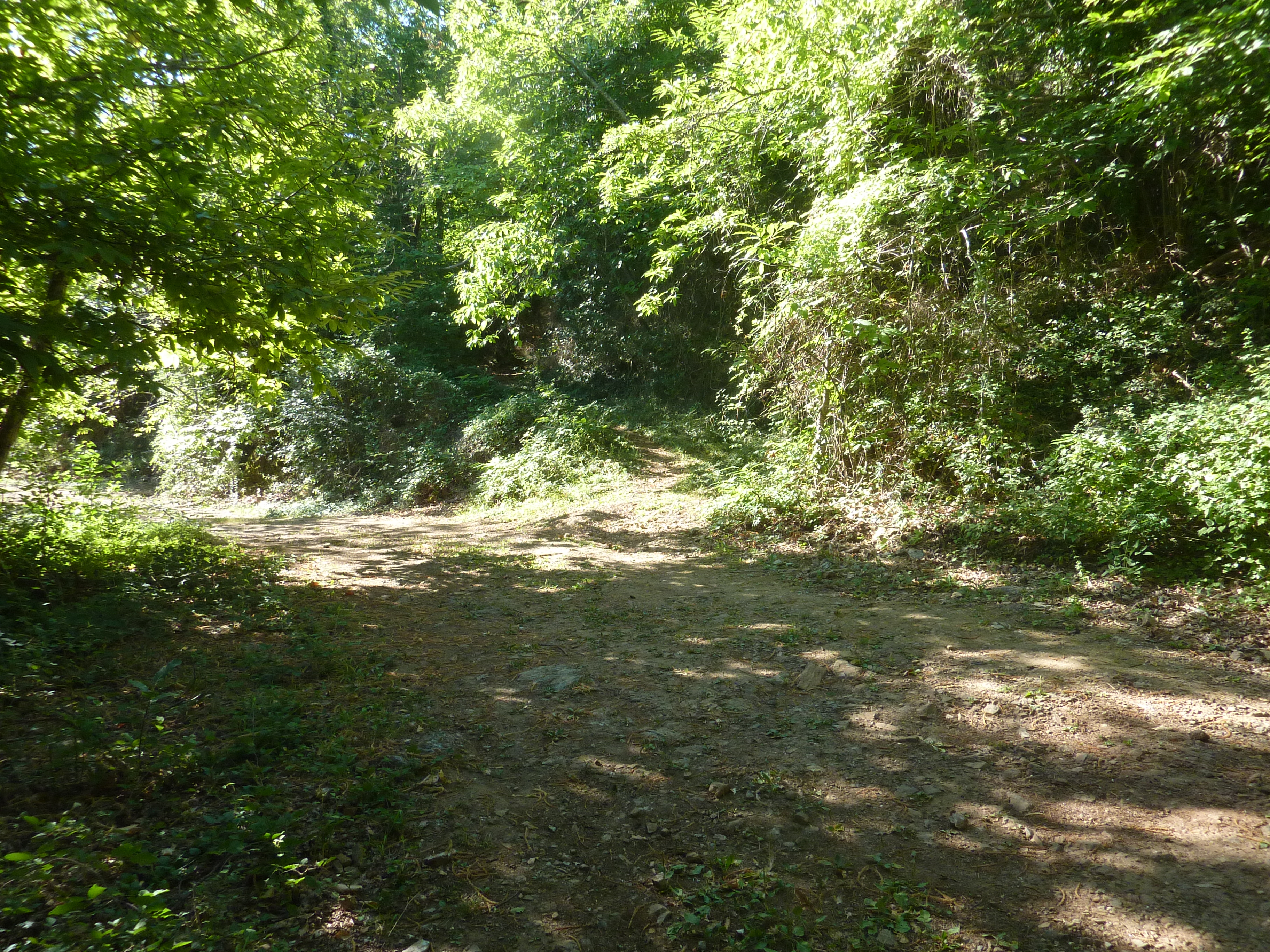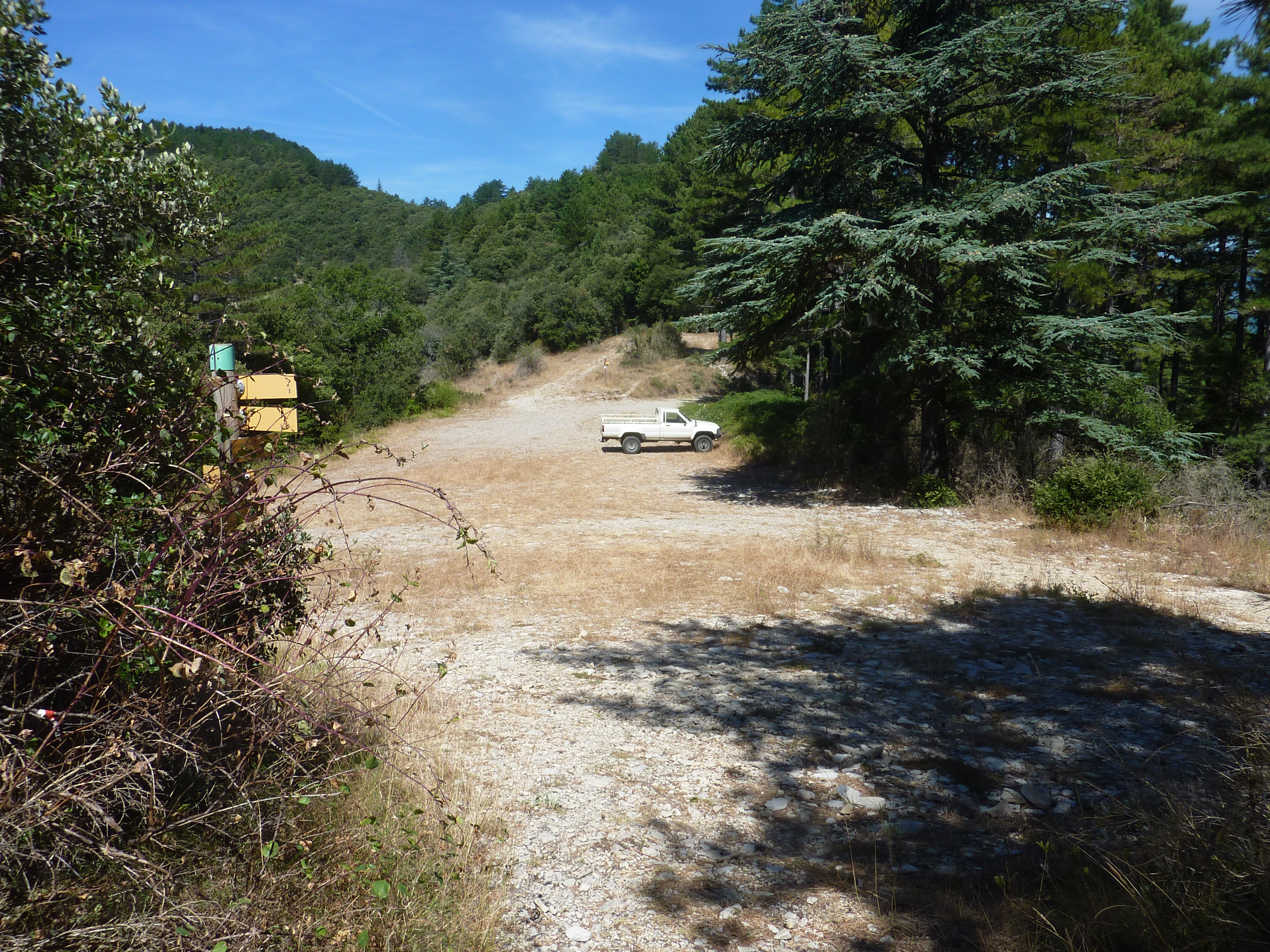 Plan d'Andiou (632 m) : suivre la piste partant tout droit direction Saint-Laurent-le-Minier, balisé en jaune (pour rappel, le chemin menant à la Ferme d'Anjeau et mentionné en pointillés roses sur la carte IGN n'est plus balisé et n'existe certainement plus)