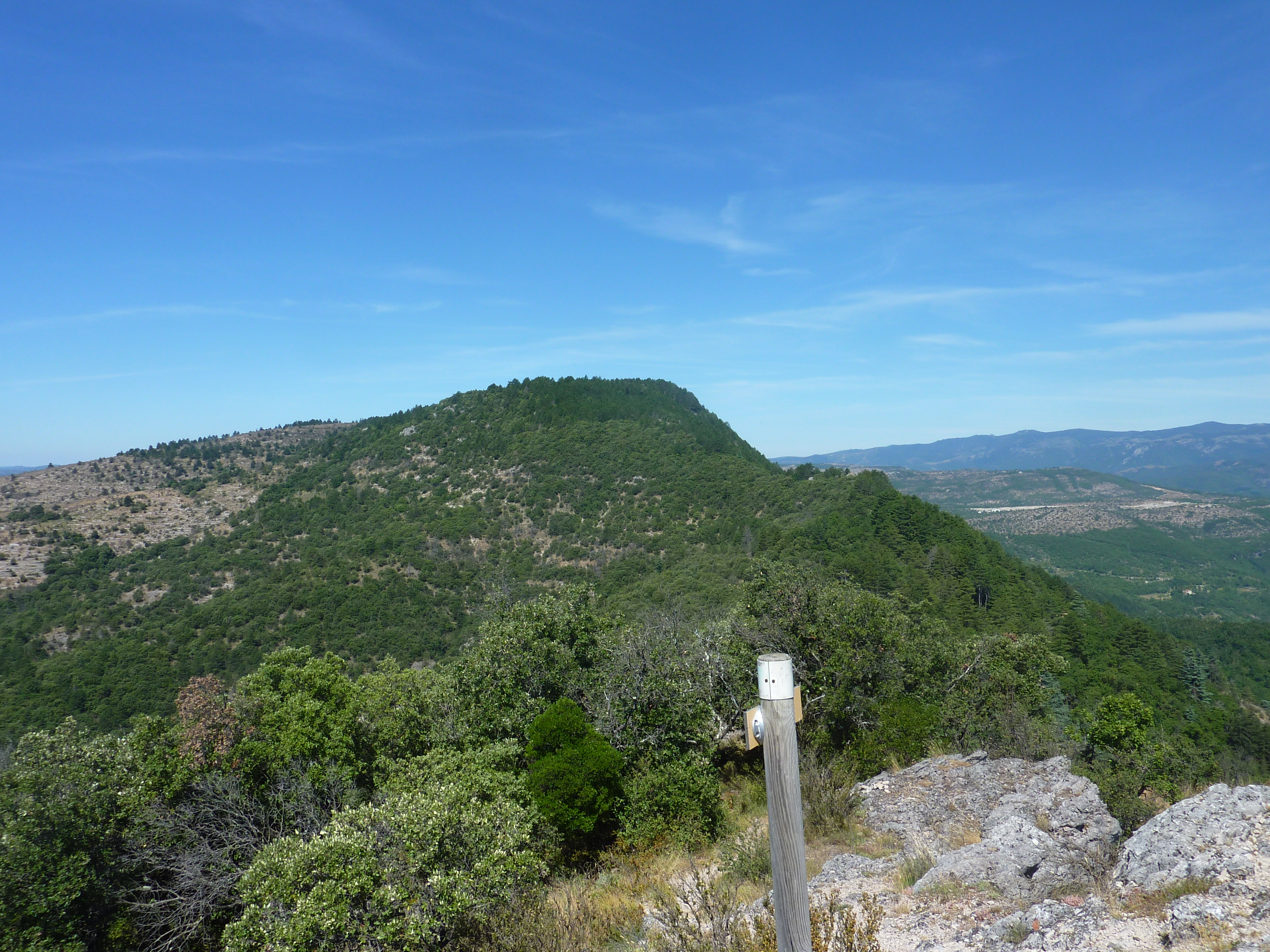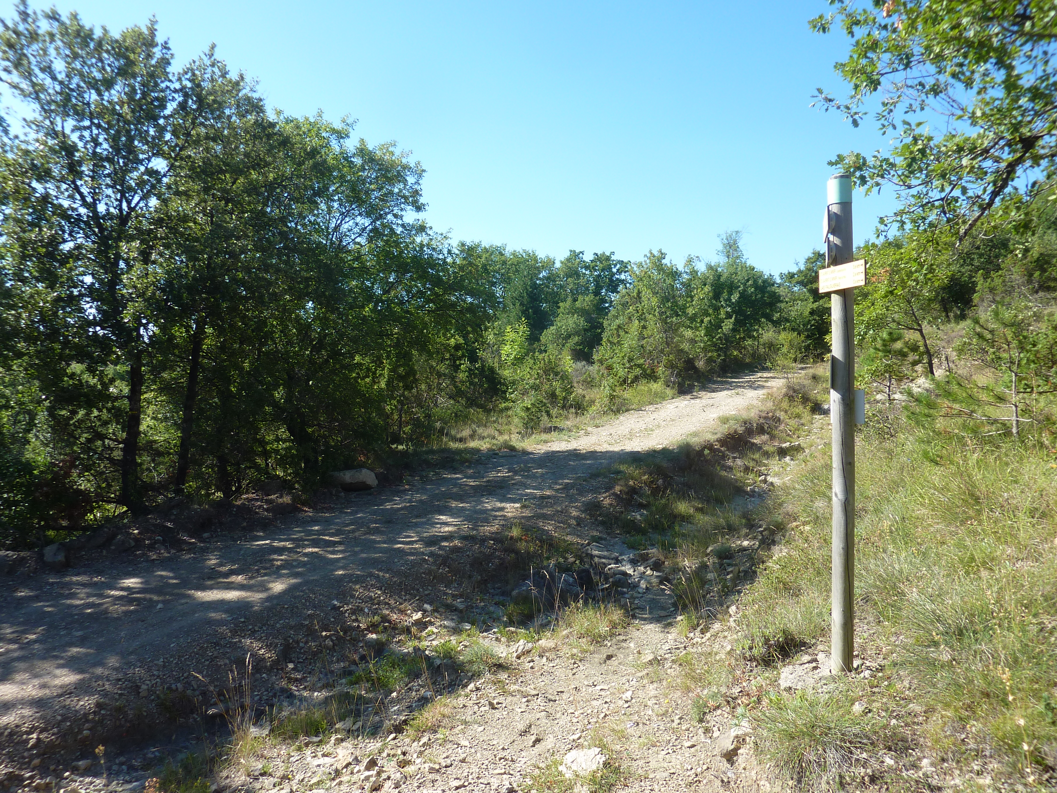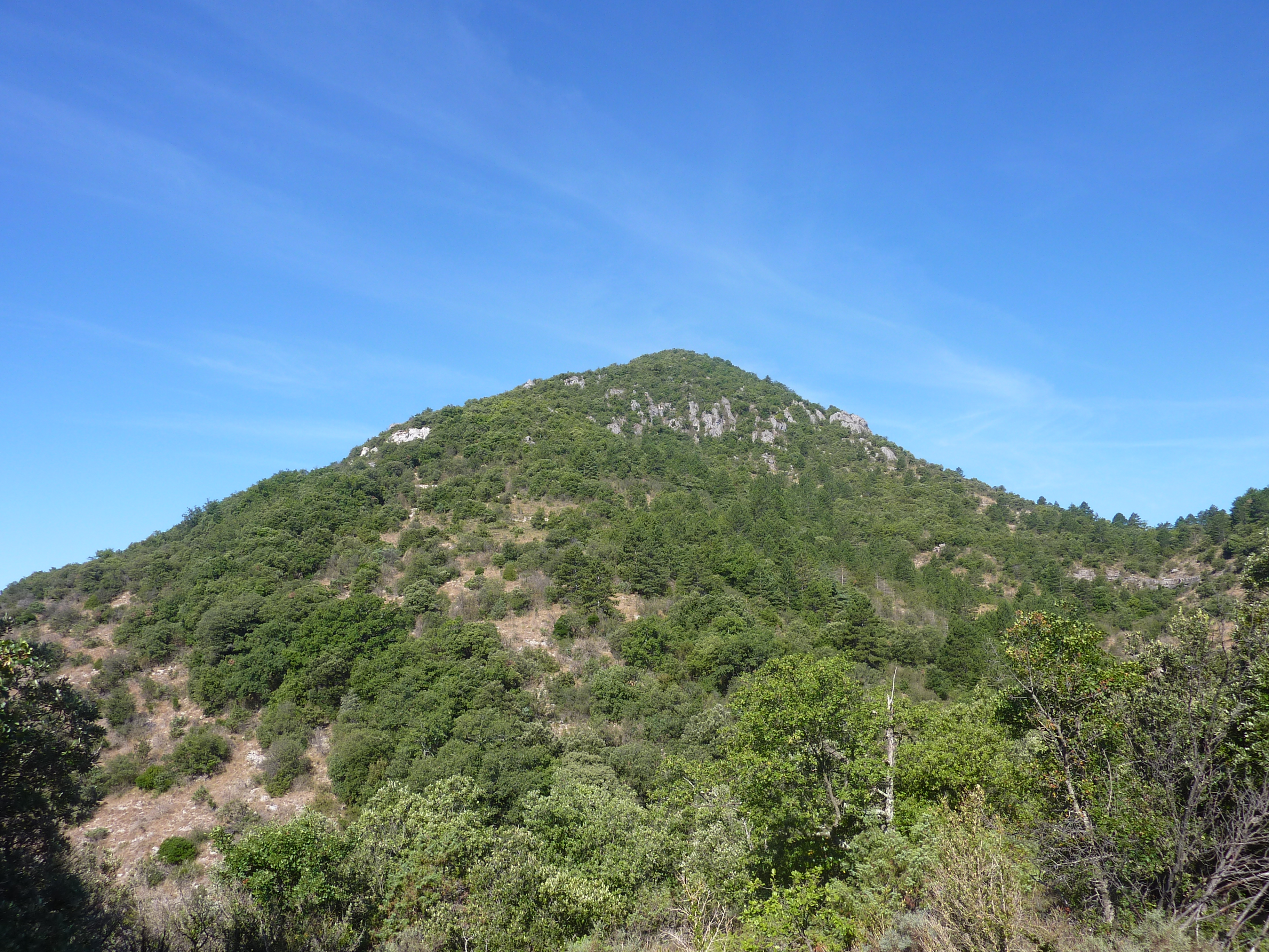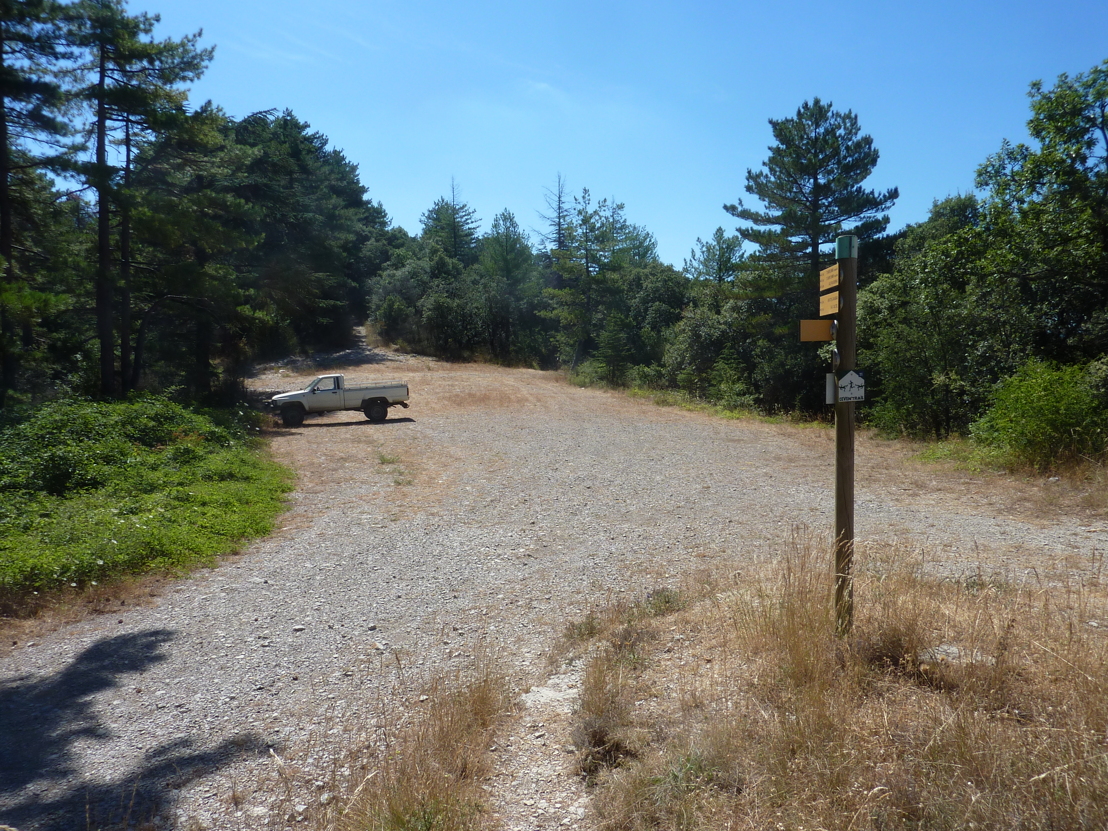 Peyre Fiche (617 m) : suivre le chemin partant sur la gauche direction Plan d'Andiou, balisé en jaune