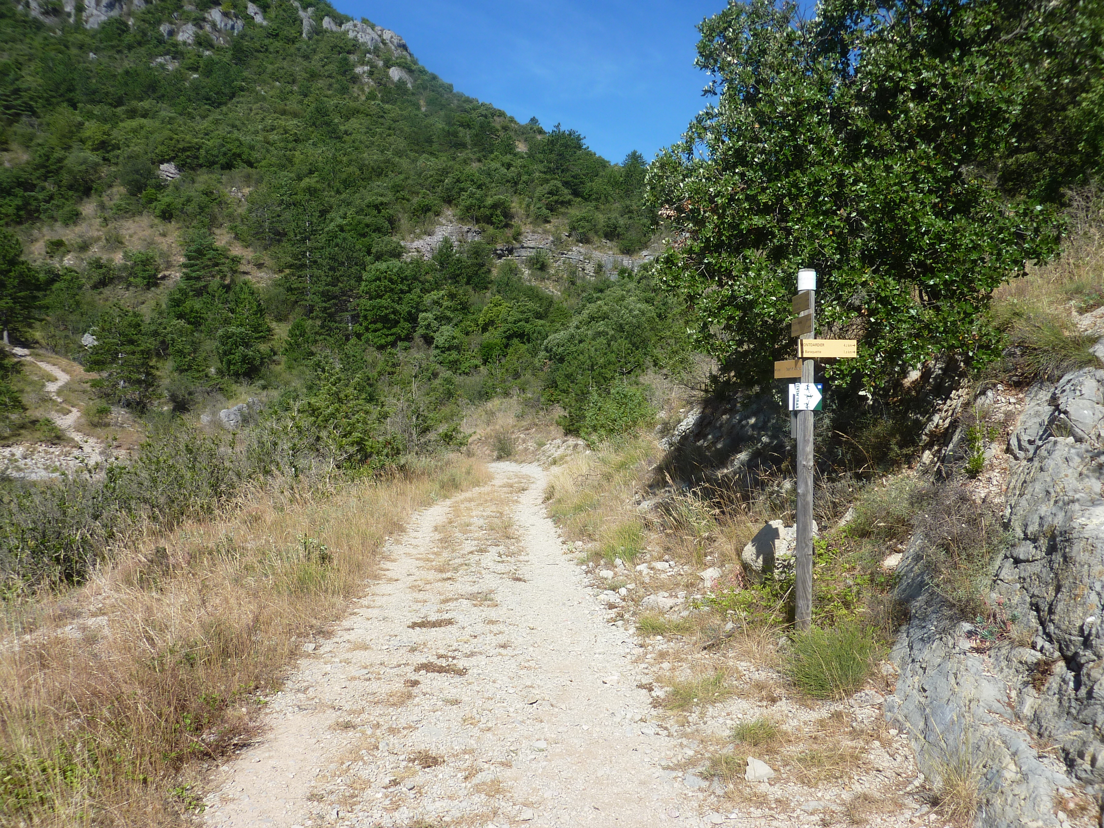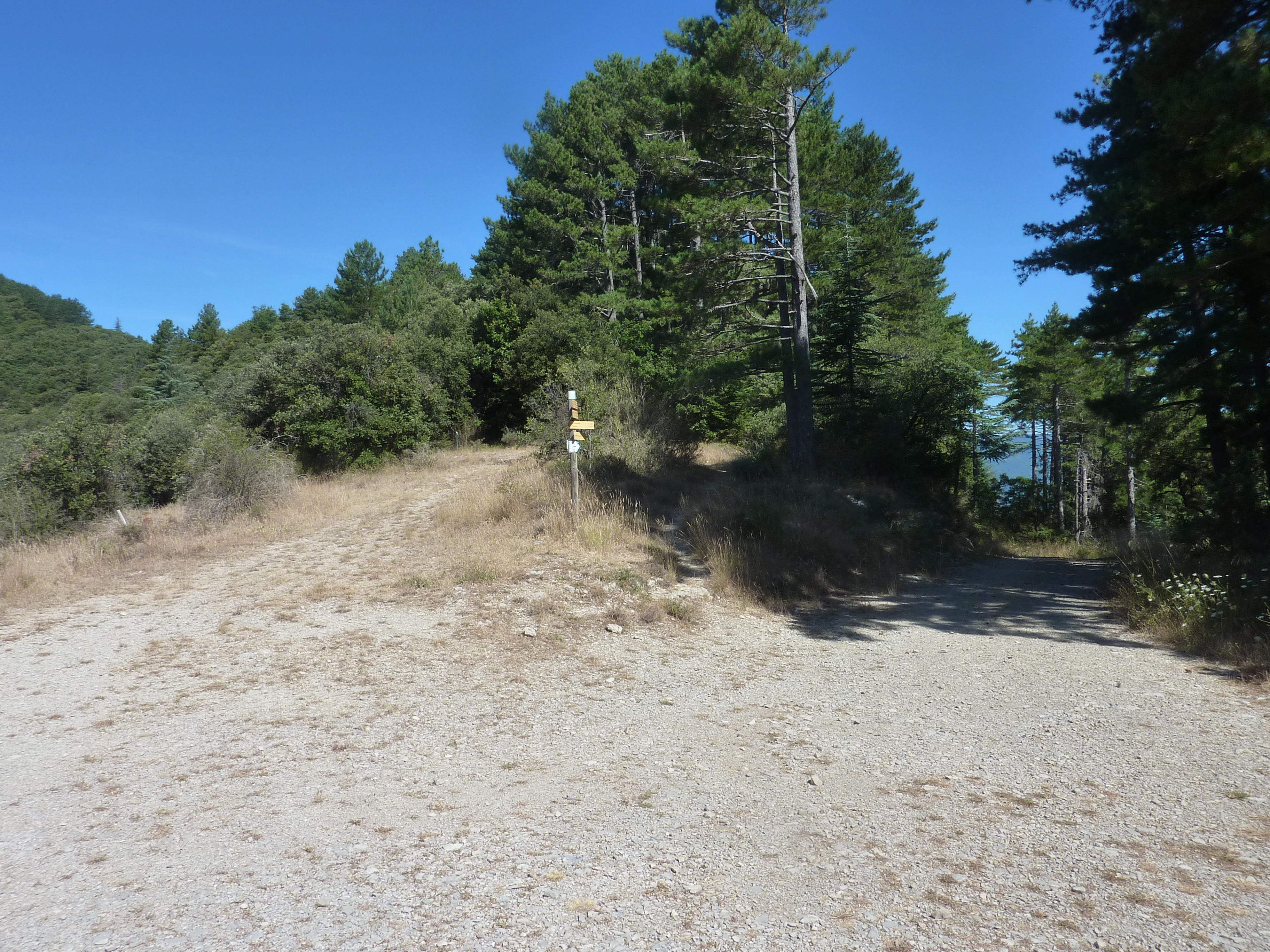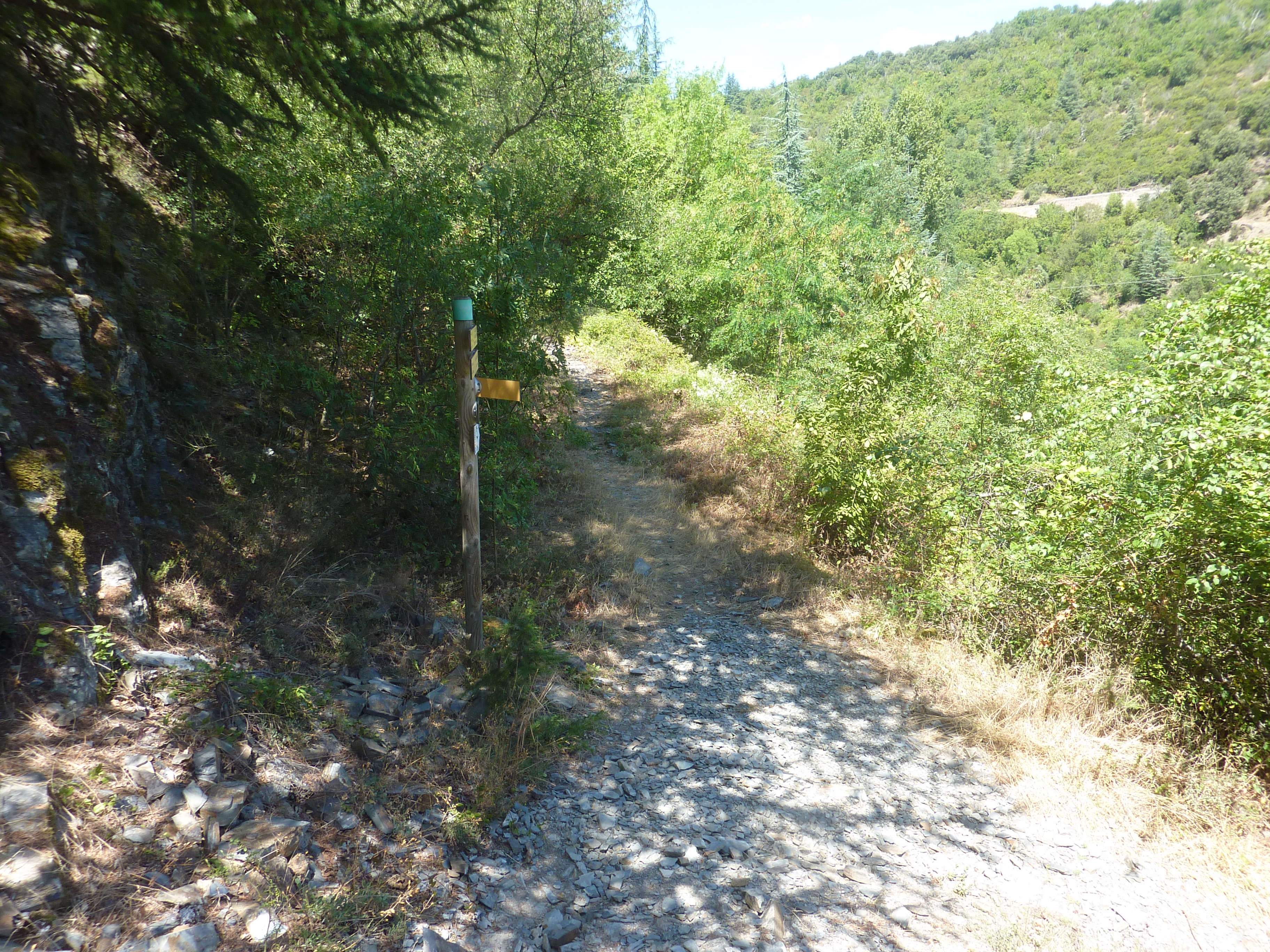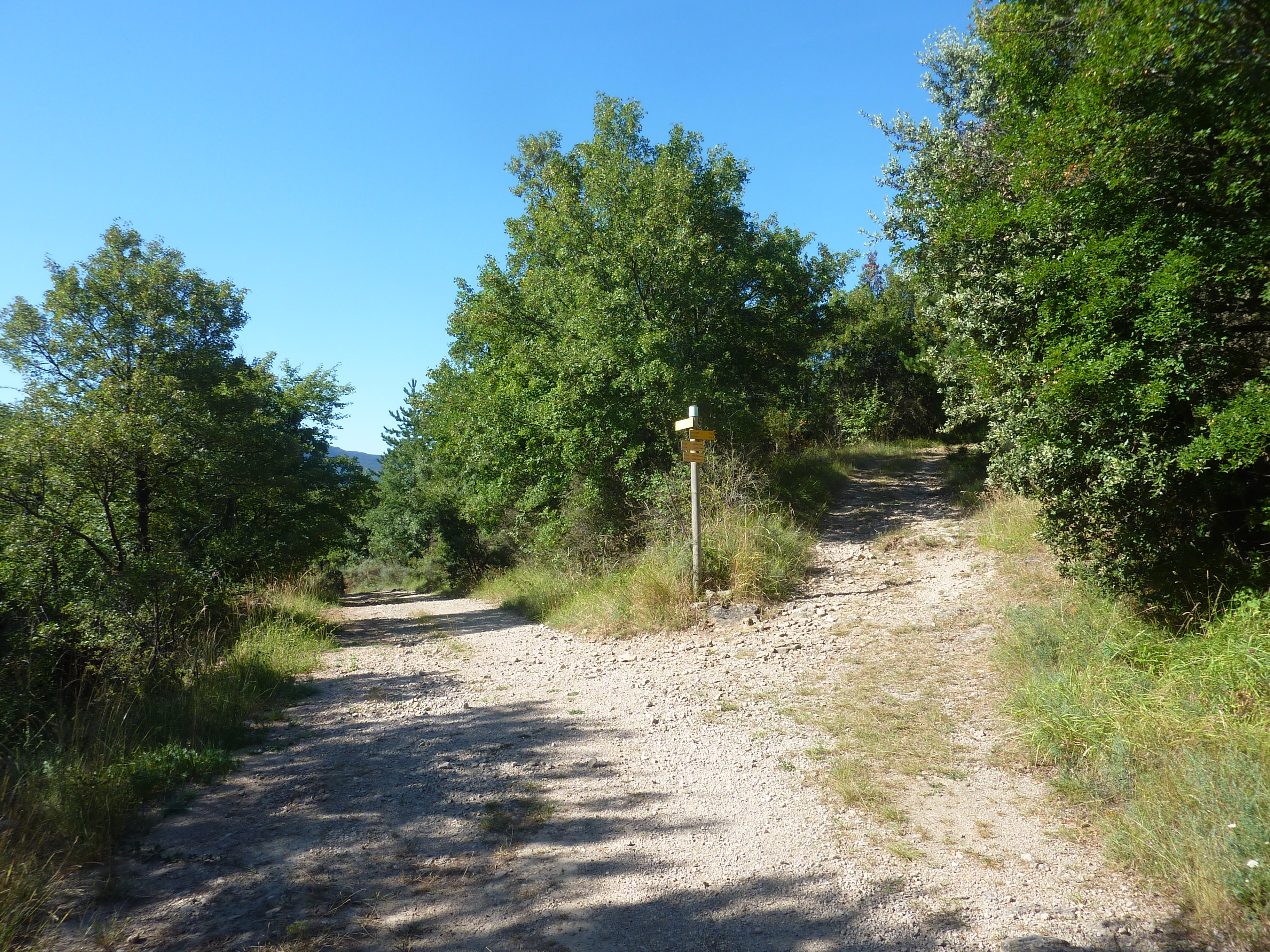 A ce croisement marqué par la présence d'un panneau directionnel, suivre le chemin partant sur la gauche direction Plan d'Andiou, balisé en jaune dorénavant