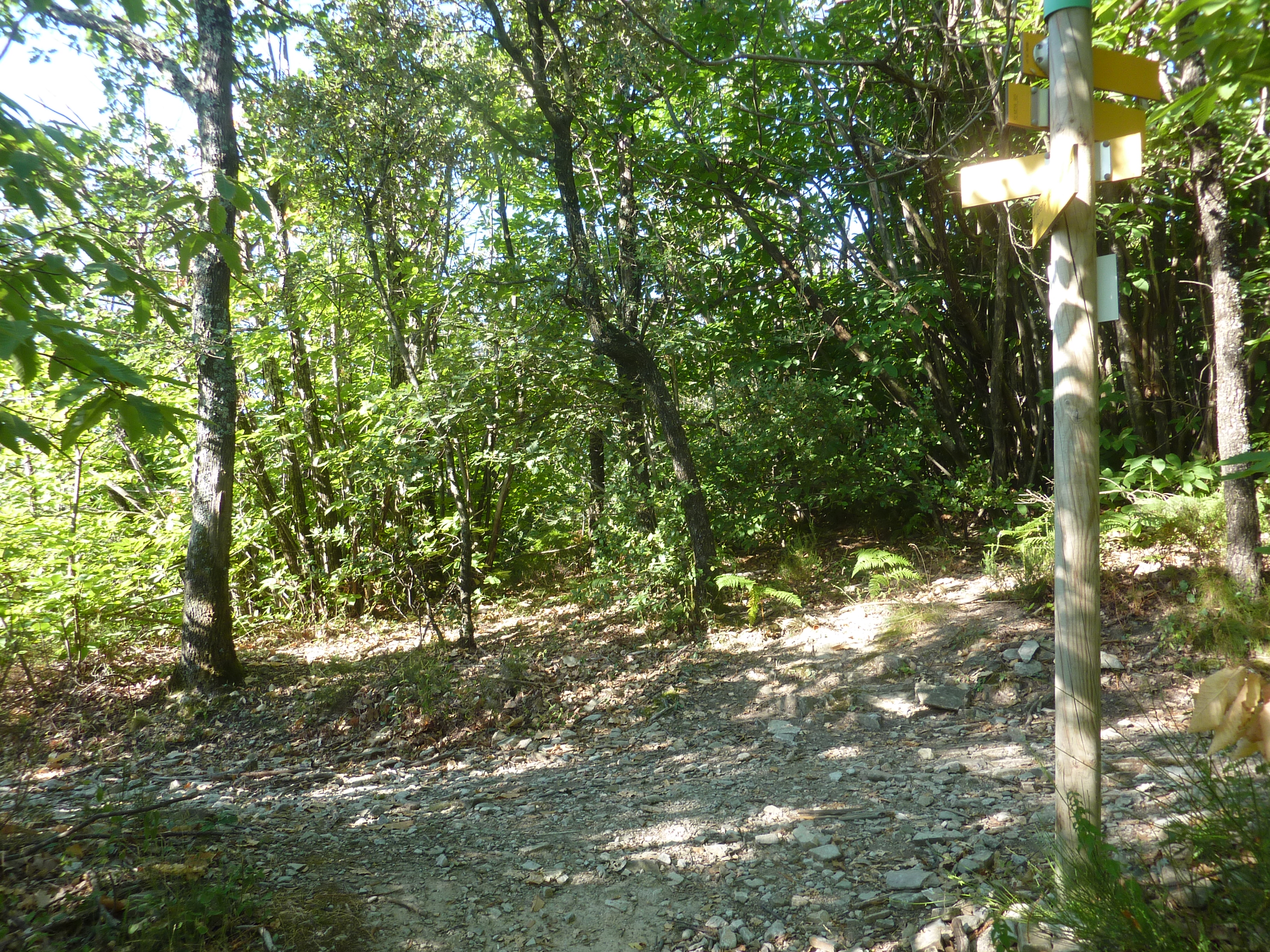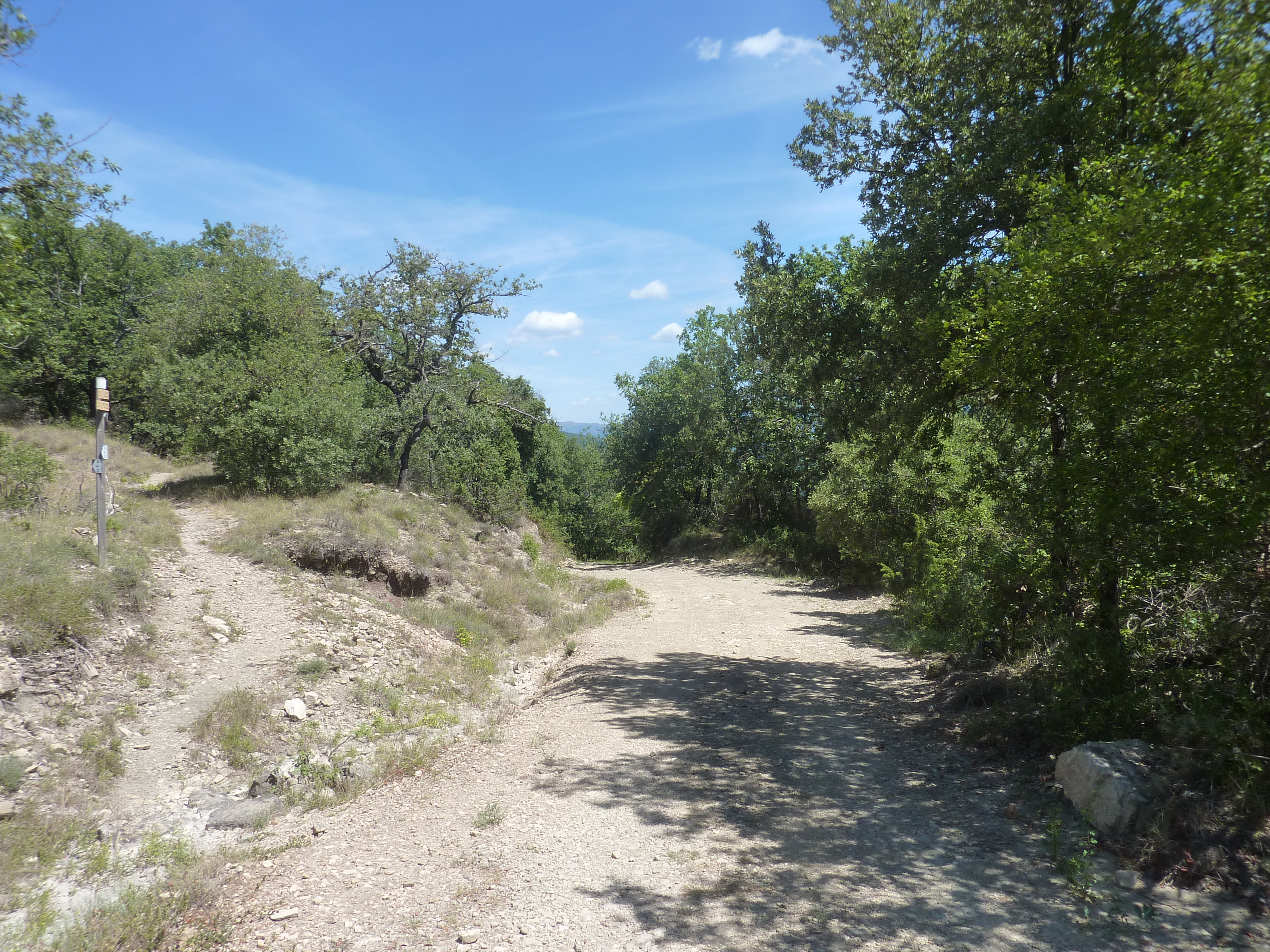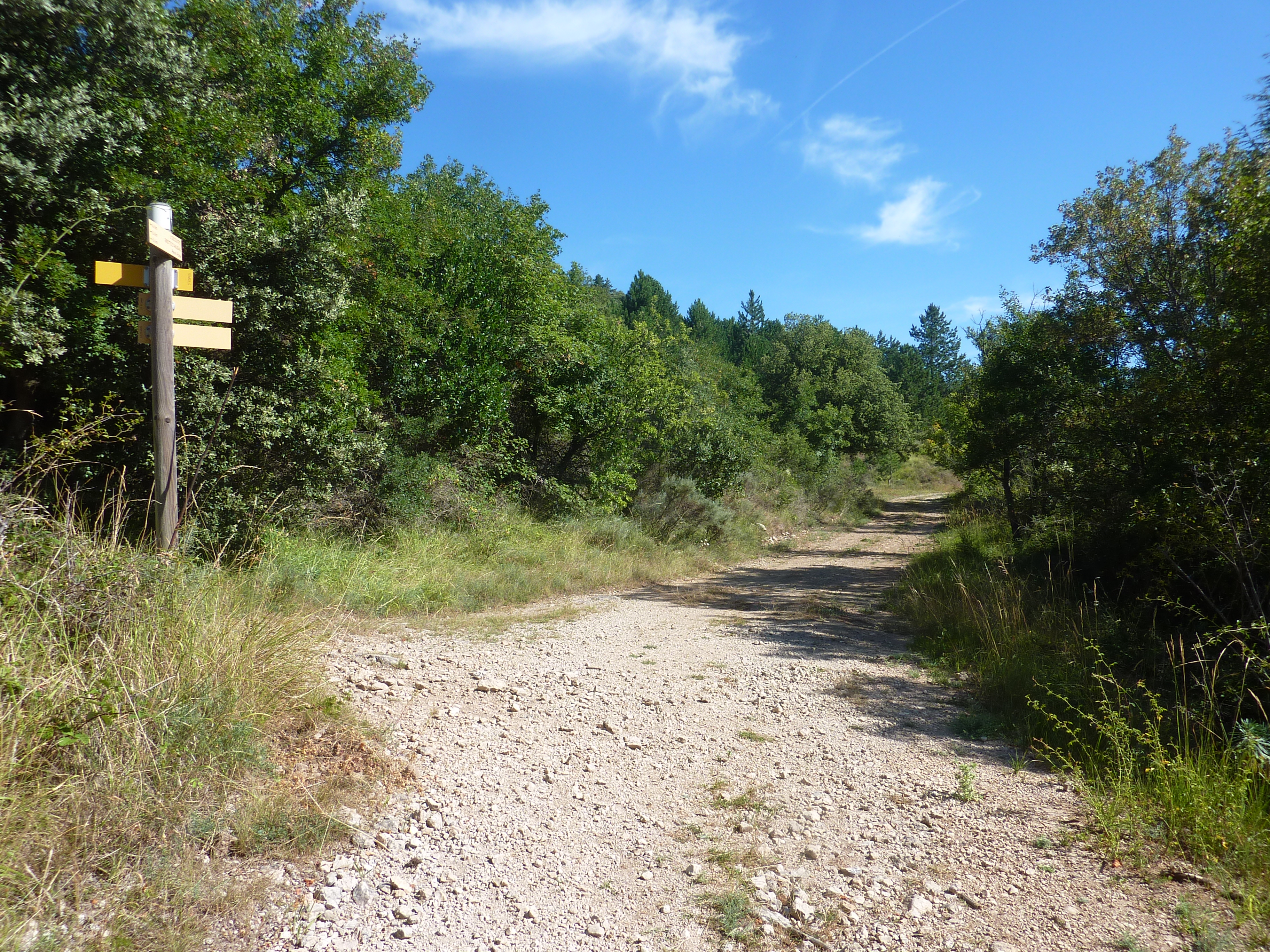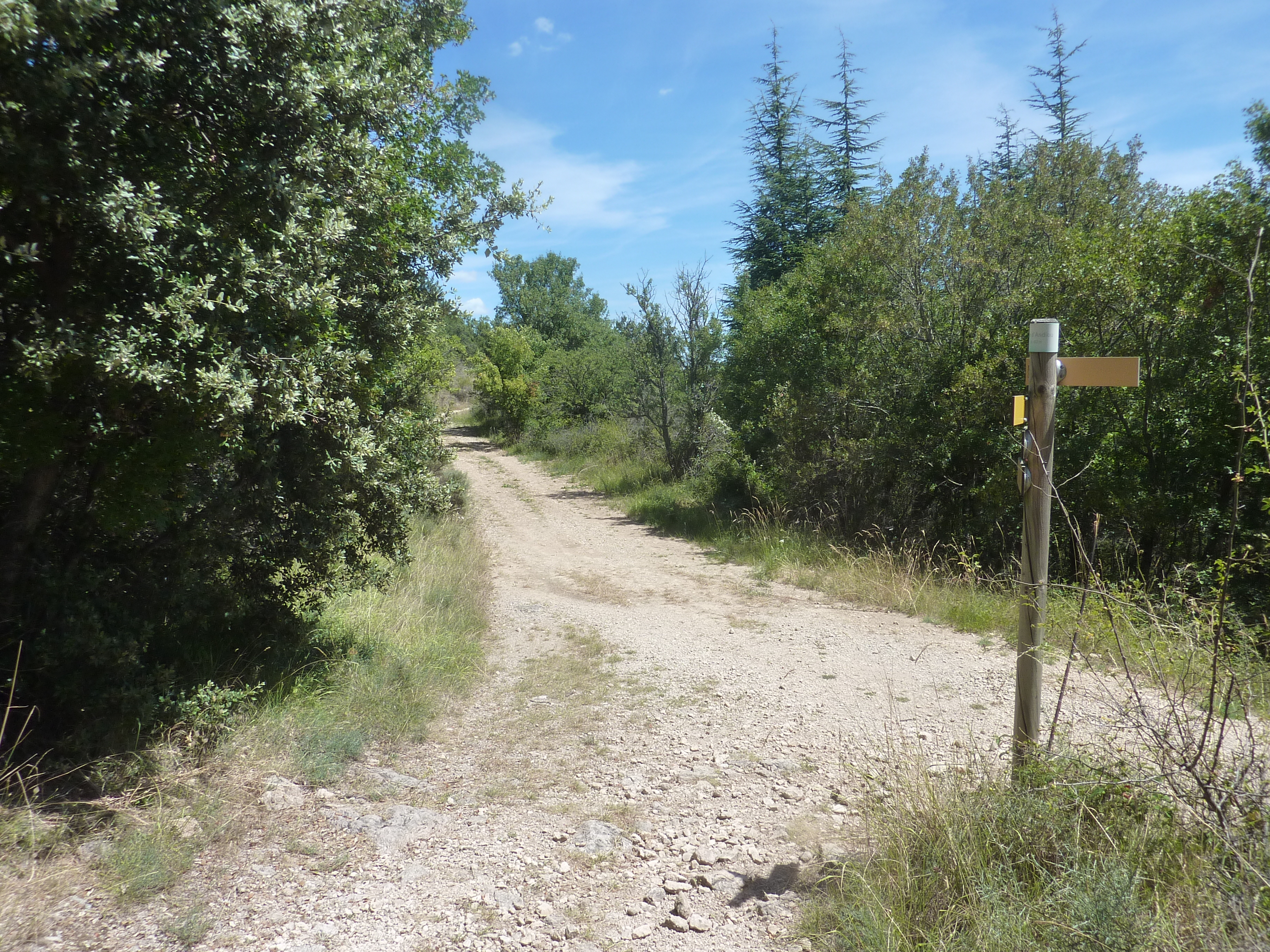 A ce croisement marqué par la présence d'un panneau directionnel, suivre le chemin partant sur la gauche direction Plan d'Andiou, balisé en jaune dorénavant