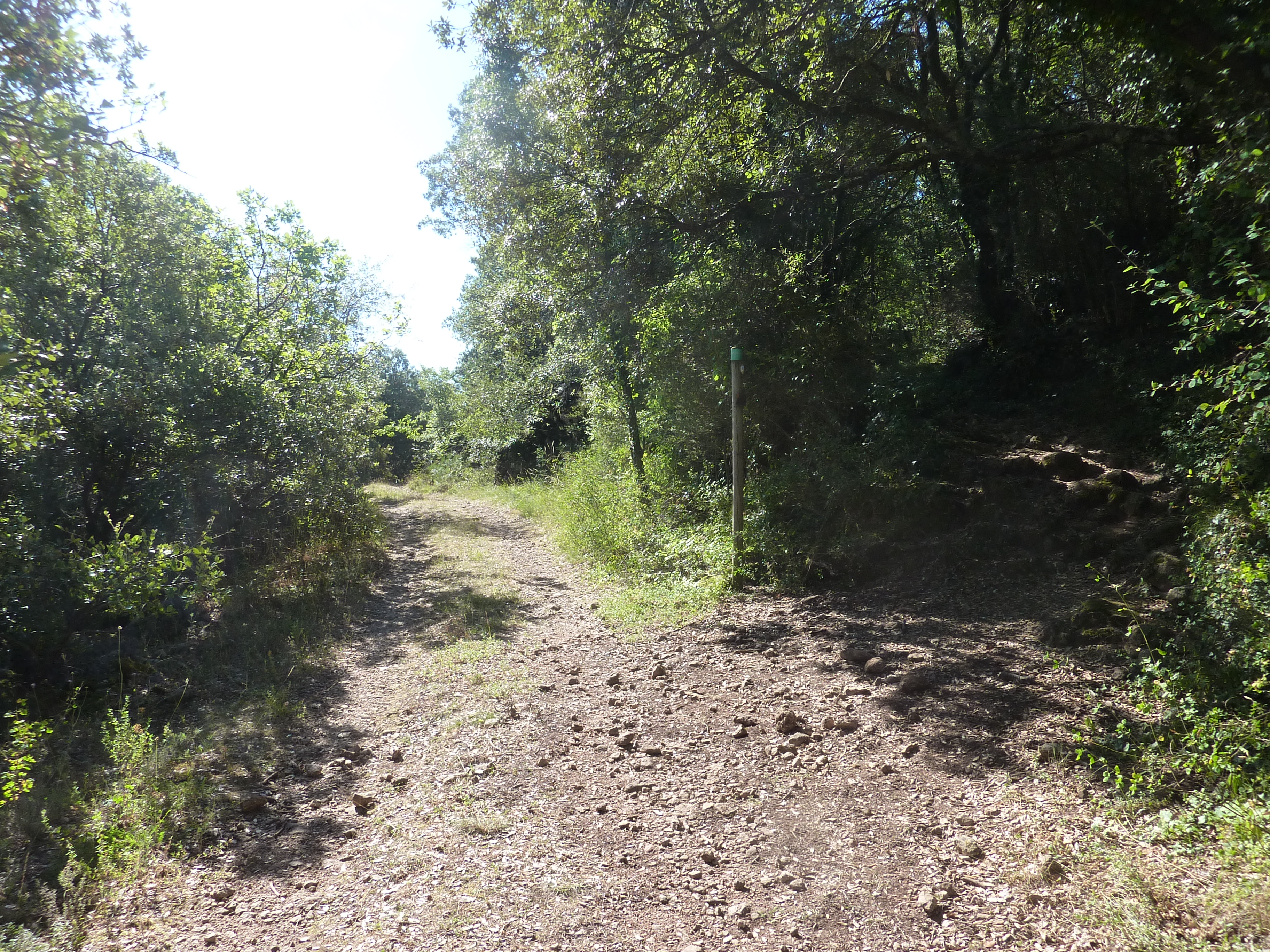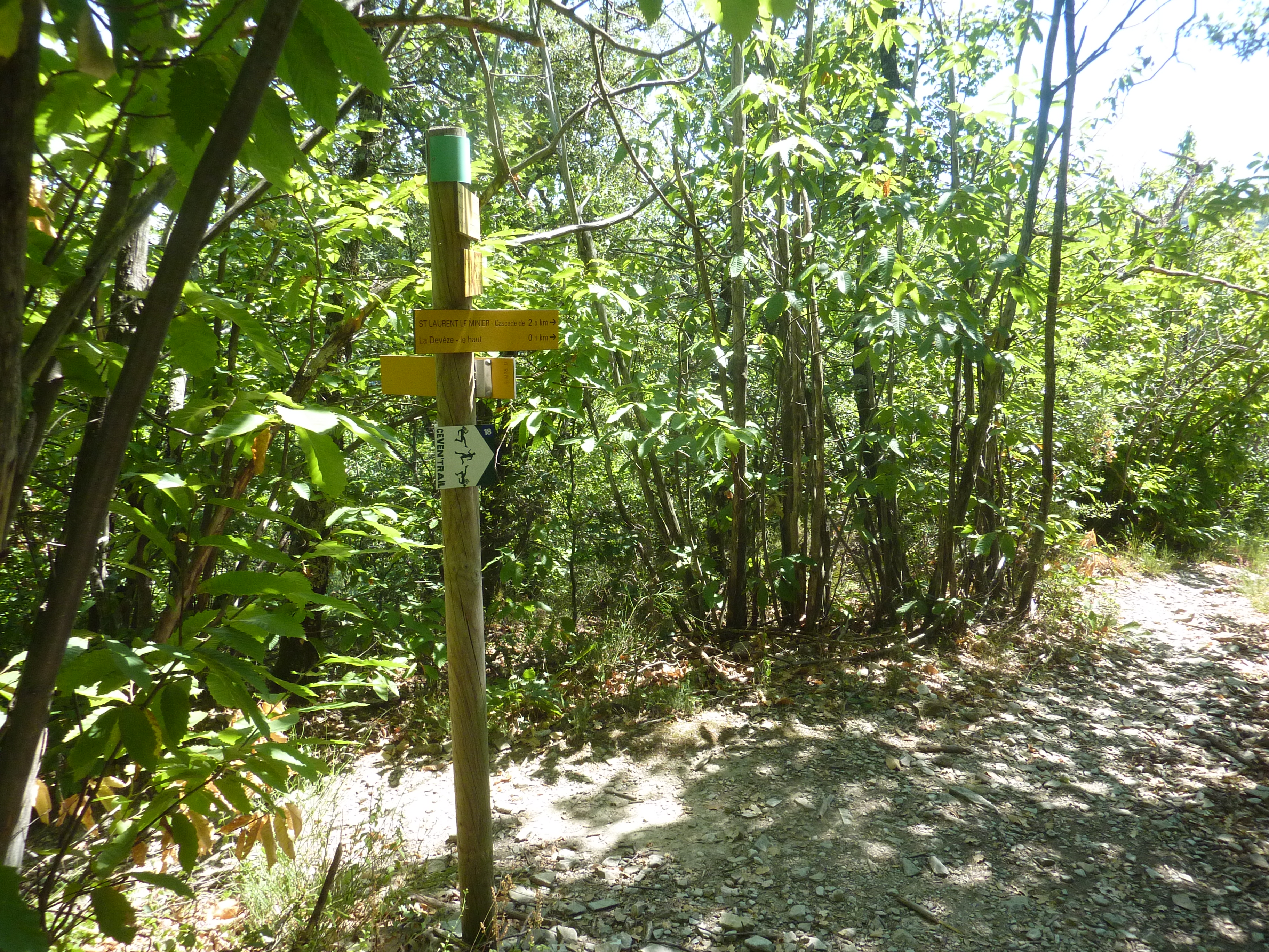 Chemin des Escoliers (487 m) : suivre le chemin partant sur la gauche direction Saint-Laurent-le-Minier, balisé en jaune