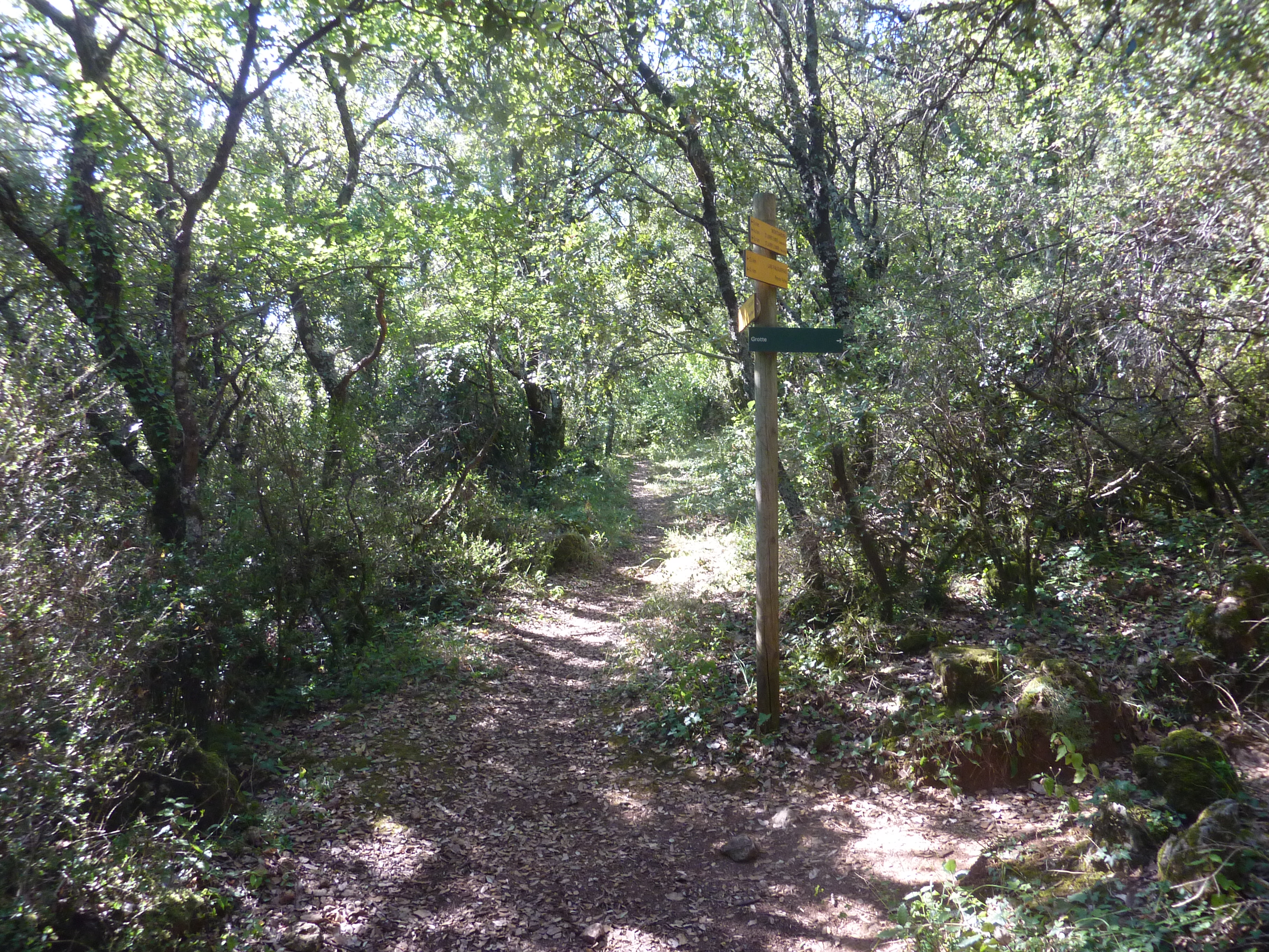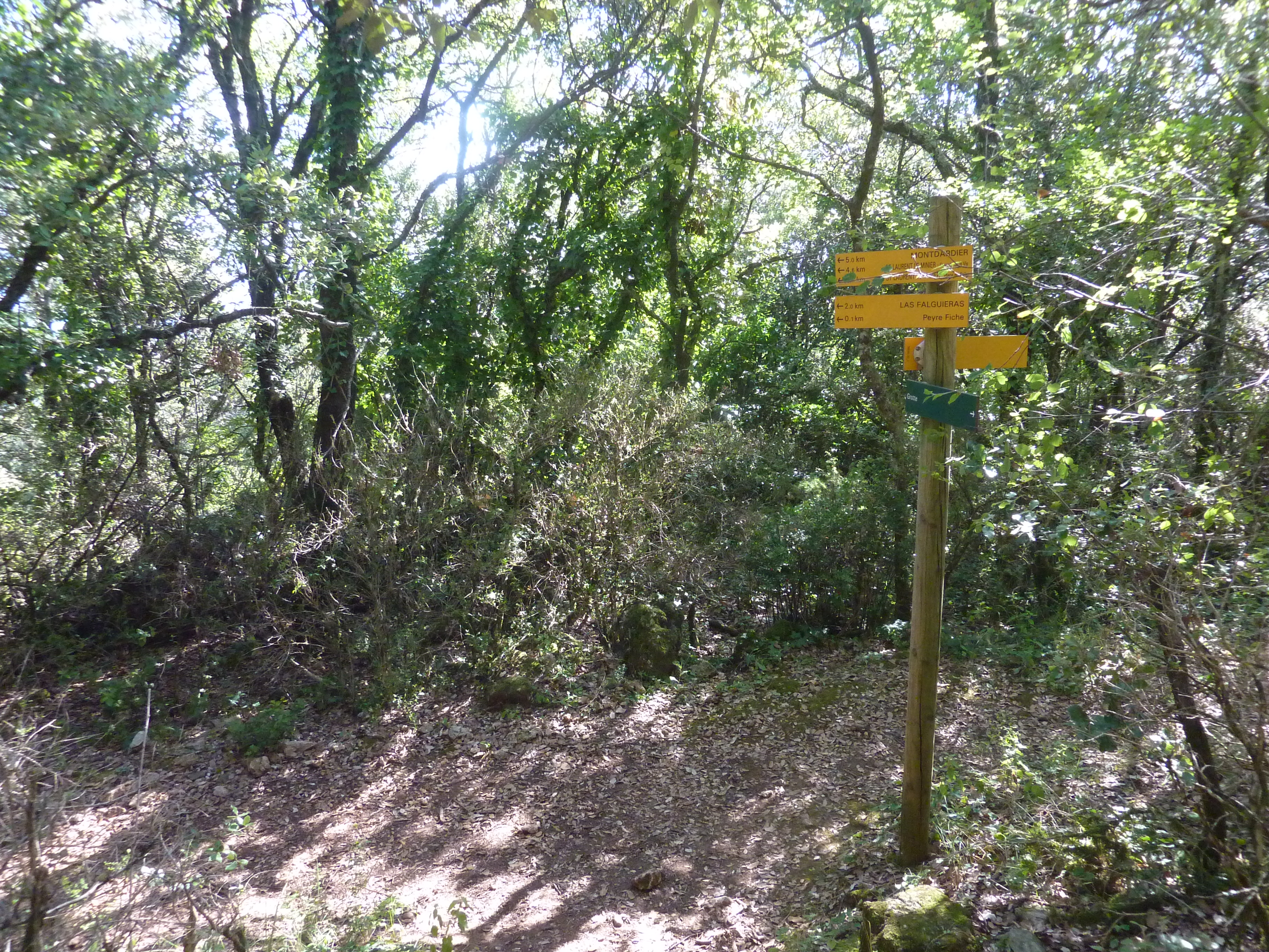 Les Falguières (498 m) : suivre le chemin partant tout droit direction Saint-Laurent-le-Minier, balisé en jaune