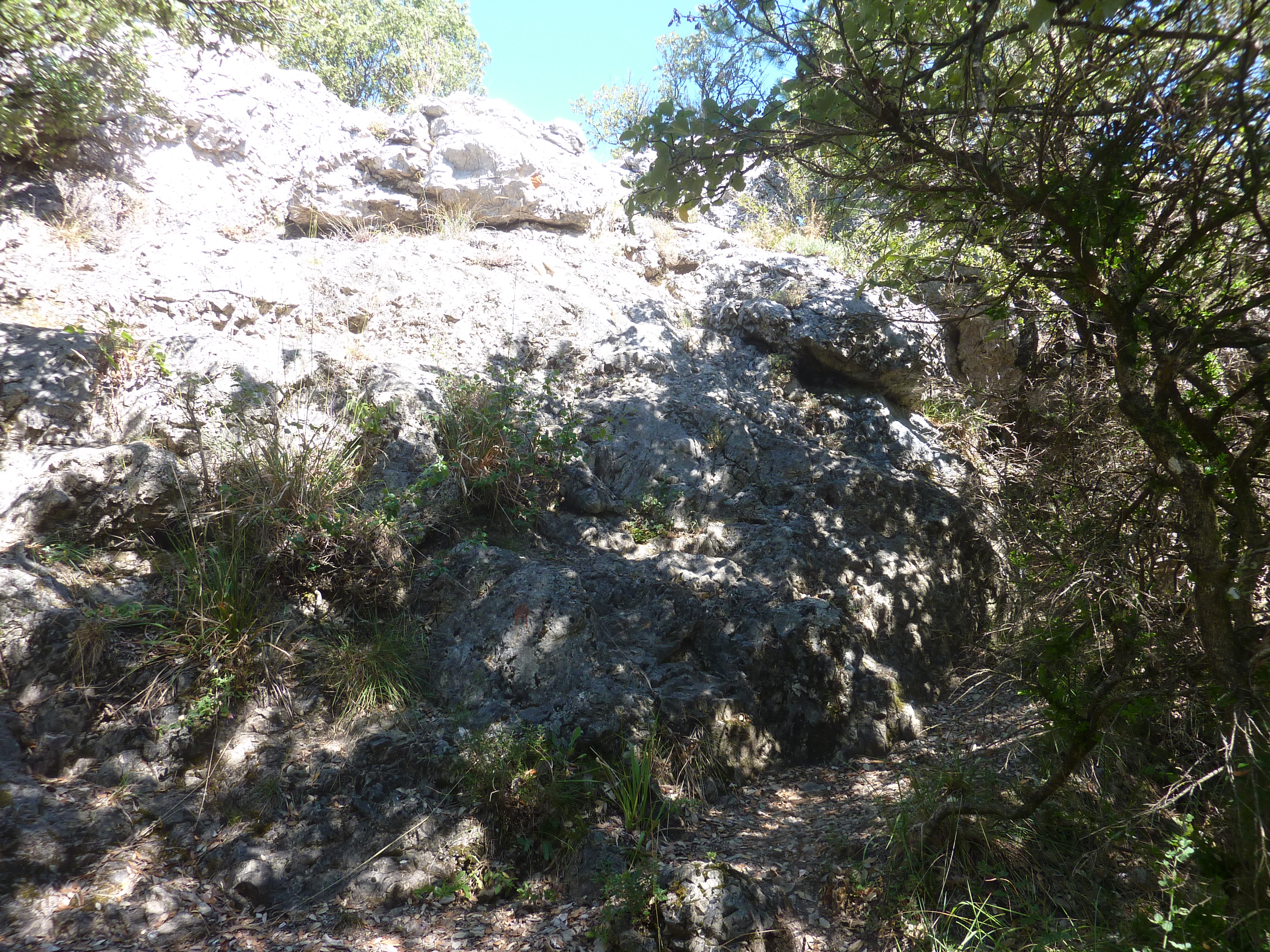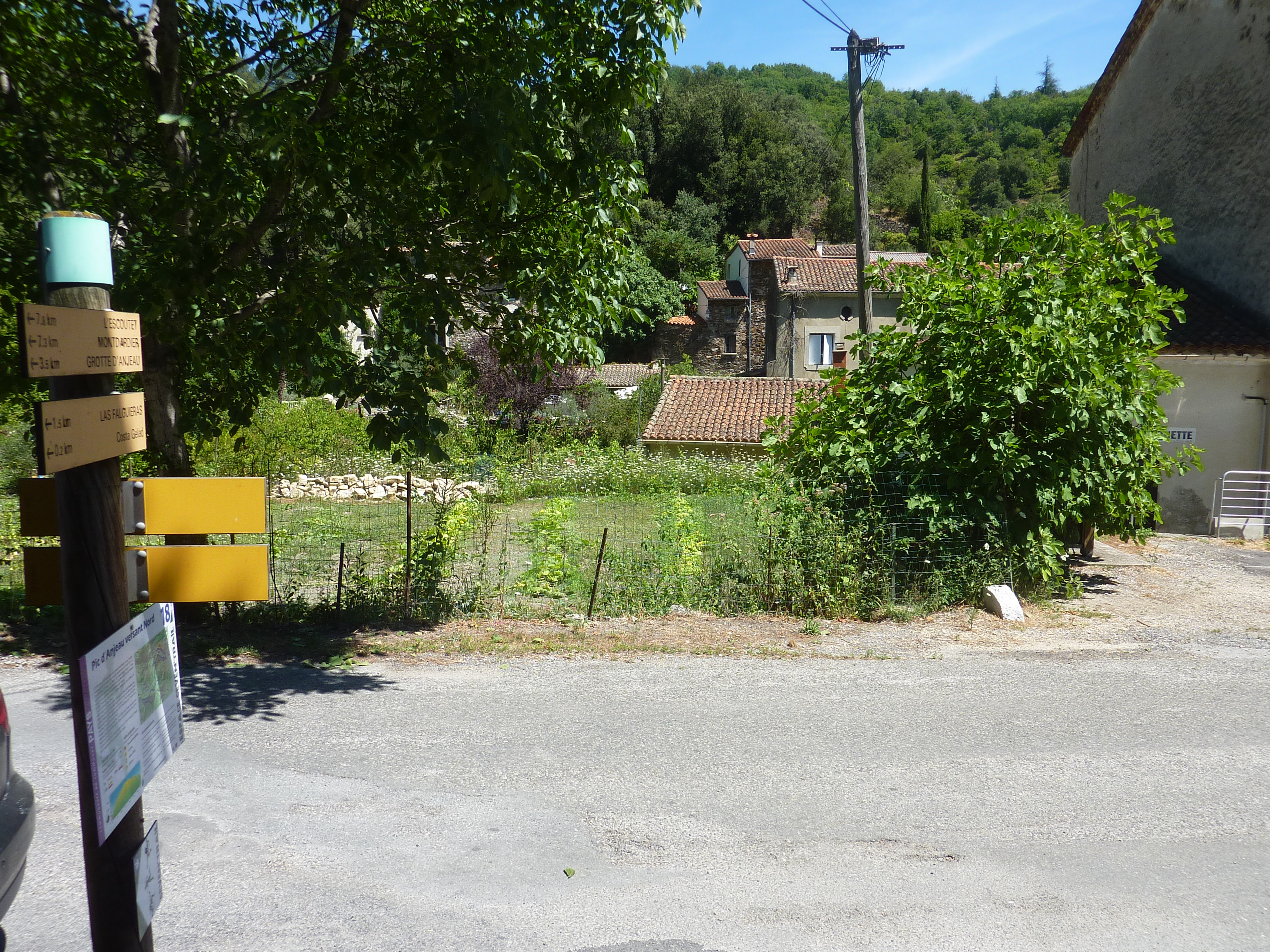 La Dévalade (395 m) : suivre le chemin montant sur la droite direction Grotte d'Anjeau, balisé en jaune