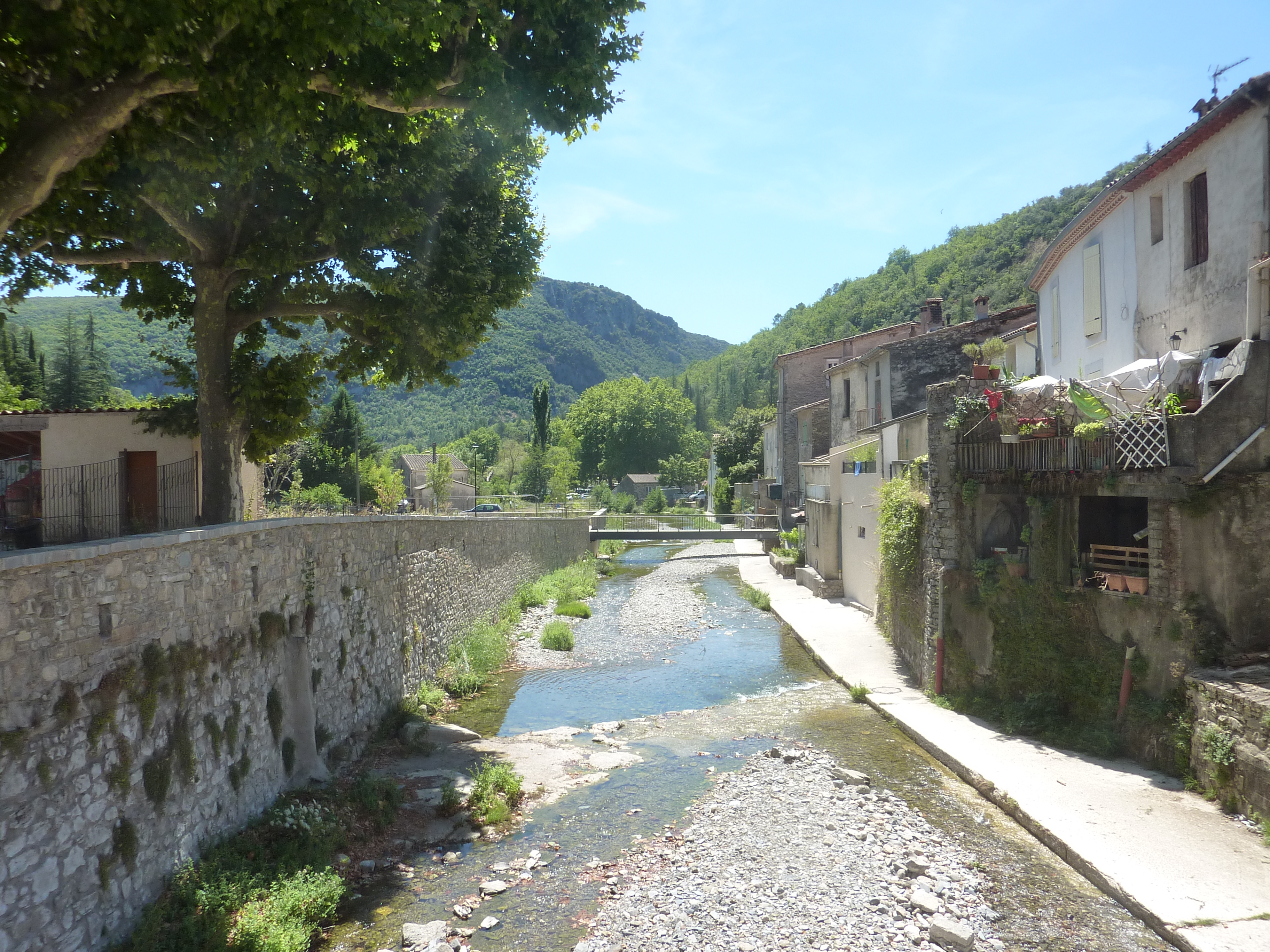 Départ Saint-Laurent-le-Minier - Mairie (179 m) : suivre la rue partant tout droit puis celle partant sur la droite 50 mètres après direction Grotte d'Anjeau, balisé en jaune