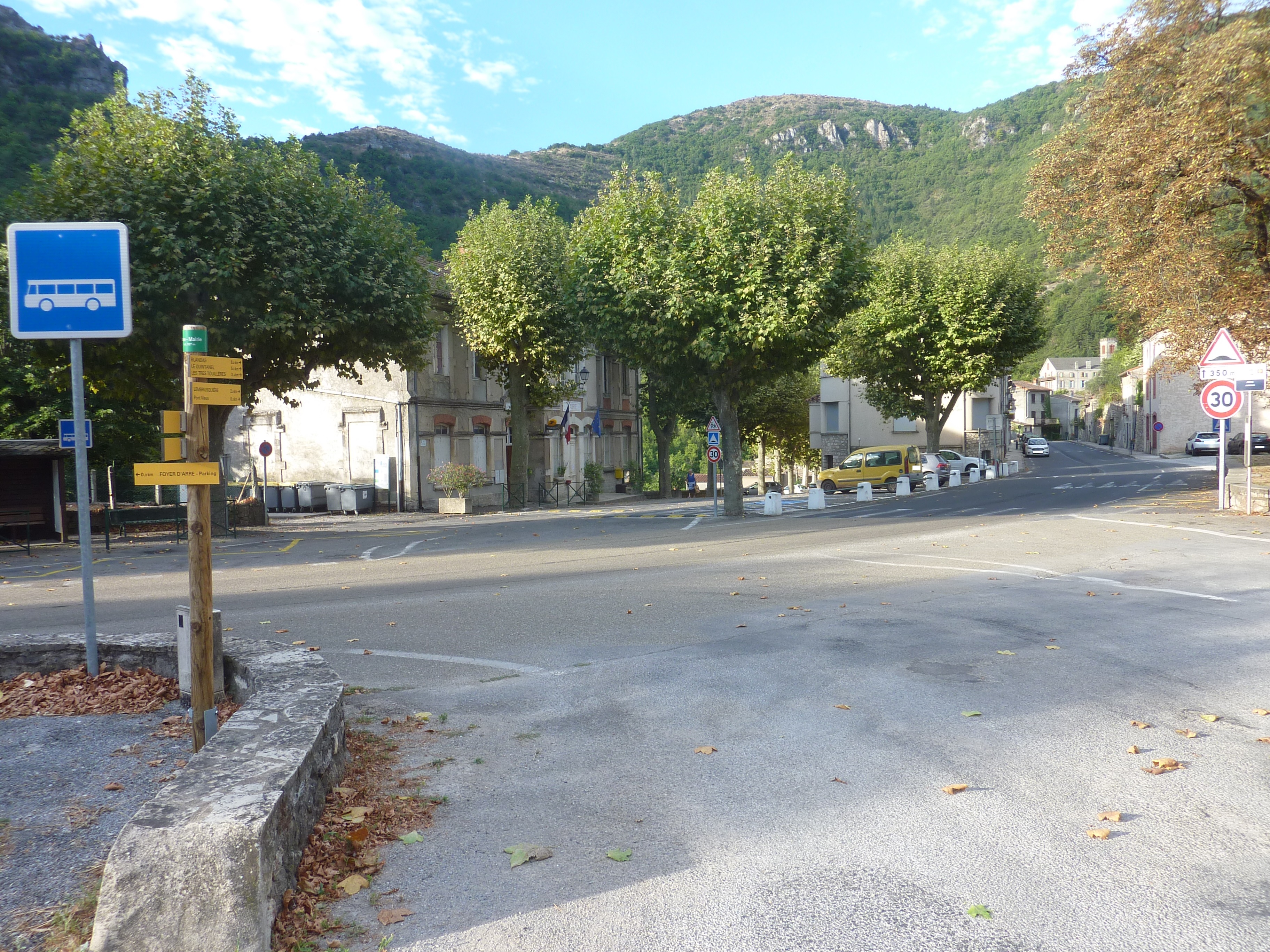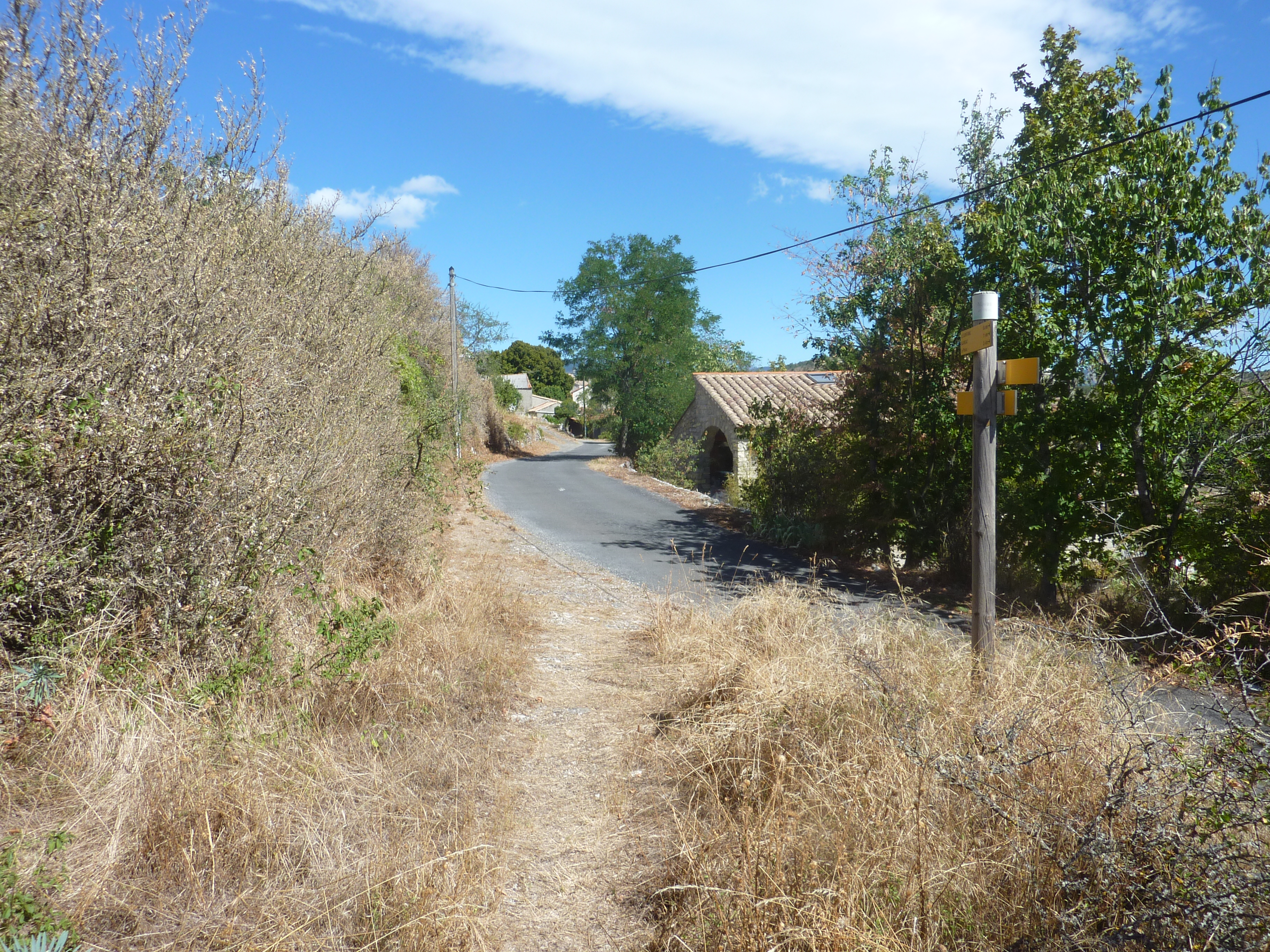 Départ Arre - Mairie (327 m) : suivre la rue descendant tout droit vers le vieux village direction Blandas, balisé en jaune