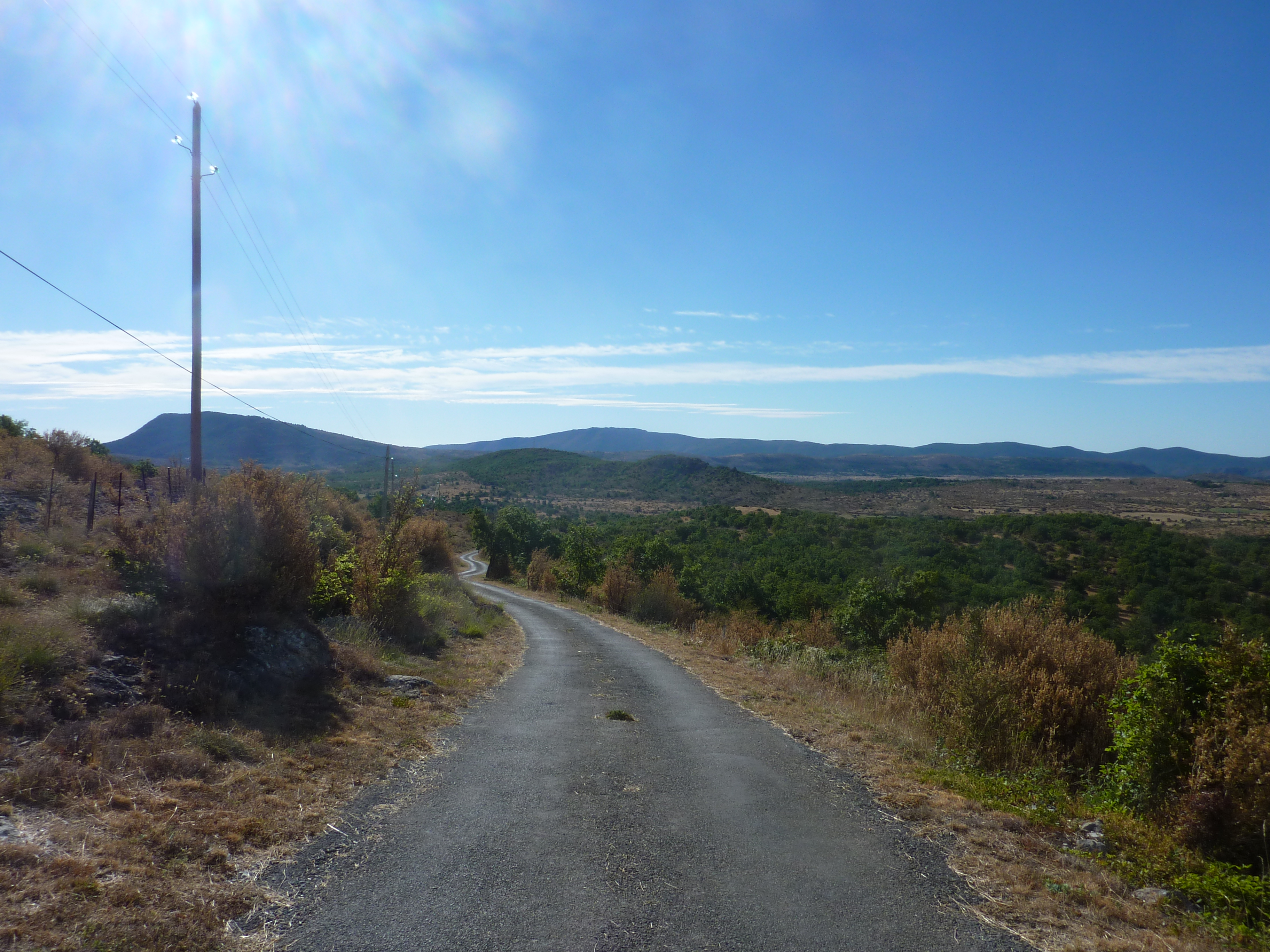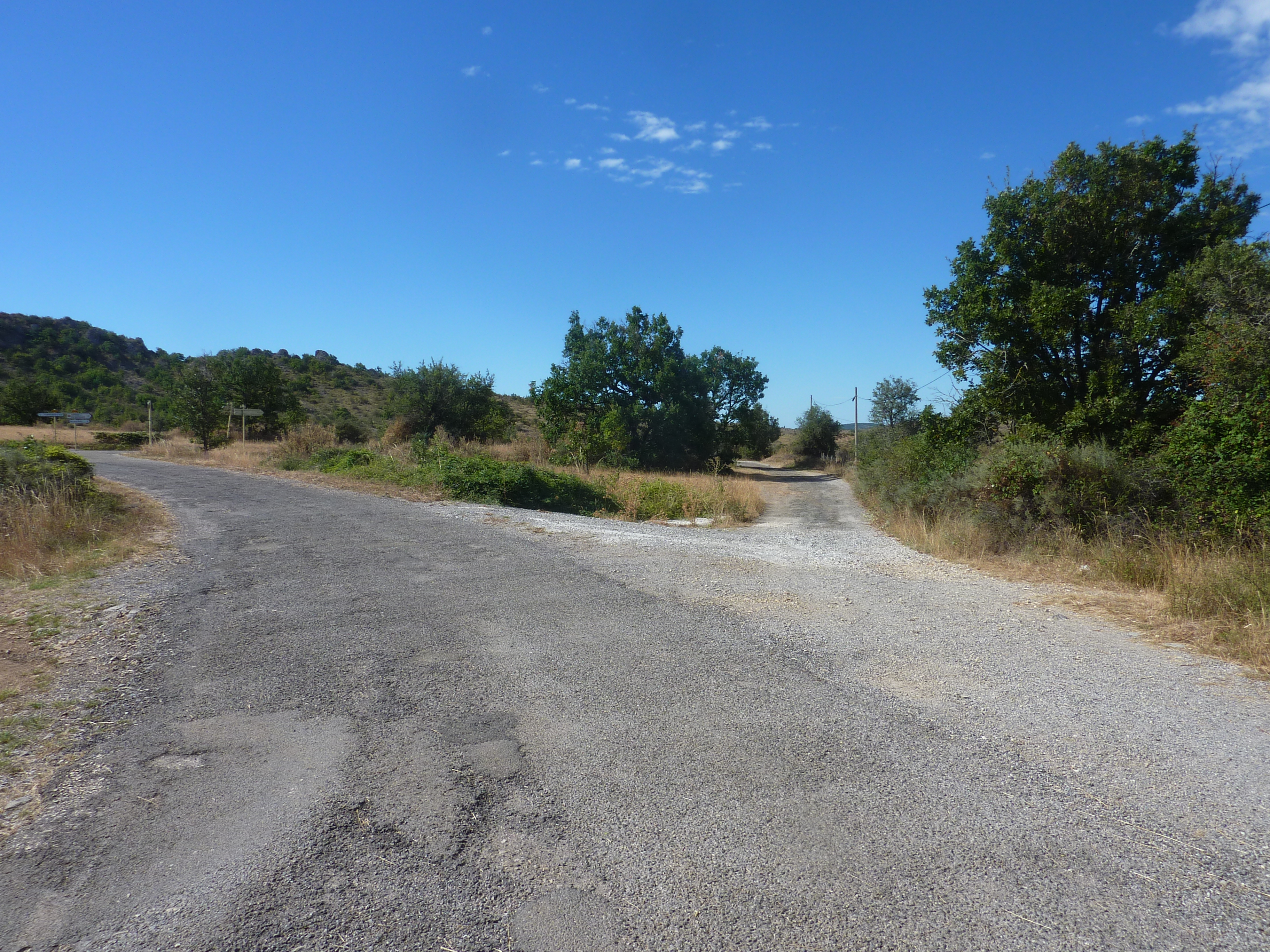 A cette intersection (200 mètres après le croisement précédent) (723 m), suivre la route partant légèrement sur la gauche direction Blandas, balisé en jaune
