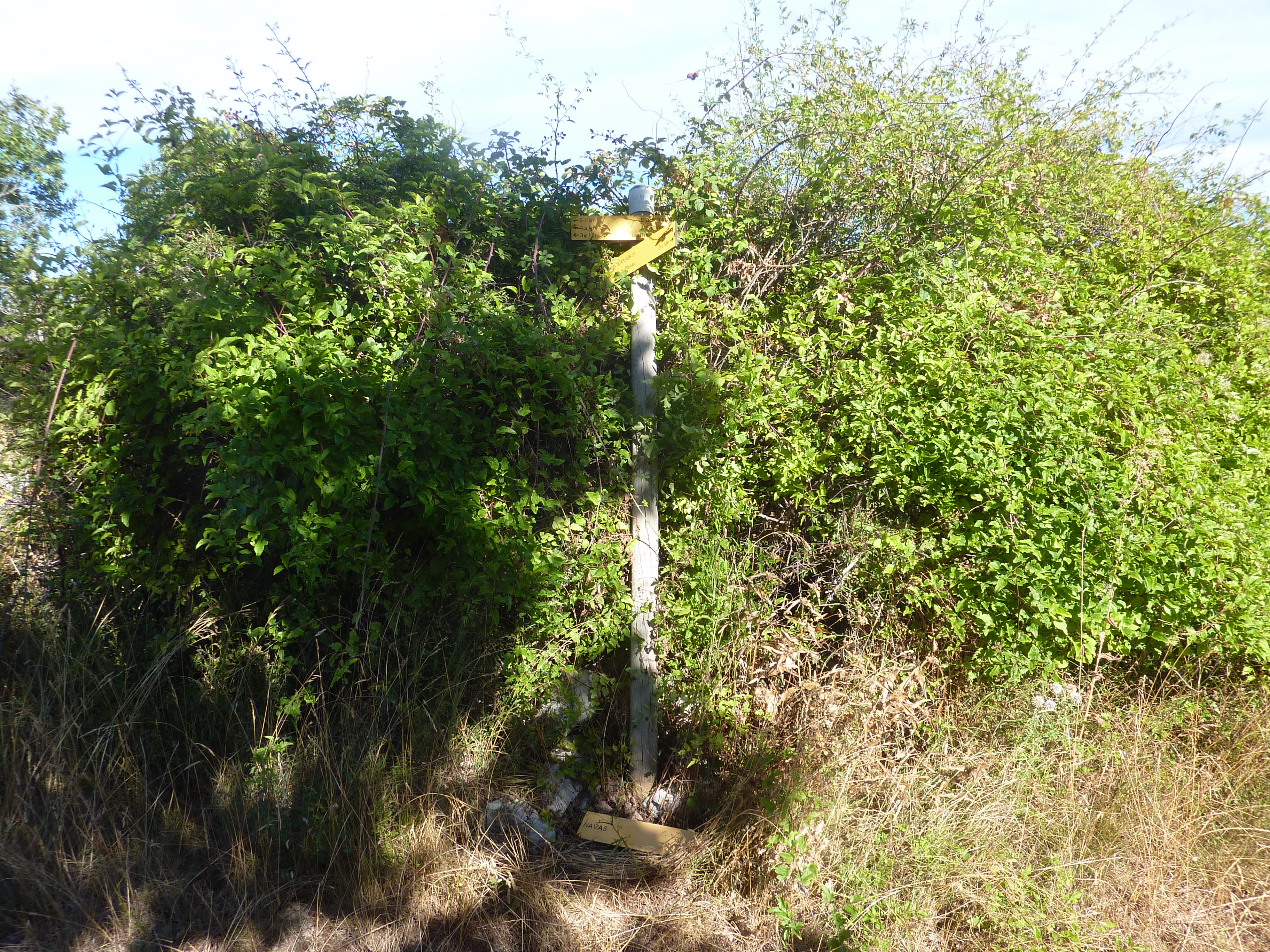 Le panneau directionnel du Planas est détérioré et caché (ne pas le louper !)